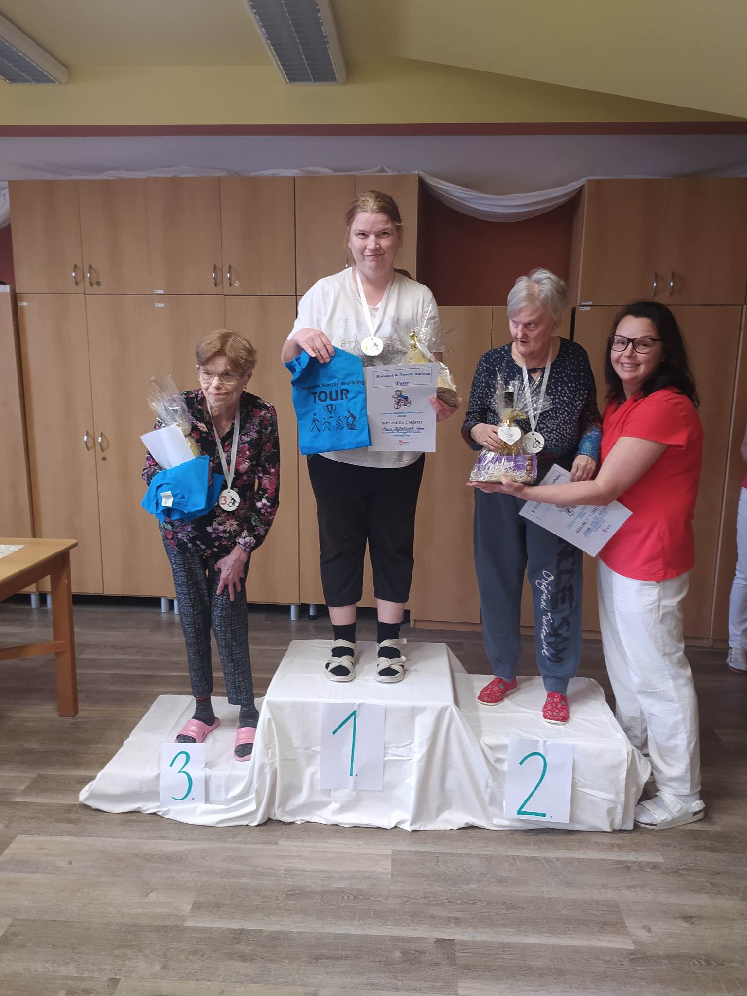 Již druhý ročník Rotoped a Nordic walking Tour odstartoval tentokráte v měsíci dubnu, který byl sám o sobě ve znamení pohybových aktivit. Závod byl odstartován dne 4. 4. 2023 v 13:30 a ukončen 26. 4. 2023. v 15:00. Vyhlášení vítězů napříč všemi věkovými kategoriemi se konalo dne 27. 4. 2023 v 13:30 na podkrovním sále hlavní budovy Centra Dominika Kokory. Pomyslná trasa vedla z Kokor do Prostějova v rozsahu 32 km. Na organizaci projektu se opět podílela ergoterapeutka Mgr. Marcela Kučerová, DiS ve spolupráci s instruktory volnočasových aktivit. Cílem bylo posílení motivace všech klientů k pohybovým aktivitám a podpora jejich vzájemného setkávání se, prevence exkluze. Jízda na kole a pěší chůze všeobecně harmonizuje tělo i ducha, přispívá ke zlepšení celkové kondice, hybnosti, svalové síly a prokrvení dolních končetin. Optimalizuje srdeční i dechovou činnost a redukuje hmotnost. A jak to celé vlastně probíhalo? Každý přihlášený účastník obdržel při startu záznamový arch, ve kterém mu v průběhu celého měsíce instruktor či zaměstnanec přímé obslužné péče evidoval jeho jednotlivé výkony v jízdě na rotopedu nebo při chůzi s Nordic walking holemi. Obě varianty bylo možné střídat. Jednotlivé výsledky všech závodníků byly v závěru sečteny dohromady a vítězům byly rozdány medaile, diplomy, hodnotné ceny a trička s emblémem Rotoped a Nordic walking Tour. Nechyběly samozřejmě ani slzy dojetí a radosti z výhry. První místo letos znovu obhájila Hanka Muniková, druhé místo náleželo Libuši Lhotkové a třetí místo obsadila Blanka Zbořilová. Za zmínku také stojí, že celkový počet kilometrů překvapil nejen klienty samotné ale i vedení organizace, neboť u některých soutěžících několikrát přesáhl stanovenou vzdálenost trati. Vítězem se ale ve své podstatě stal každý účastník, kterému se zlepšila kondice či zdravotní stav celkově a zjistil, že pohyb je vlastně fajn. Věk je přece jen pomyslné číslo, které o nás může a nemusí něco vypovídat. Pro kteréhokoli účastníka projektu byl každý ujetý nebo ujitý metr úspěchem.