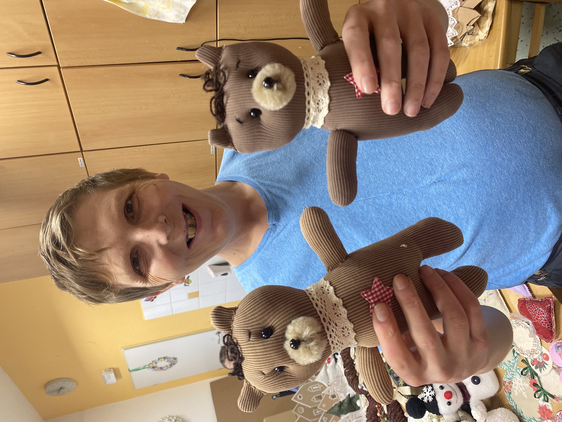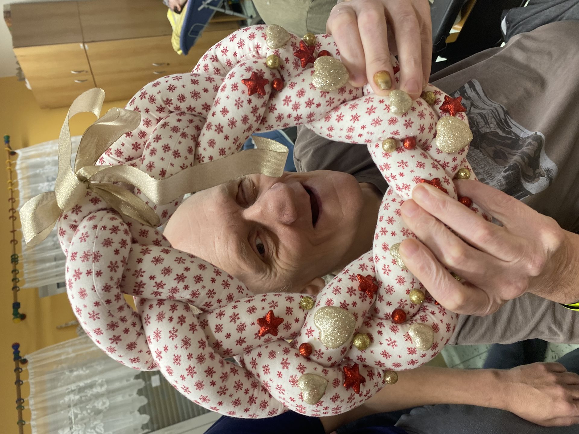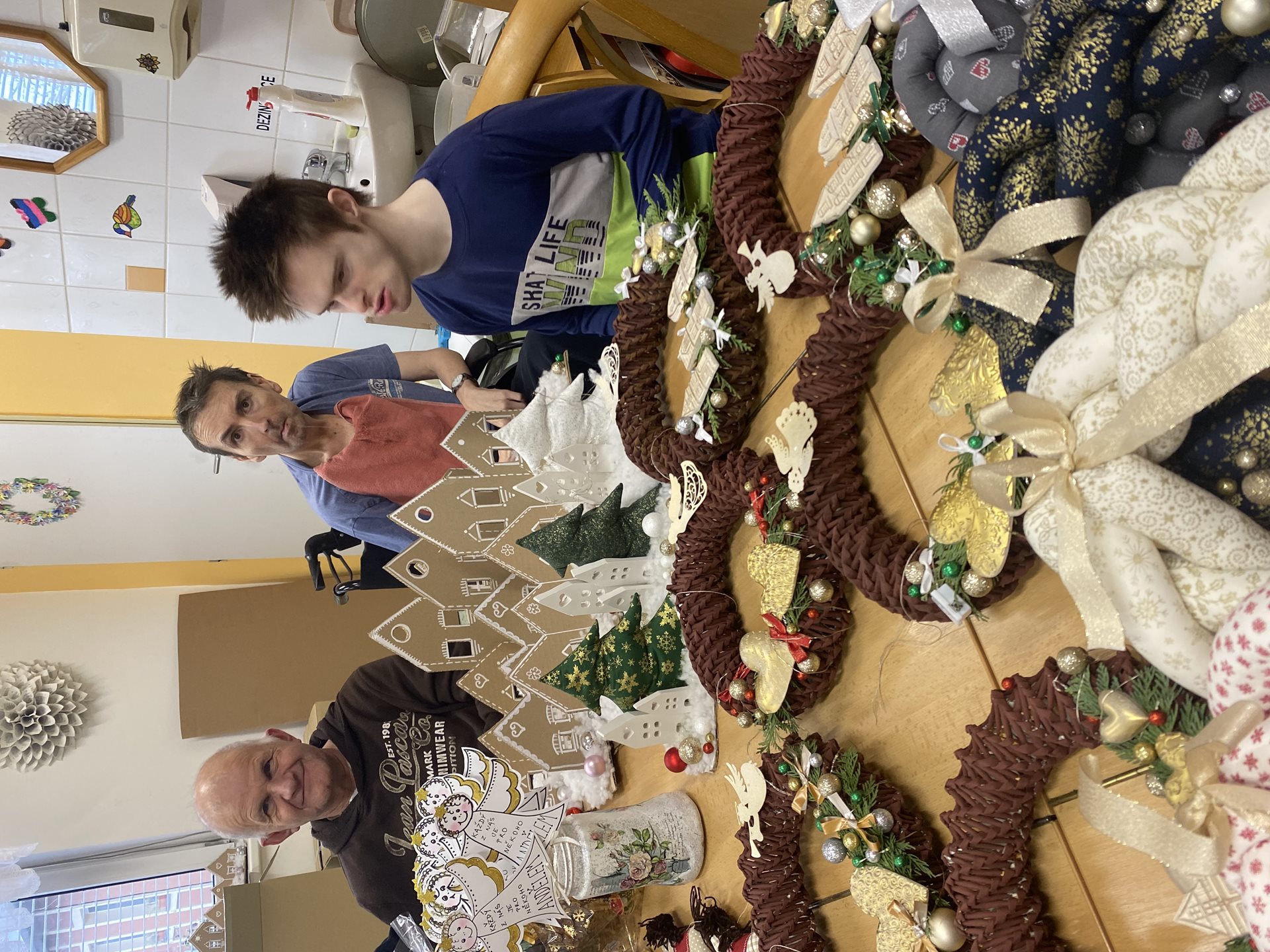 Dostali jsme pozvání na Adventní zastavení s jarmarkem na zámku v Dřevohosticích. Protože jsme za asistence instruktorek v domově vyráběli různé rukodělné výrobky, dárky a vánoční dekorace, a myslíme si, že vše se nám náramně povedlo, pozvání jsme velmi rádi přijali. Na jarmarku bylo mimo naše výrobky i několik dalších stánků s vánoční tématikou a výtvarné dílničky. Prodával se i vánoční punč nebo voňavý čaj pro děti. Dechová hudba Křtomilanka nám zahrála několik krásných koled. Bylo to velmi příjemné odpoledne plné vánoční atmosféry.