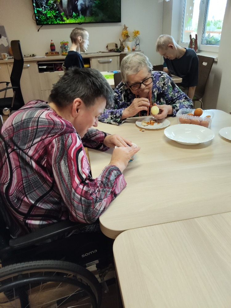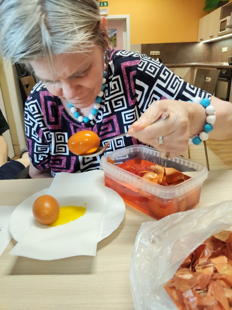 Pak jsme do hrnce vložili vejce a vařili je společně se slupkami. Vajíčka postupně získala krásnou hnědou barvu a každé z nich bylo jedinečné. Některé bylo tmavší, jiné světlejší a všechna vypadala krásně.