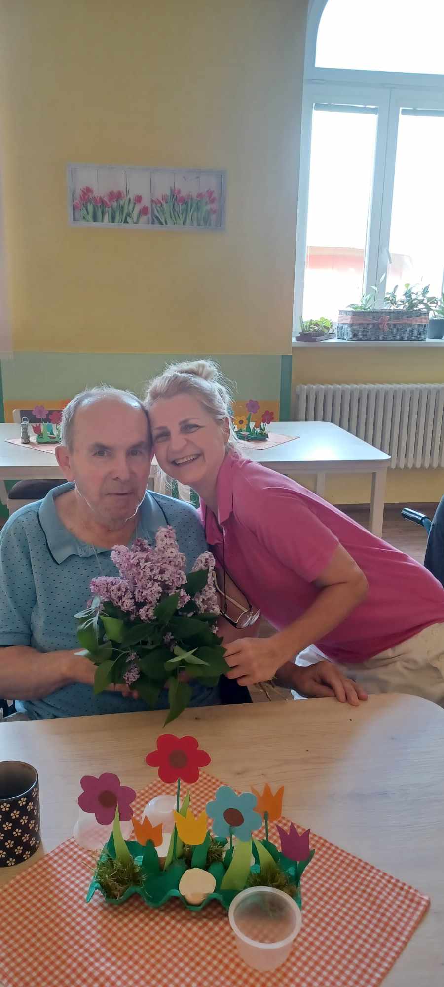 Čaj podávaný ve svátečním servisu, milá společnost a opojná vůně šeříků, i takové může být nedělní odpoledne v domově pro seniory.