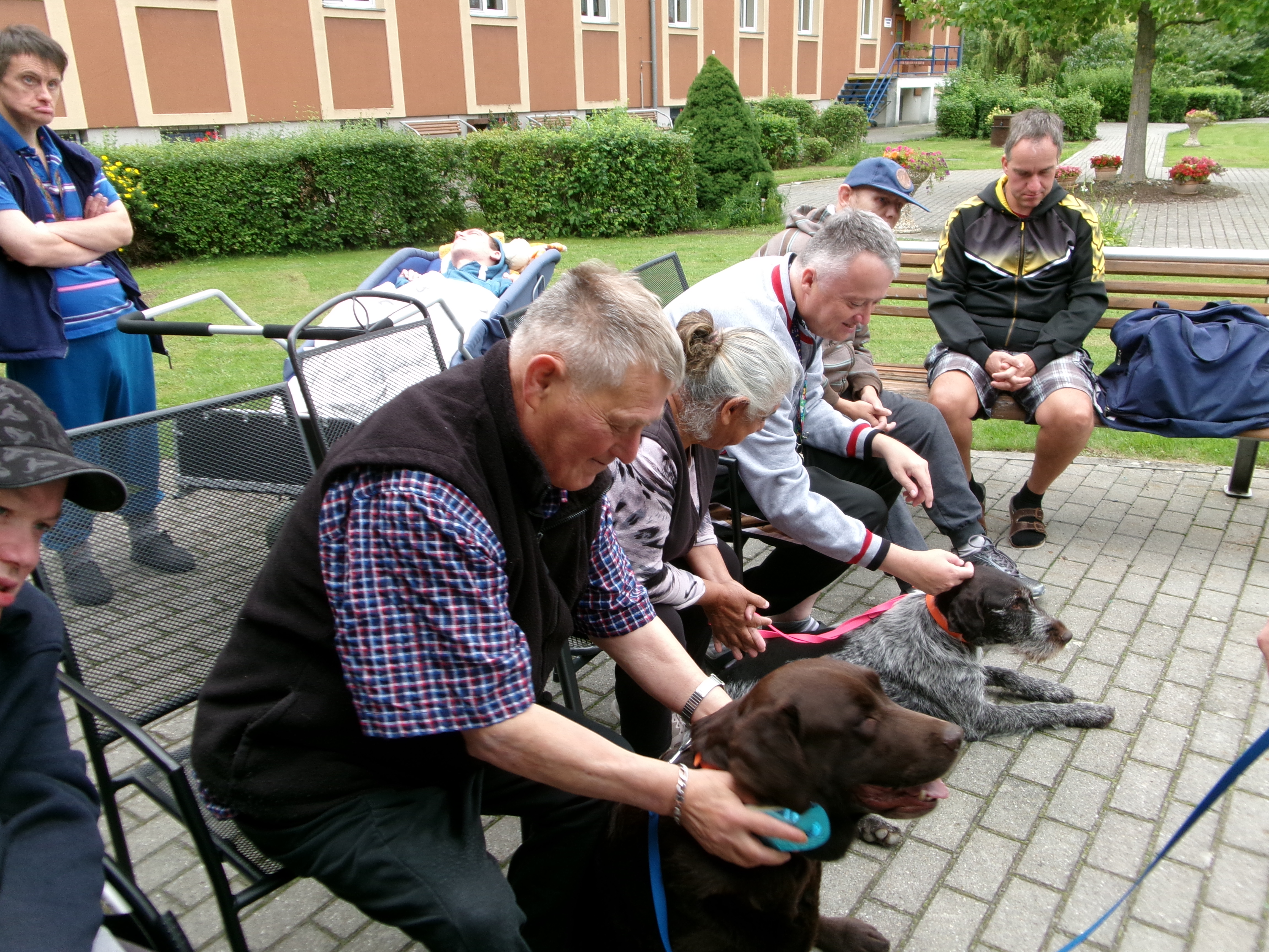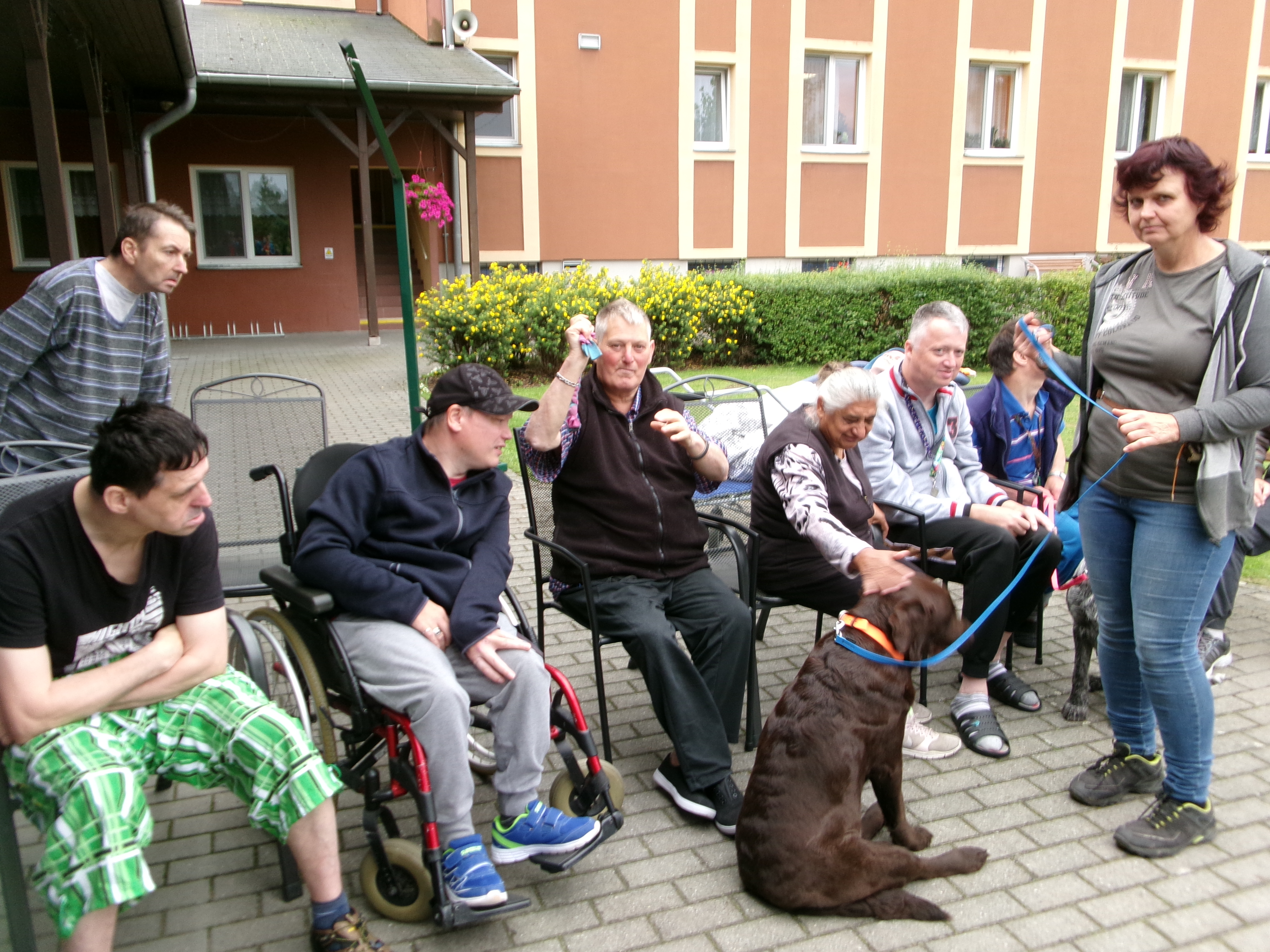 Každý týden k nám zavítají psi a pod vedením své majitelky nám poskytnou canisterapeutické dopoledne. Vždy se na ně moc těšíme.