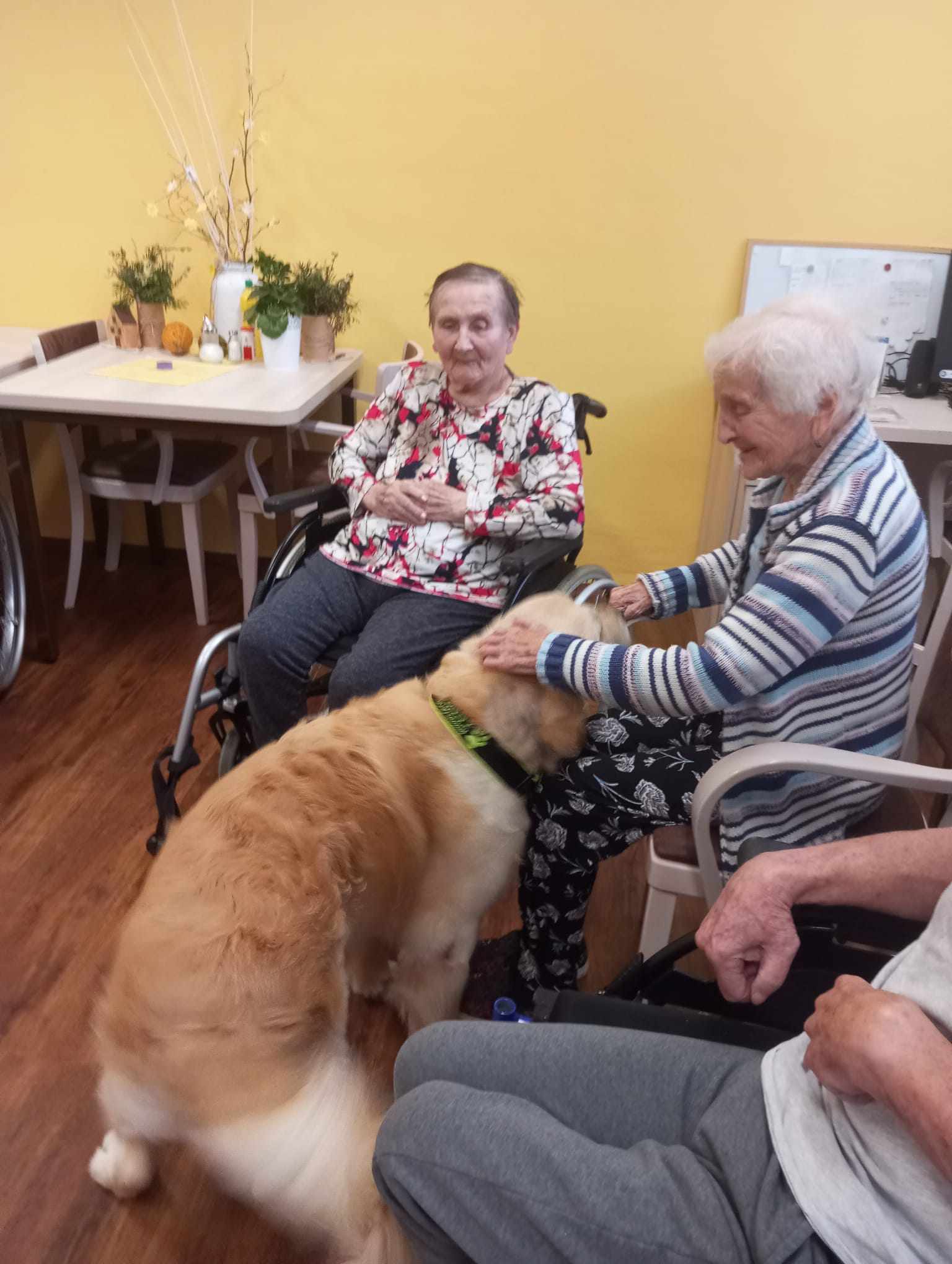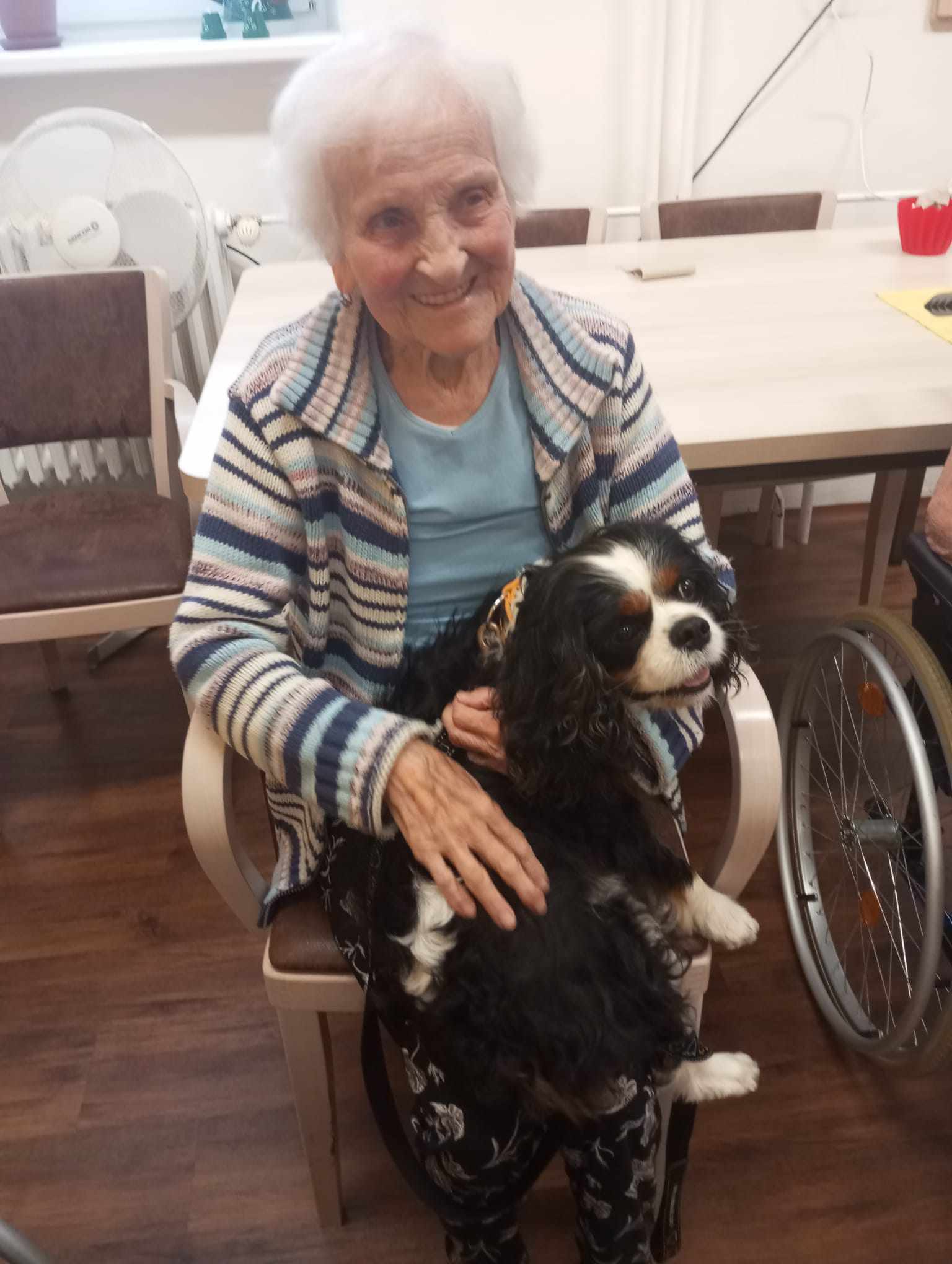 Dnes nás opět navštívila paní Jaruška se svými psy Eliotem a Denym. Senioři již netrpělivě očekávali příchod svých chlupatých návštěvníků, protože věděli, že tyto interakce přinášejí teplo, radost a pocit propojení. Během sezení se senioři střídali v držení, hlazení a interakci s Eliotem a Denym. Psi, díky své jemné povaze a přirozené intuici, poskytovali uklidňující společnost, která podporovala atmosféru klidu a štěstí. Kromě canisterapie paní Jaruška také prokládá tato setkaní cvičeními na procvičovaní paměťových funkcí, která podporují kognitivní schopnosti seniorů. Tato kombinace fyzické a mentální stimulace přispívá k celkovému zlepšení zdravotního stavu klientů. Canisterapie, díky poutu mezi lidmi a zvířaty, nadále hraje cennou roli ve zlepšování kvality života seniorů.