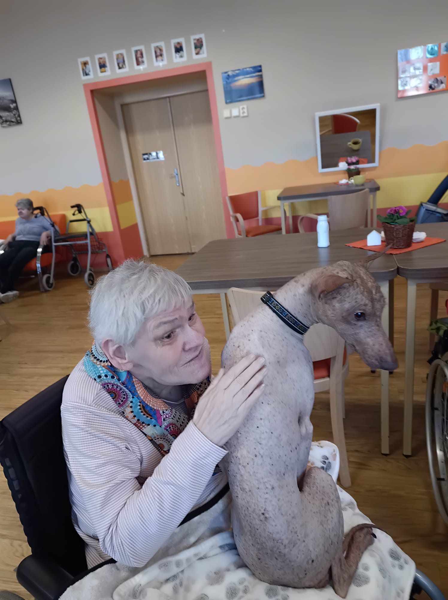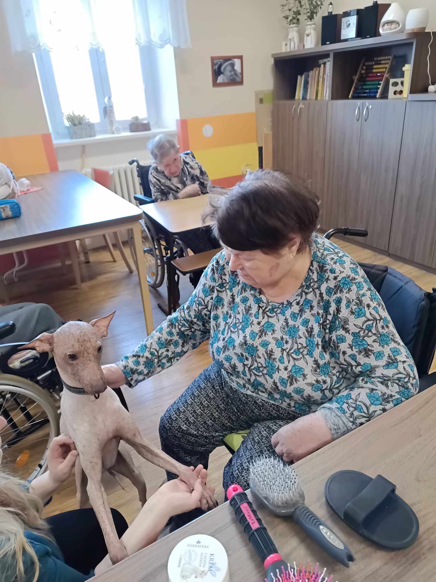 V Centru Dominika Kokory proběhlo další setkání s canisterapií, které přineslo spoustu úsměvů a příjemných chvil. Tentokrát přijeli osvědčení psí terapeuti – přítulný naháč Lamínek a jeho věrná kamarádka Teminka. Oba okamžitě navodili atmosféru pohody a laskavého kontaktu.