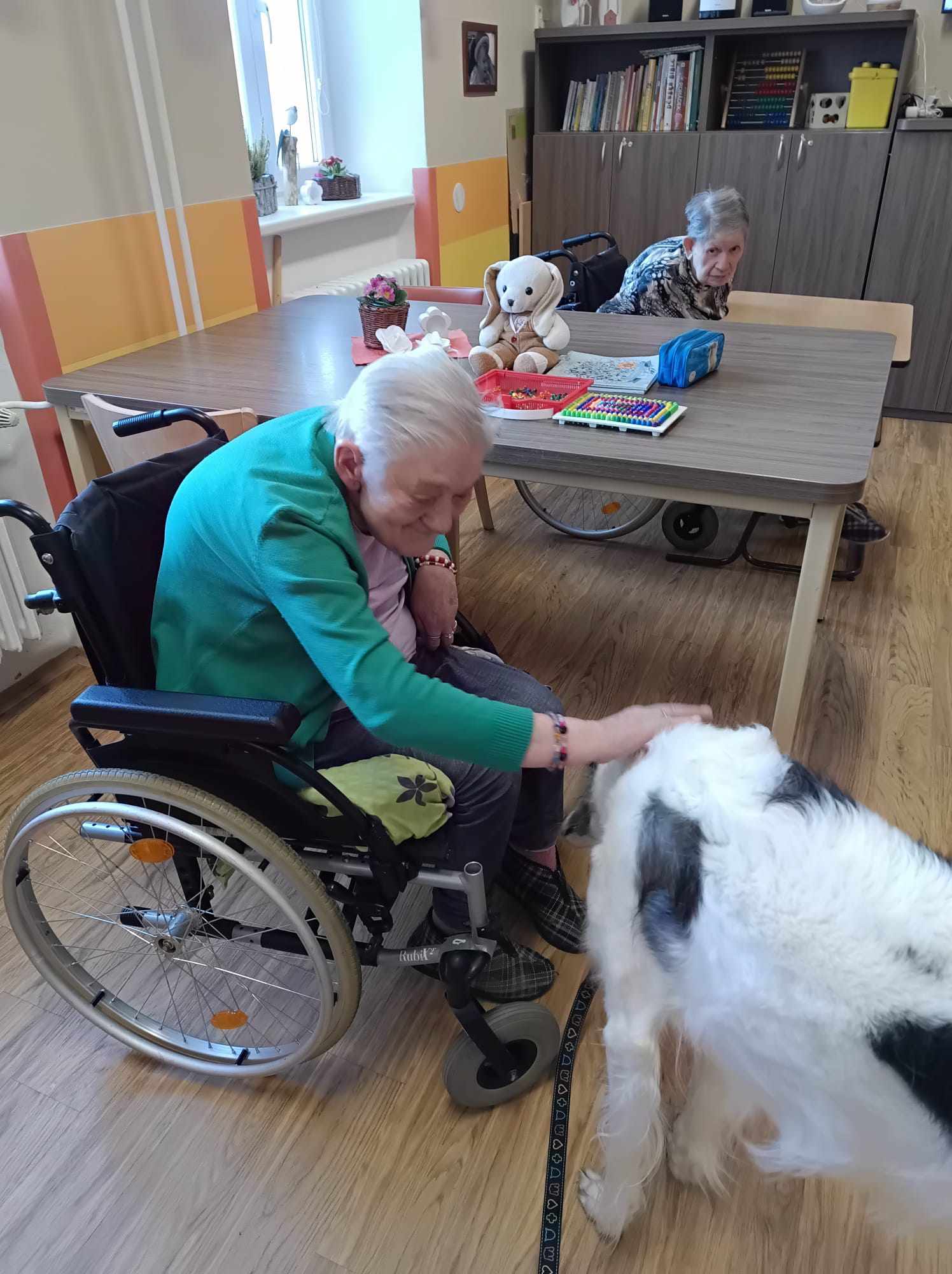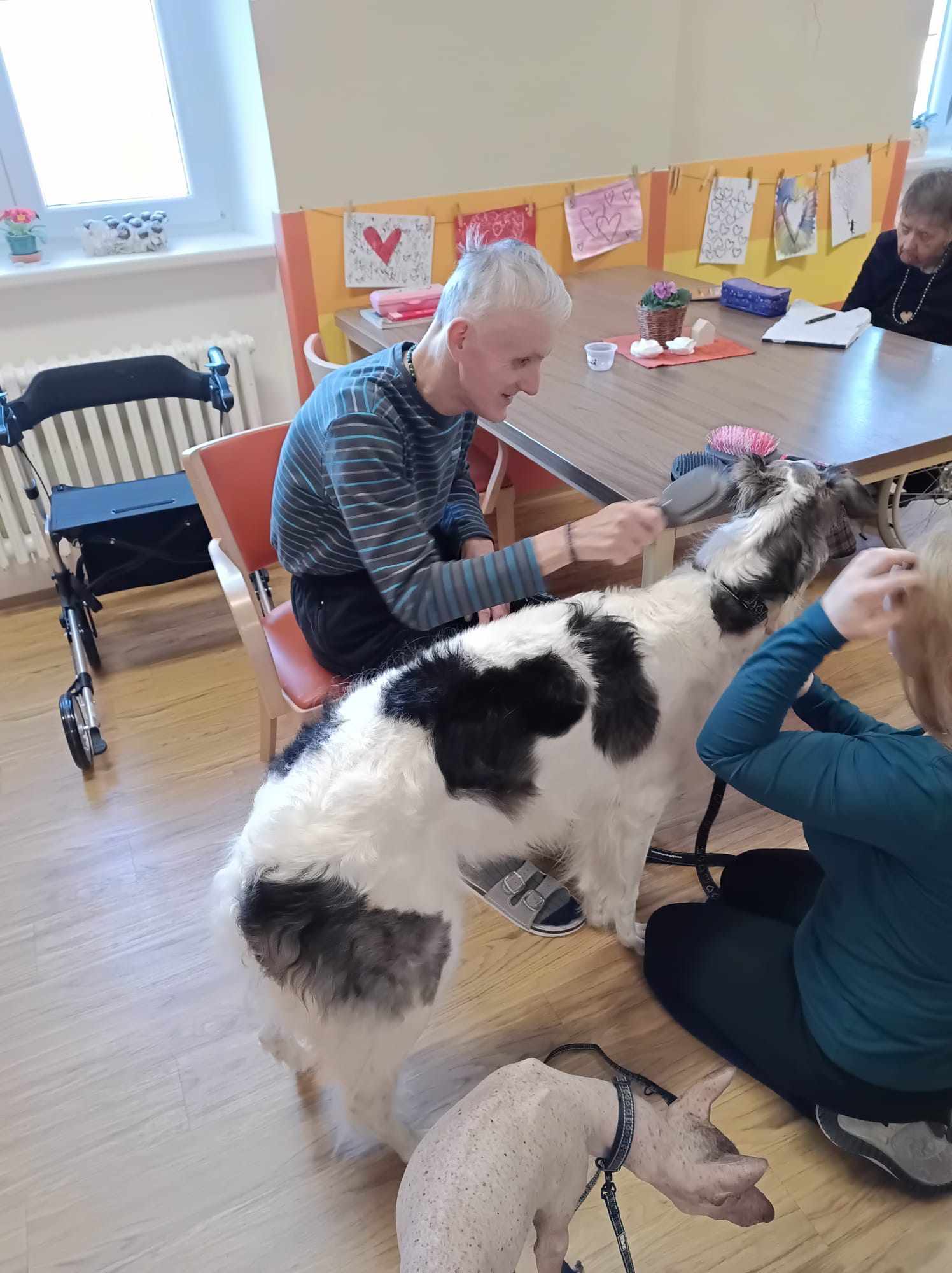 Lamínek svým přátelským chováním rozzářil tváře všech přítomných. Klienti si ho mohli pochovat, pohladit a užít si jeho blízkost. Teminka, stejně klidná a vnímavá, rozdávala něhu a podněcovala k jemné interakci. Společnost psů měla pozitivní vliv nejen na psychickou pohodu, ale i na procvičování motorických dovedností a posilování mezilidské komunikace.