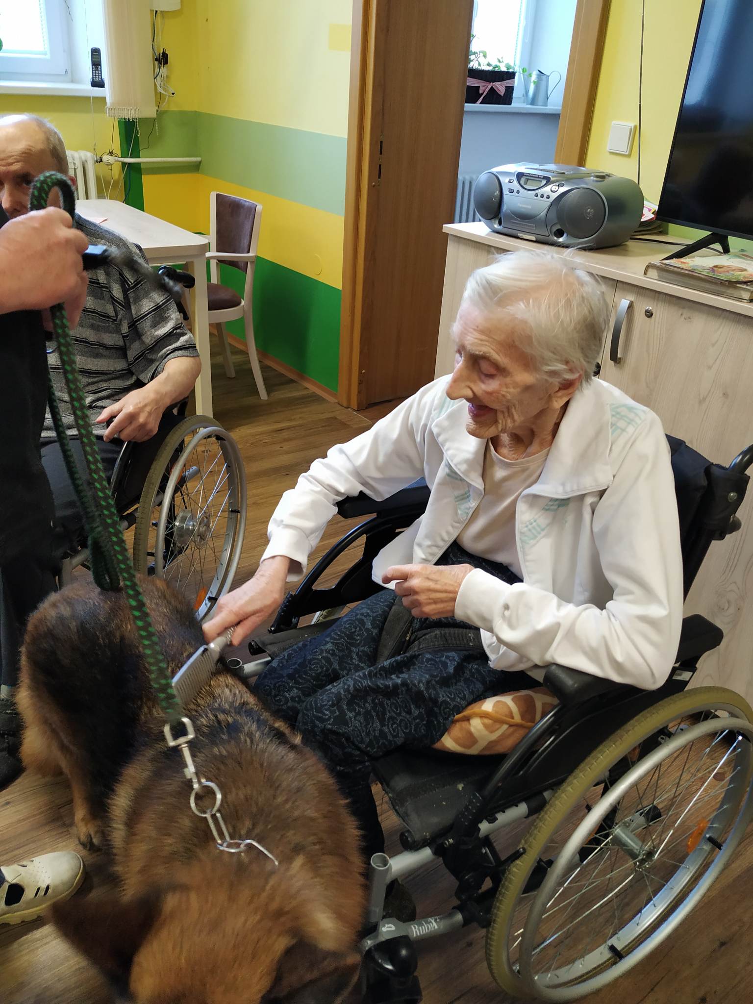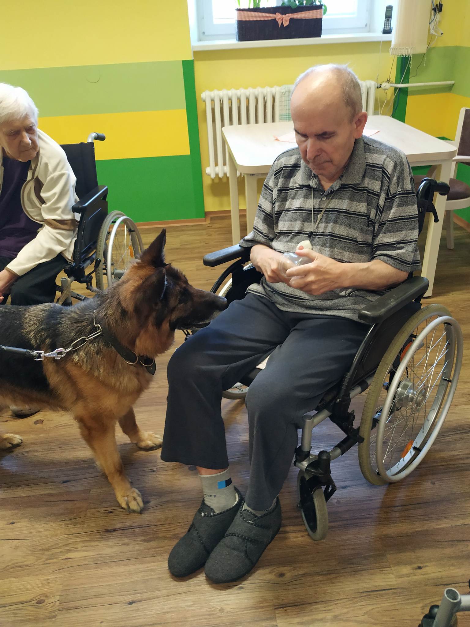 Jednou z forem rehabilitace, kterou v našem zařízení pravidelně realizujeme, je také canisterapie. Ta je založena na vzájemné pozitivní interakci člověka a psa, které se využívá ke zlepšení či udržení zdravotního stavu, sociálních dovedností, znalostí a kvality života jedince. Canisterapie kladně působí na psychickou a sociální stránku člověka a zároveň pozitivně ovlivňuje i jeho fyzický stav.