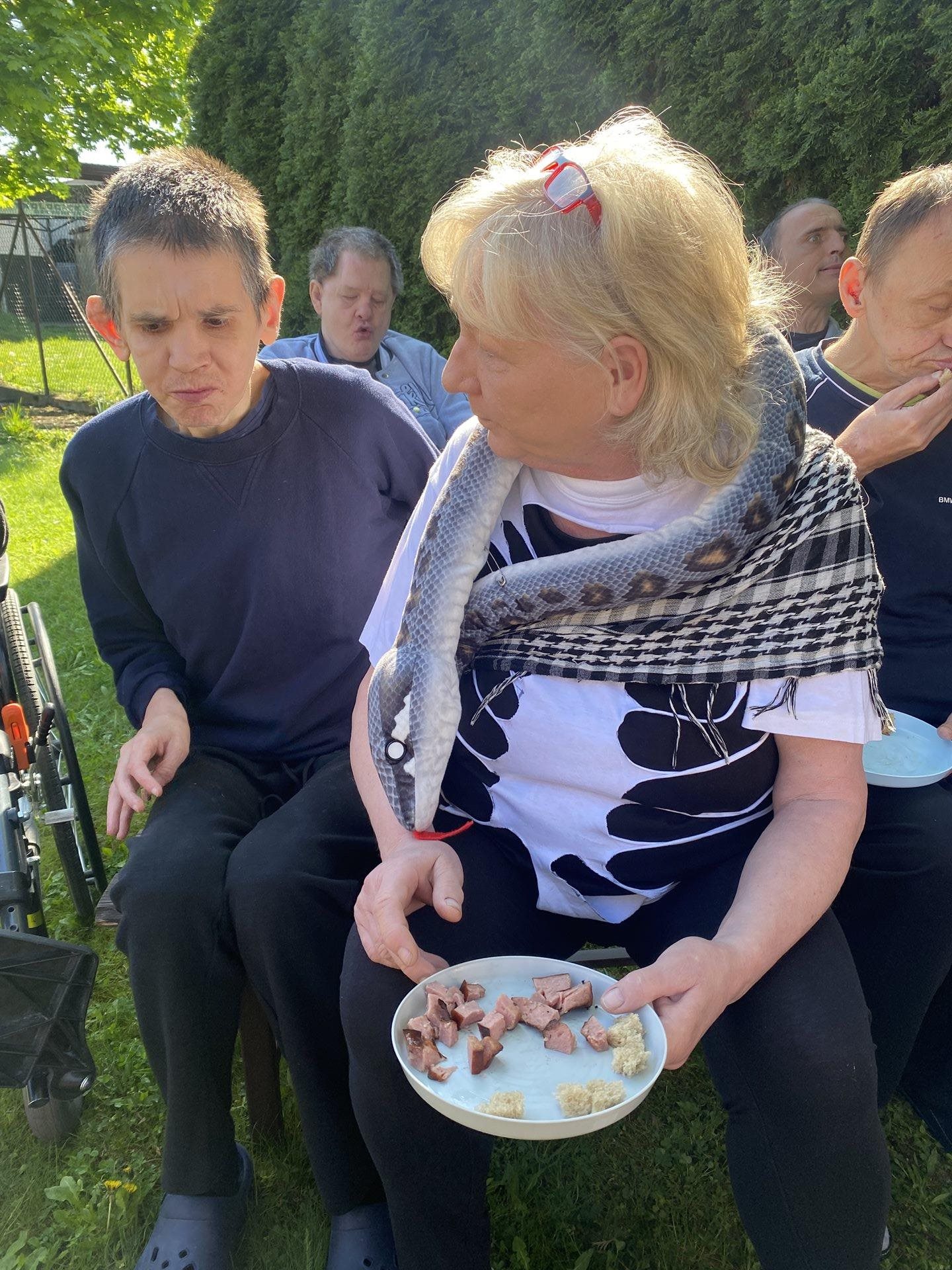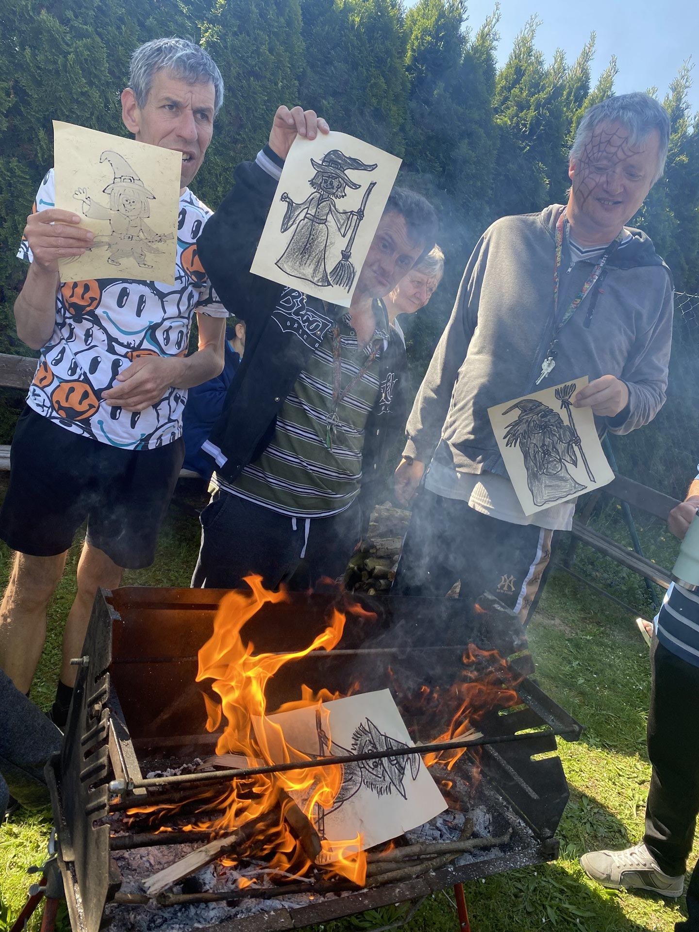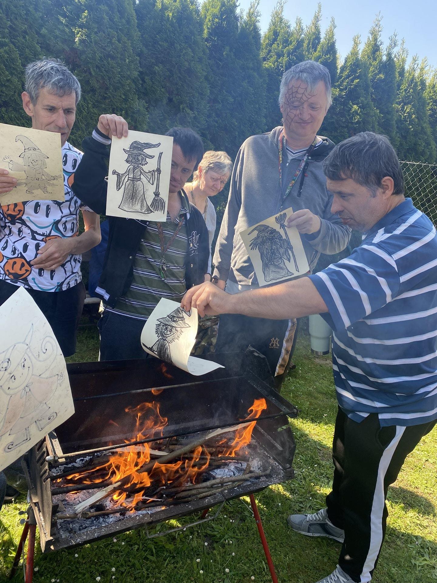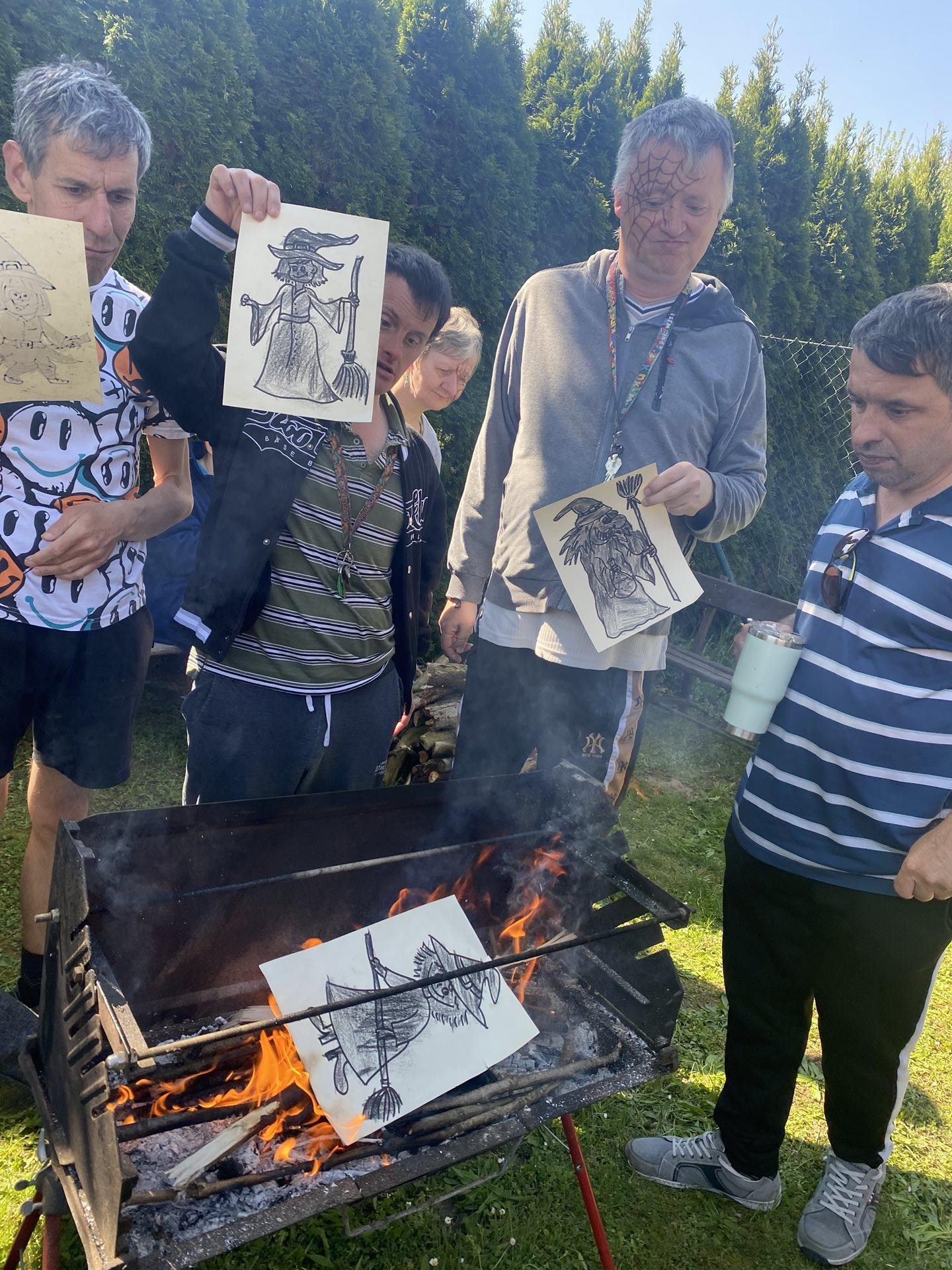 My jsme si připravili malované čarodějnice, které jsme vhodili do ohně a také jsme jednu velkou vyrobenou čarodějnici upálili . Ale hlavně jsme si užili opékání špekáčků, tanec, písničky a povídání.