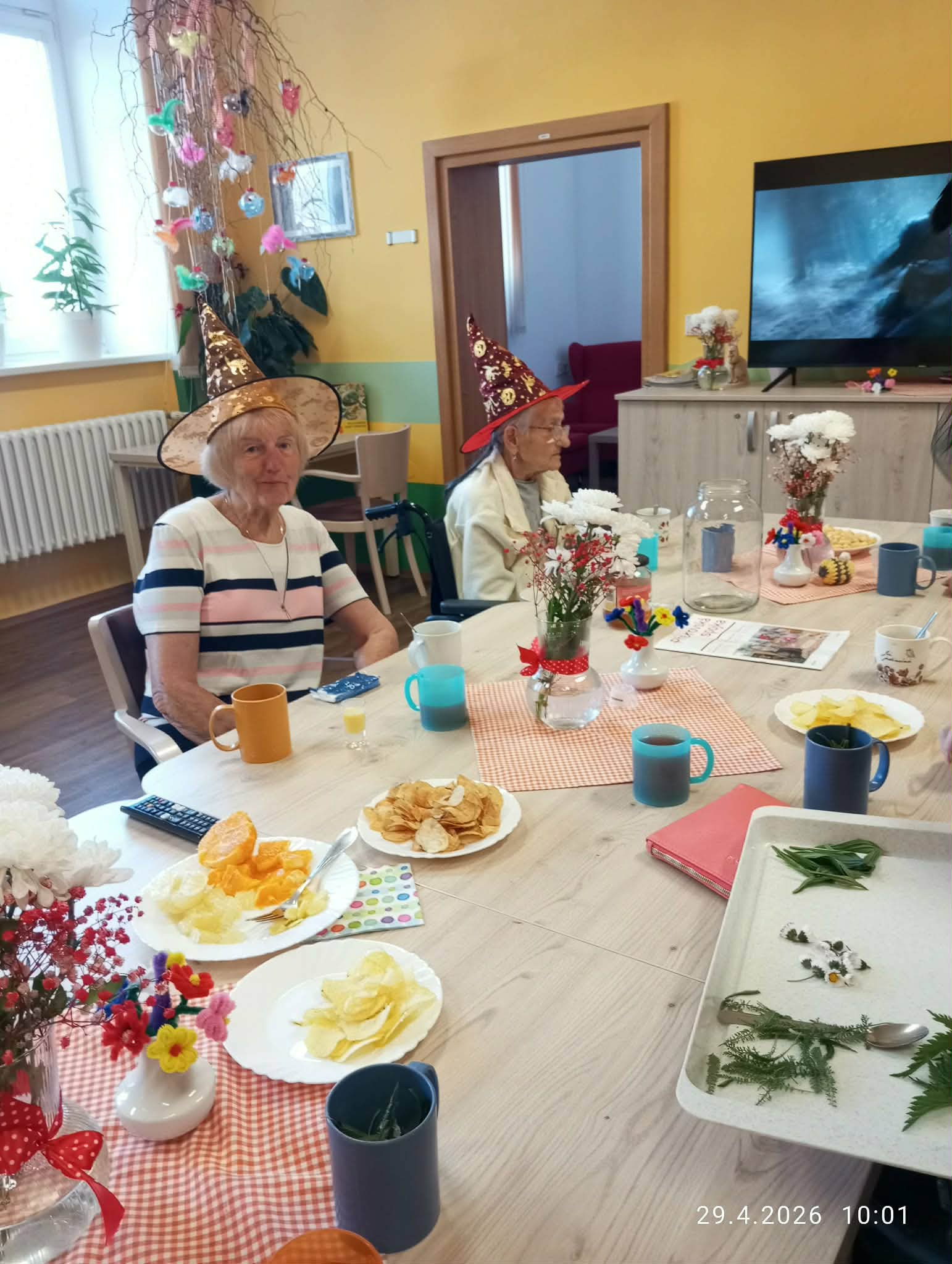Dnes jsme v našem zařízení oslavili Filipojakubskou noc a vytvořili si vlastní kouzelný svět! Naši klienti se proměnili v čarodějnice a kouzelníky, oblékli se do magických klobouků a společně si užívali kouzelnou atmosféru. V naší kouzelné lékárně jsme se ponořili do světa magických chutí a vůní. Klienti se s nadšením zúčastnili soutěže v poznávání ingrediencí, které skrývaly tajemství starodávných receptů.