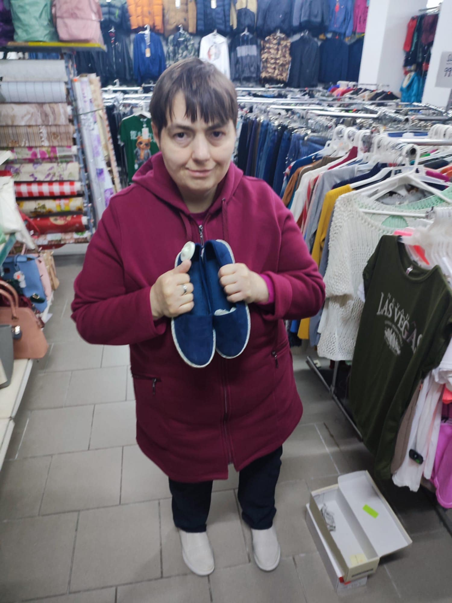 Poté se přesunuly do nedalekého obchodu, kde si jedna z klientek s radostí vybrala nové modré boty. Nákupy se nesly v pohodové atmosféře, klientky měly možnost samostatně se rozhodovat a vyzkoušet si různé role při výběru zboží.