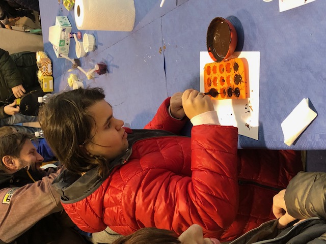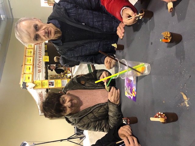 Na Čokoládovém festivalu jsme viděli nejrůznější dobroty z čokolády, některé jsme ochutnali, některé jen obdivovali. Měli jsme možnost vyrobit si vlastní pralinky a namalovat si sušenku potravinářskými fixy. Součástí programu byla také ochutnávka netradiční marmelády od Jany Pavlůskové a kreativní vaření s čokoládou. Velkou atrakcí byl lední medvěd jako maskot akce.