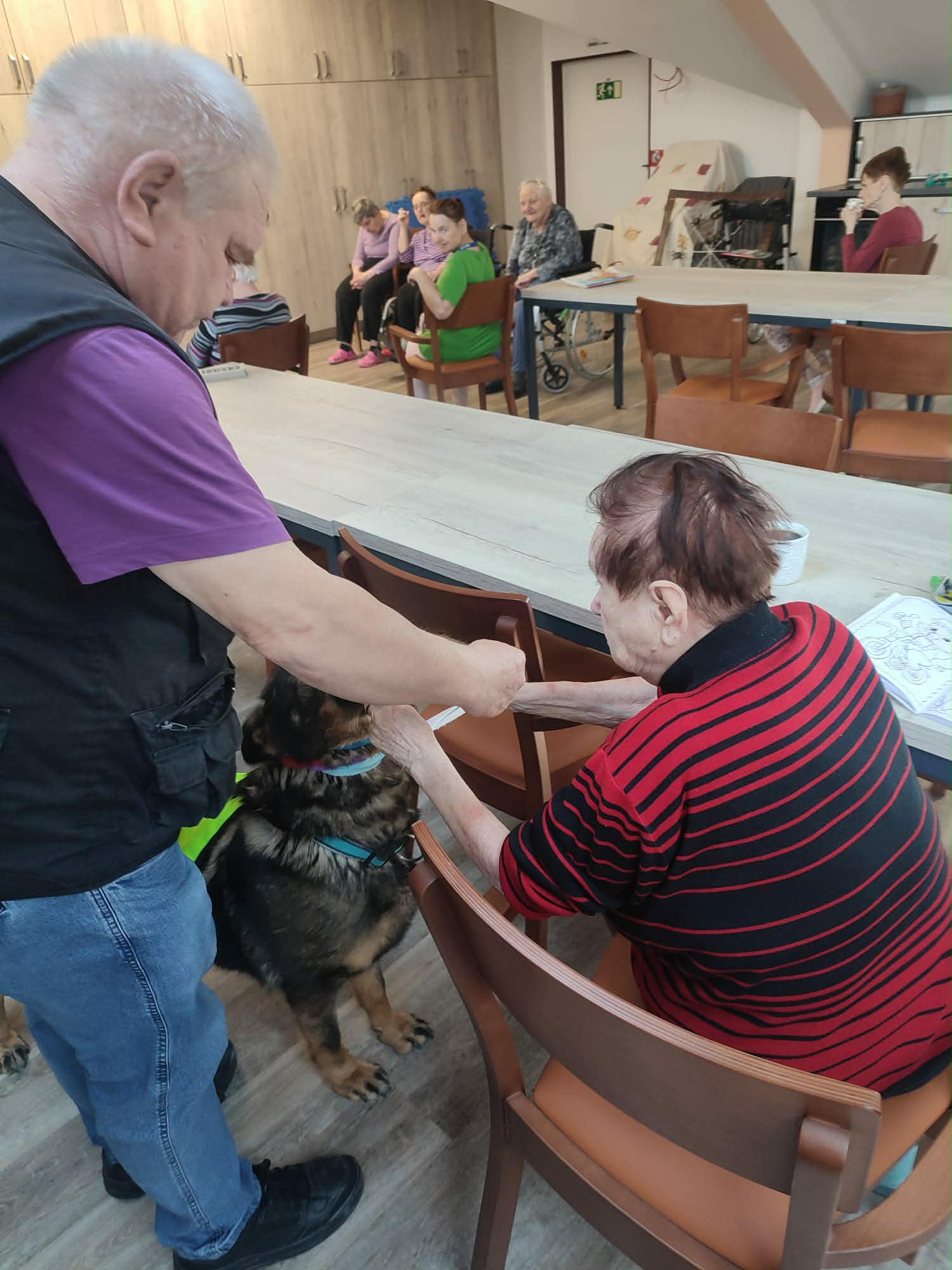 Během canisterapie měli klienti možnost psa pohladit, navázat s ním kontakt a zapojit se do jednoduchých aktivit a her. Přirozená interakce se zvířetem podporuje pozitivní emoce, komunikaci i aktivizaci klientů. Pro mnohé z nich je kontakt se psem velmi příjemným zpestřením dne a zároveň formou přirozené stimulace.