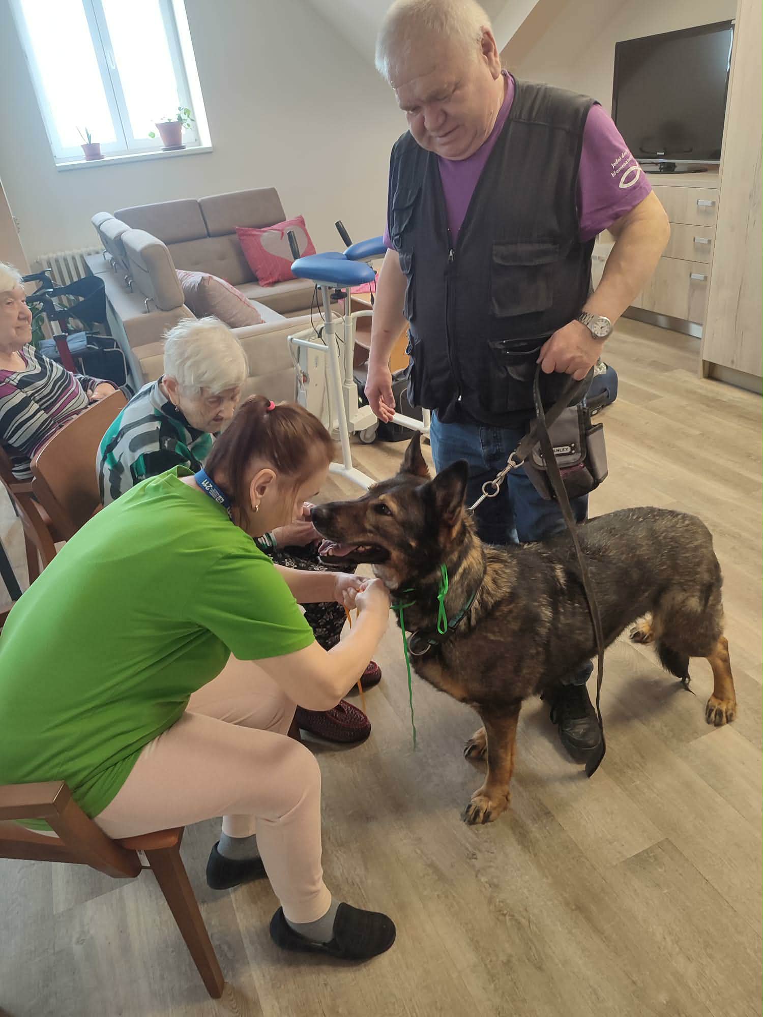 Děkujeme panu Doškovi i jeho psímu parťákovi za milou návštěvu a těšíme se na další společné setkání, která našim klientům přinášejí radost, uvolnění a nezapomenutelné chvíle.