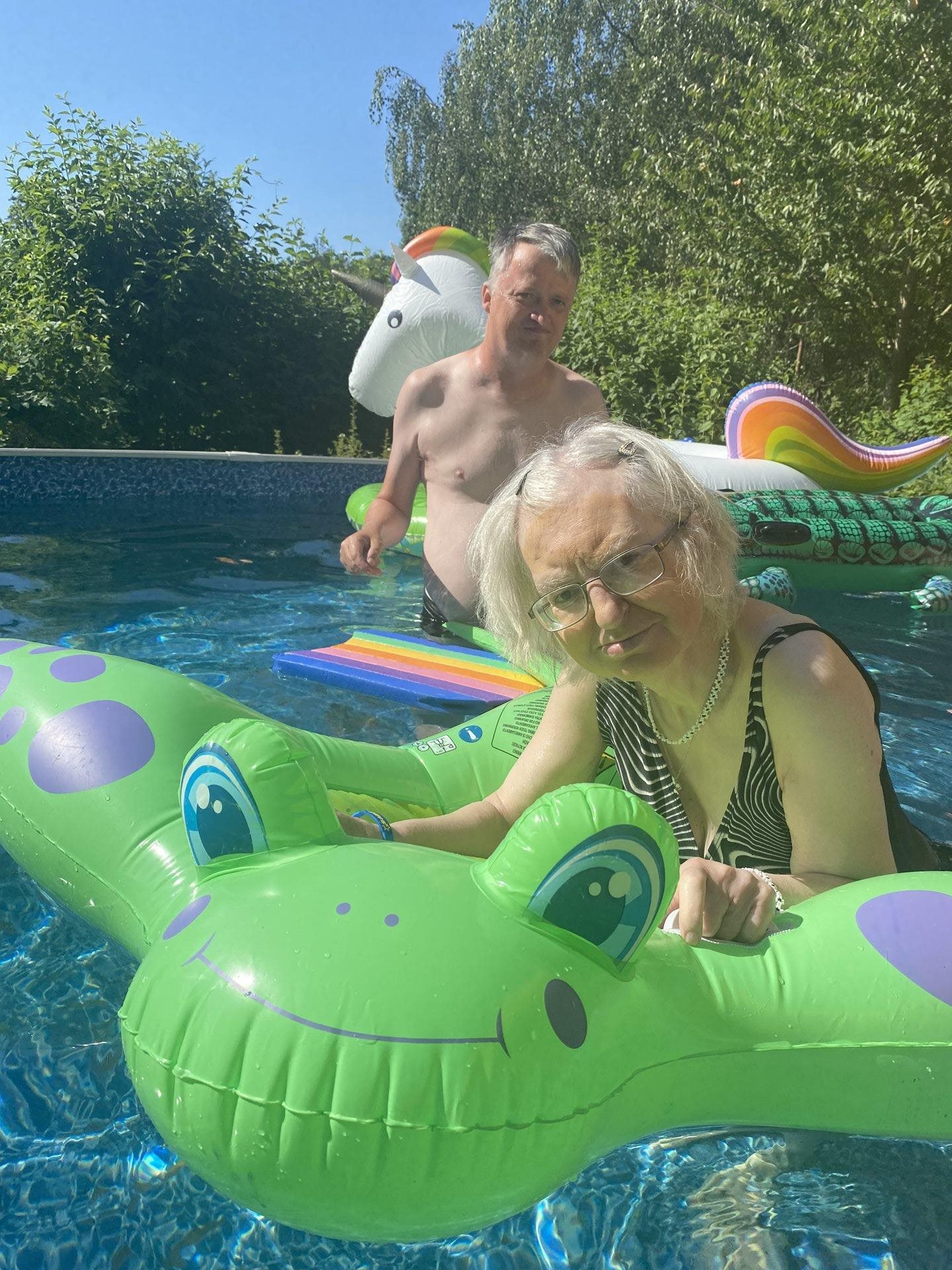 Oblékli jsme se do plavek, nafoukli různá vodní lehátka, kruhy a balóny, připravili si opalovací lehátka, krémy na opalování a domácí limonádu. Vodní hrátky máme moc rádi a tak jsme střídali pobyt jak ve velkém bazénu, tak v příjemné vířivce. Tvořili jsme hrady z písku, hledali jsme mušličky, ochutnávali slanou vodu, povídali si v pergole, odpočívali na lehátkách - zkrátka jsme si užívali den tak, jako bychom byli u moře. Dopřáli jsme si také vychlazený vodní meloum, který je v horkých letních dnech skvělým občerstvením.