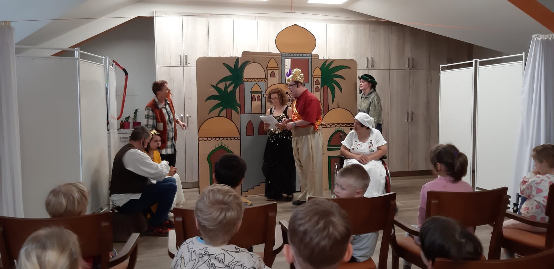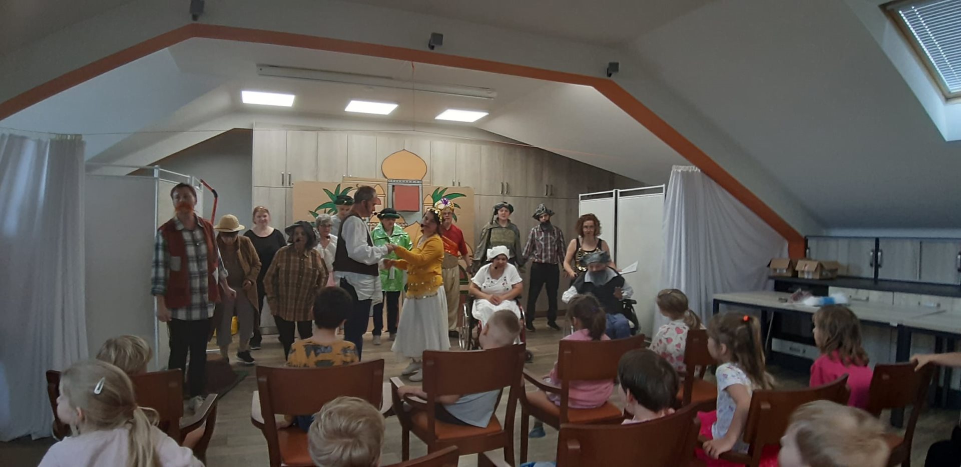 Děti a paní učitelky z MŠ Kokory přijaly naše pozvání a přišly zhlédnout divadelní představení Lotrando a Zubejda v podání našich klientů a pracovníků.