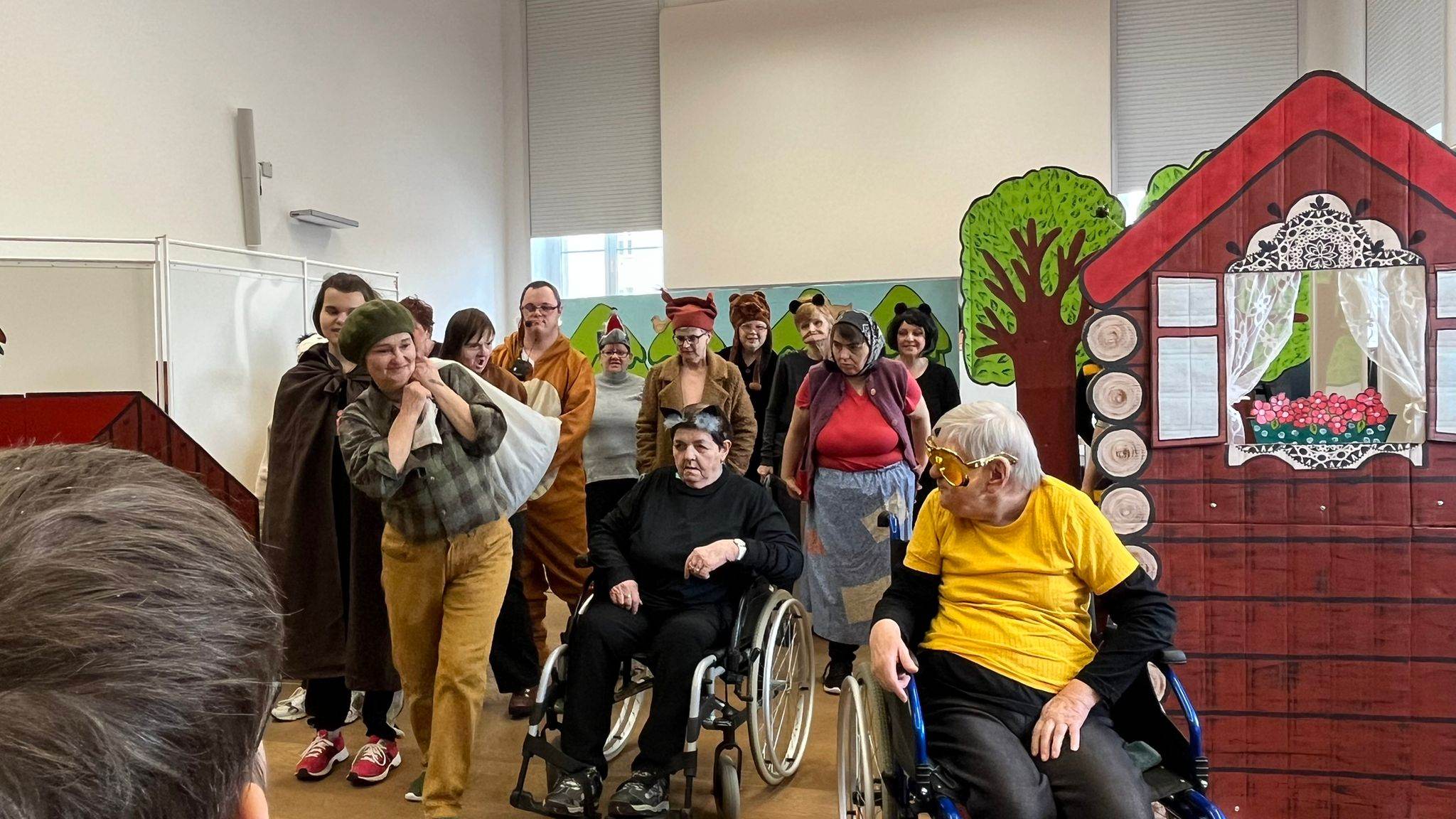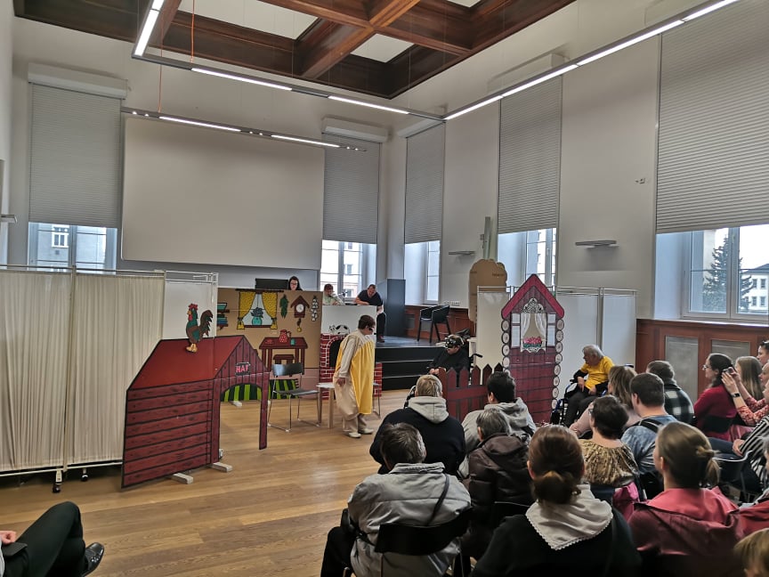 s Pedagogickou Fakultou dostal amatérský divadelní spolek Dominika příležitost představit své zpracování lidové pohádky „Koblížek“ v malé aule dne 23. 3. 2023 v 13:00. Příprava na představení zahrnovala velmi náročnou organizaci ze strany zaměstnanců, neboť bylo nutné zajistit přepravu 14 klientů a 10 zaměstnanců, včetně technické podpory, kulis a drobného občerstvení. Byla žádoucí spolupráce všech úseků organizace.