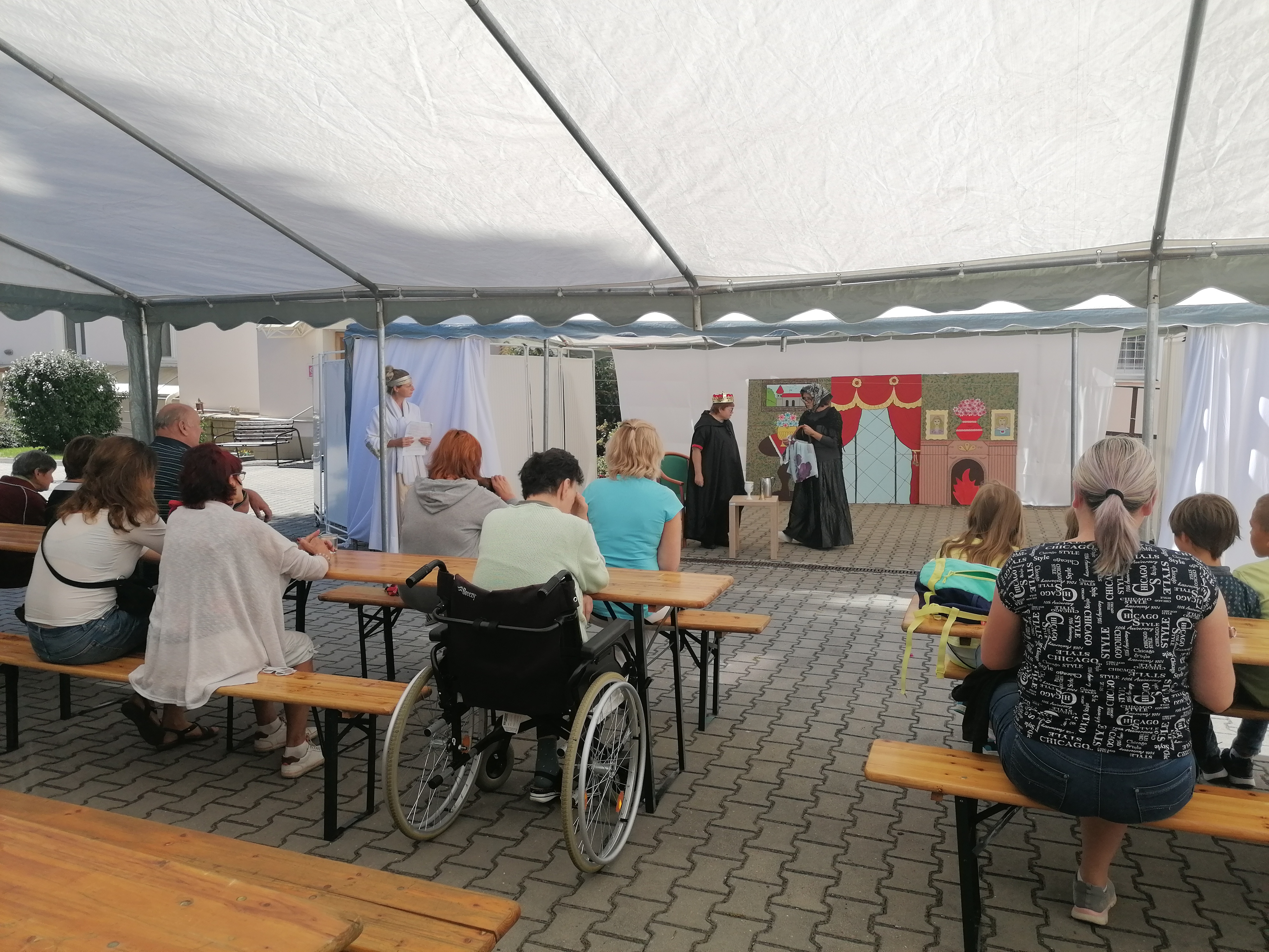 Naši klienti si pod vedením pracovníků připravili divadelní představení Zlatovláska. Uspořádali jsme proto společné setkání klientů, jejich opatrovníků a rodin, i veřejnosti, aby se klienti mohli před zraky svých nejbližších "blýsknout" svým výkonem a poté strávit společný čas při poslechu cimbálové muziky Primáš. Představení mělo veliký úspěch a už nyní se těšíme na zpracování další oblíbené pohádky.