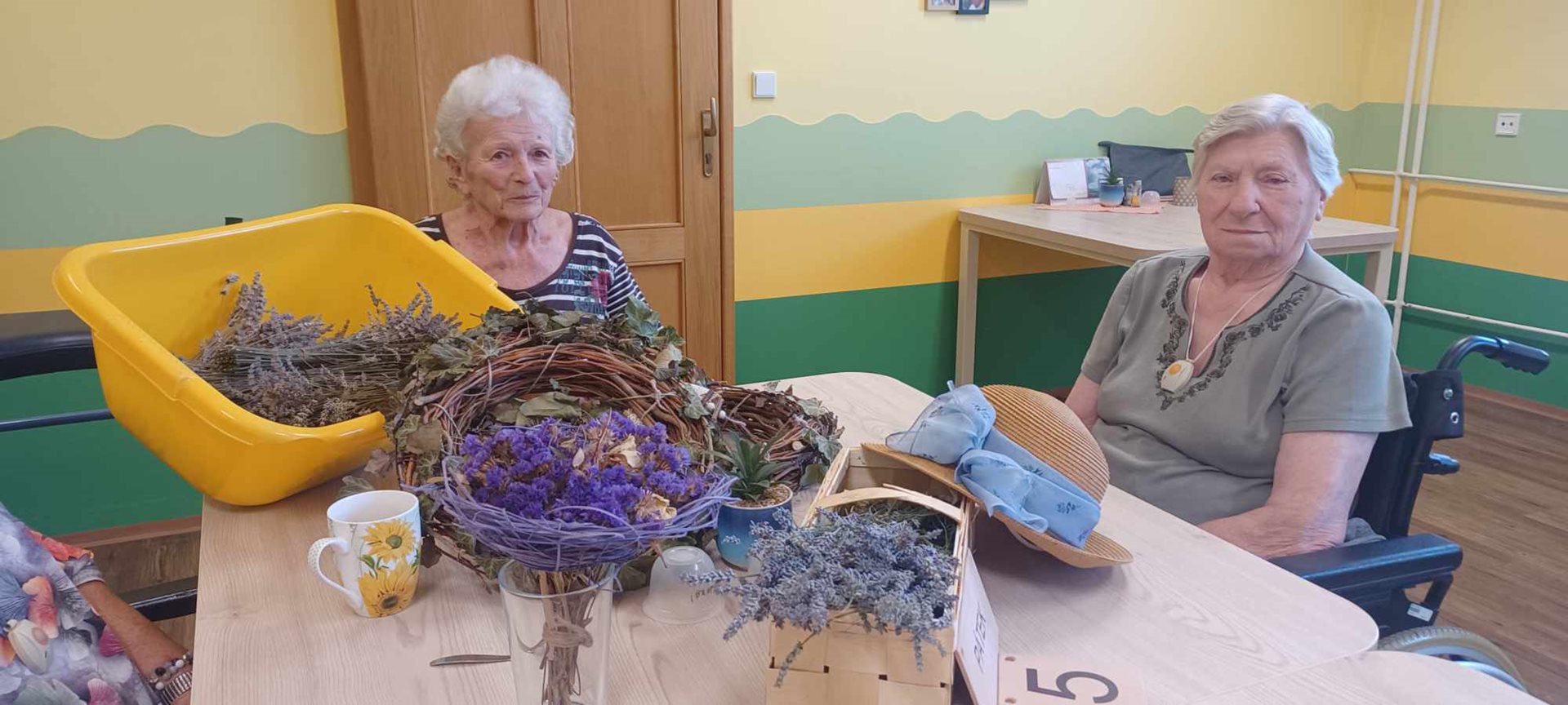 V rámci "Provence - dopoledne" se klienti zapojili do stříhání a vázání fialových voniček. Vůně se linula po celé jídelně i na chodbách. Věnce z uvázaných kytiček levandule pak ozdobily zdi oddělení. Popovídali jsme si i o jejím pěstování a využití. Taktéž jsme si připravili levandulový olej, který následně využijeme při aromaterapii a jemných masážích. Náladu a vzpomínky podbarvila píseň " Ty jsi má, levandulová" od Petra Hapky. S paní zpěvačkou Hanou Hegerovou jsme si i nostalgicky zanotovali. Svou vůní při zhotovování dekoračních vazeb překvapily i větvičky z olivovníků. Senioři si zavzpomínali na dovolené u moře, kam jezdívali se svými rodinami.