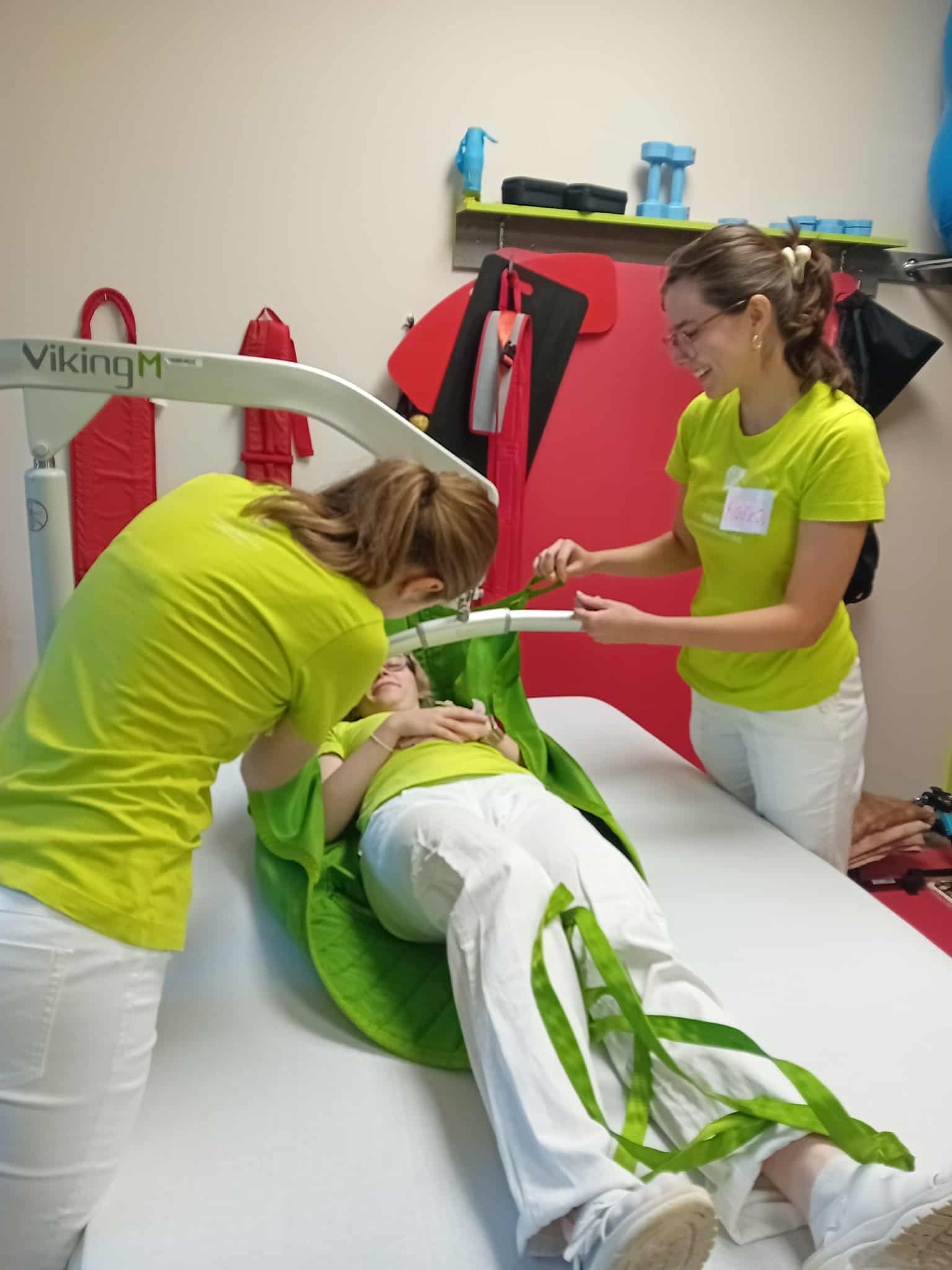 Studenti se seznámili s praktickými ukázkami, měli možnost sledovat i vyzkoušet správné techniky manipulace a přenosu s využitím kompenzačních pomůcek. Nahlédli tak do reálné praxe, kde je důraz kladen nejen na bezpečí klientů, ale také na ochranu zdraví personálu.