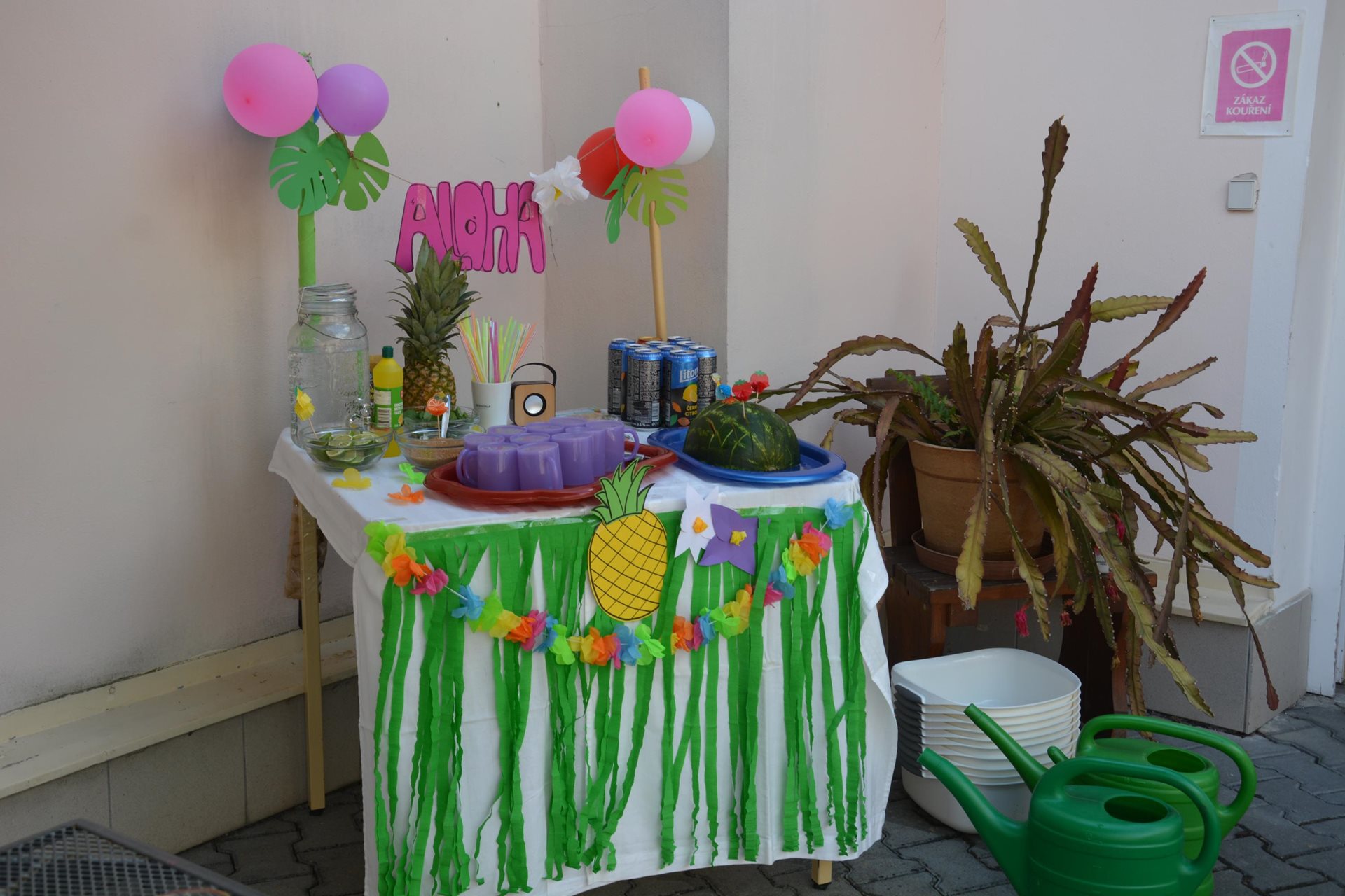 Tato párty byla výsledkem několika denní práce s klientkami dle Montessori konceptu, v jehož duchu se také celý předešlý týden uskutečňovaly všechny přípravy. Zvolené aktivity byly provázené názornými ukázkami již konkrétních bylinek a surovin směřujících k tvorbě receptu na nápoj a smyslové stimulaci. Součástí příprav byla také výroba havajských věnců, které dodaly celé akci správný exotický nádech.