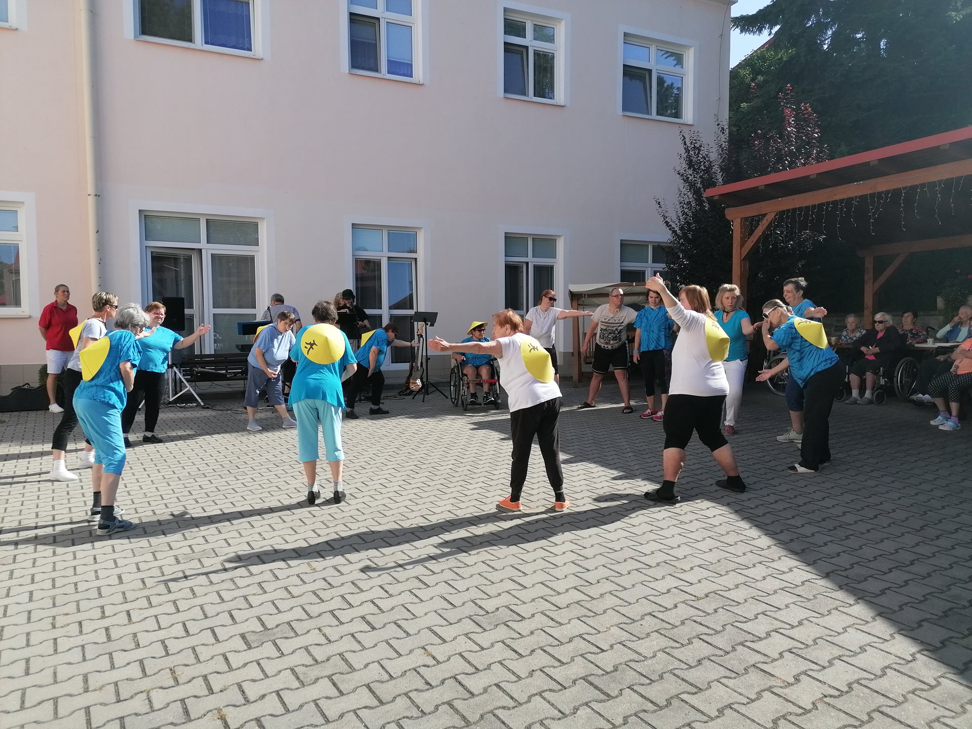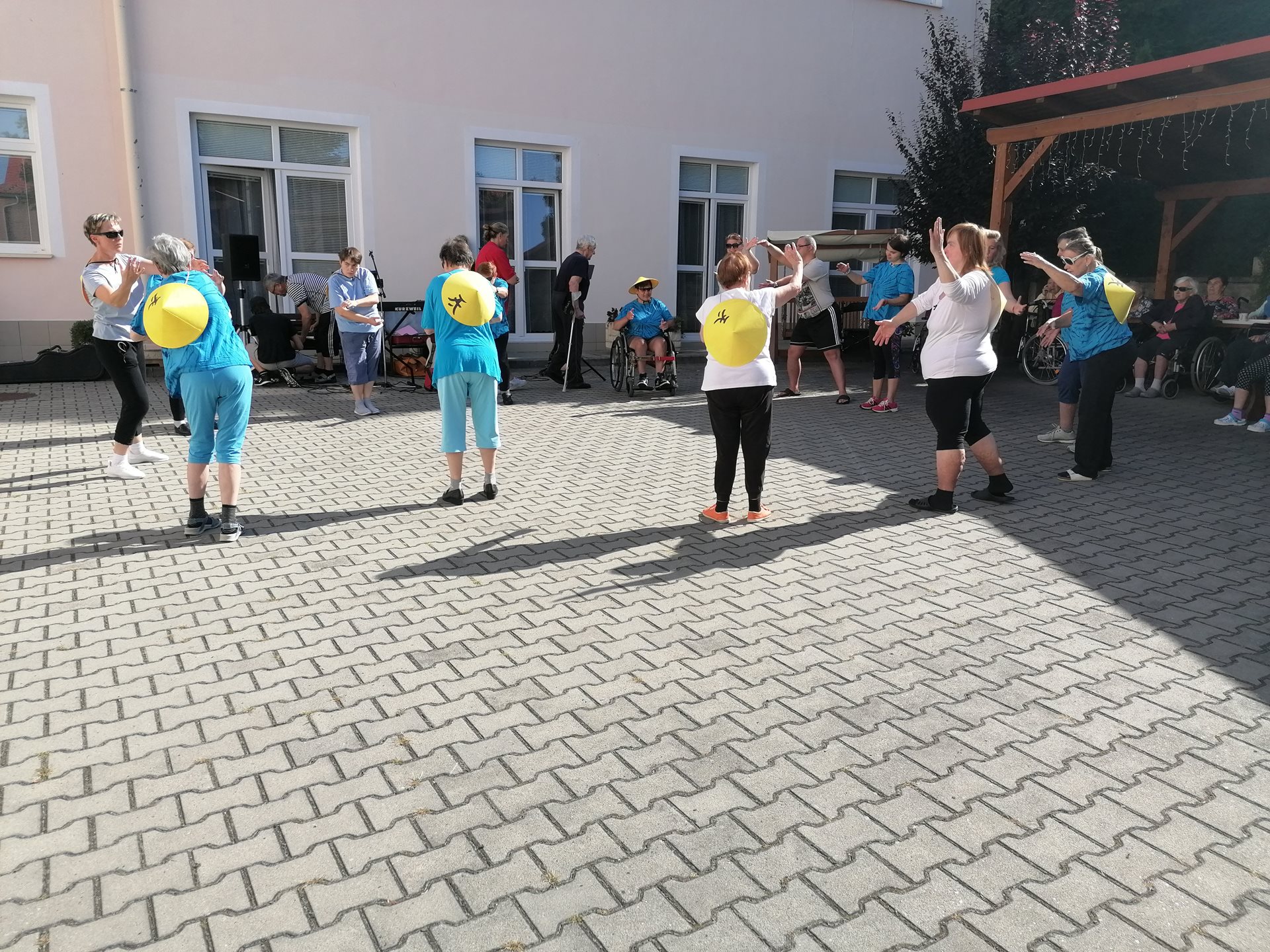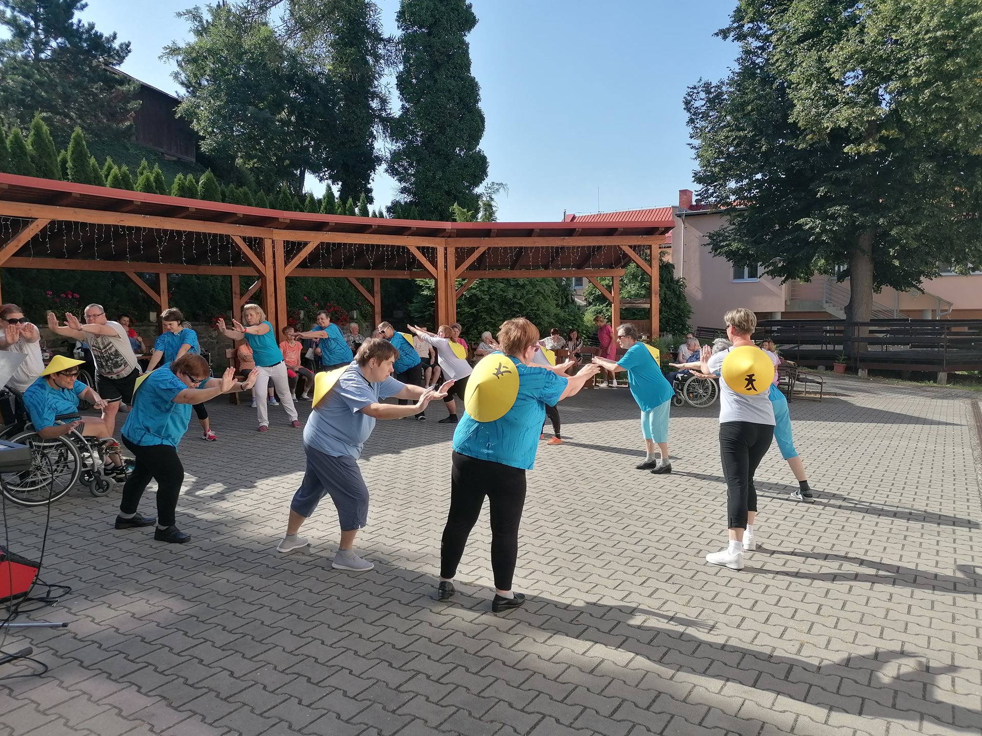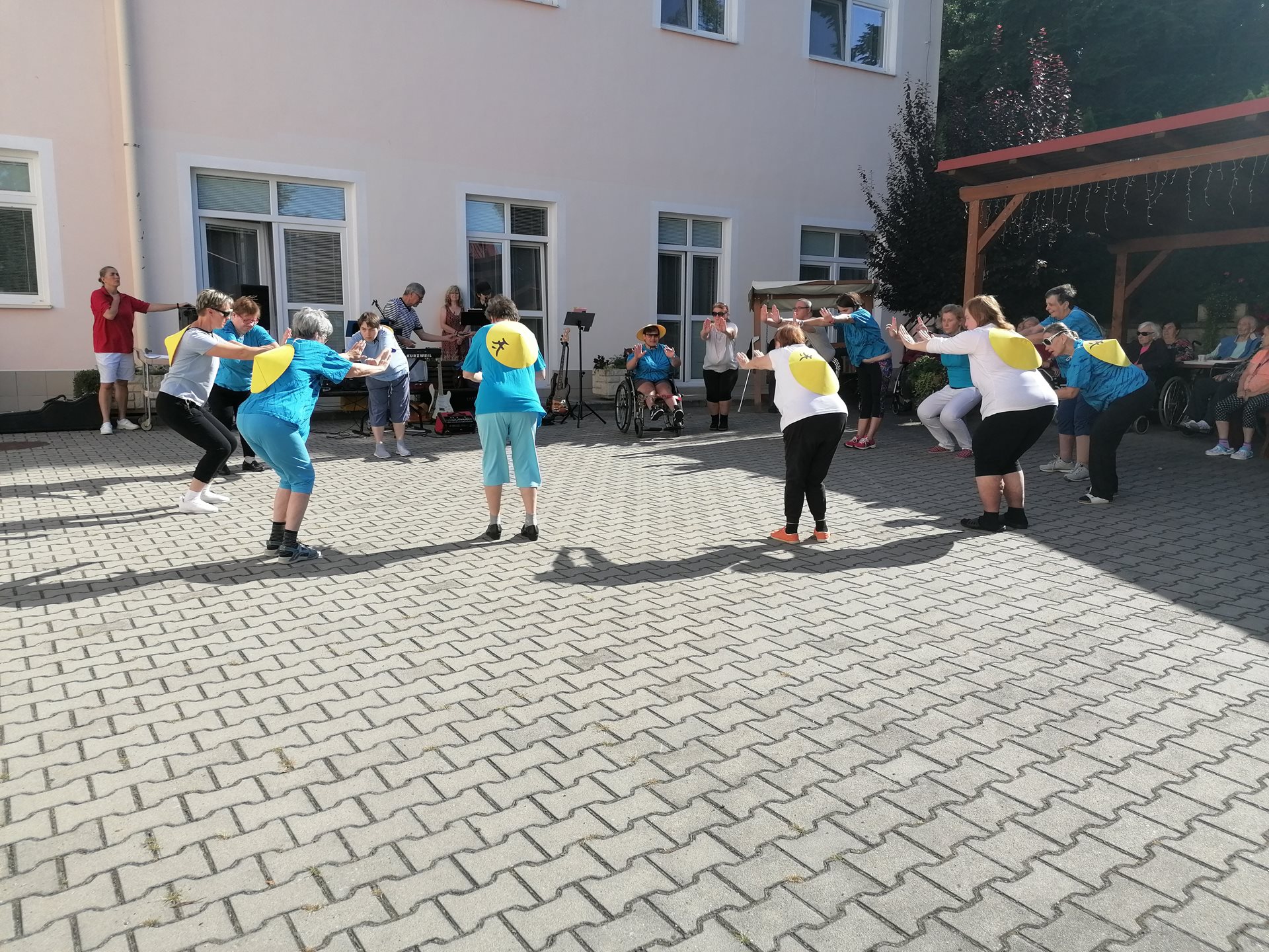 Pod vedením naší fyzioterapeutky předvedli klienti ze startovacích bytů ukázku cvičení Tai-chi. Následně své hudební nástroje a mikrofon vzali do rukou příbuzní jednoho z našich seniorů a zahráli několik oblíbených českých písní. Všem vystupujícím moc děkujeme za příjemné dopoledne.