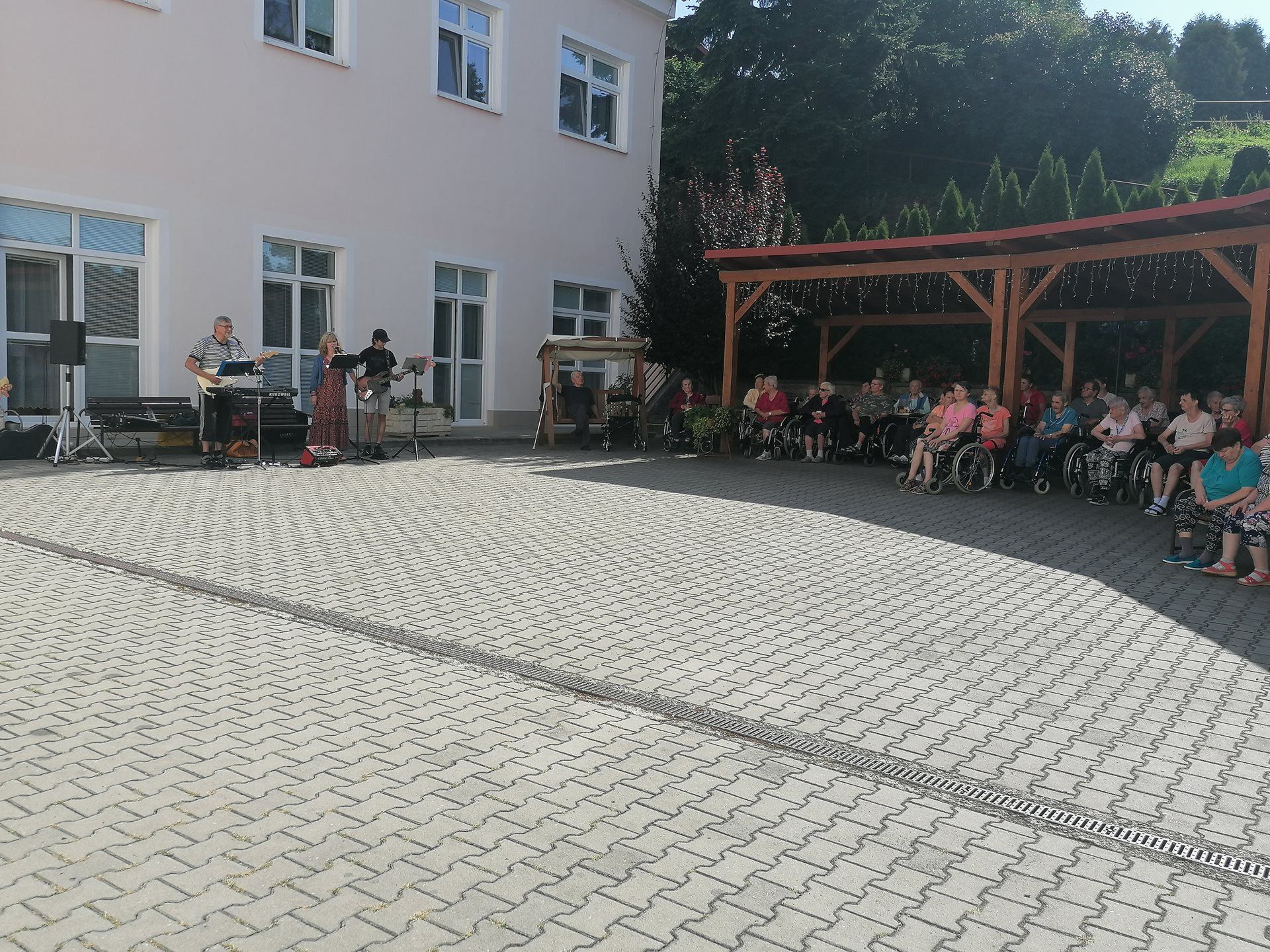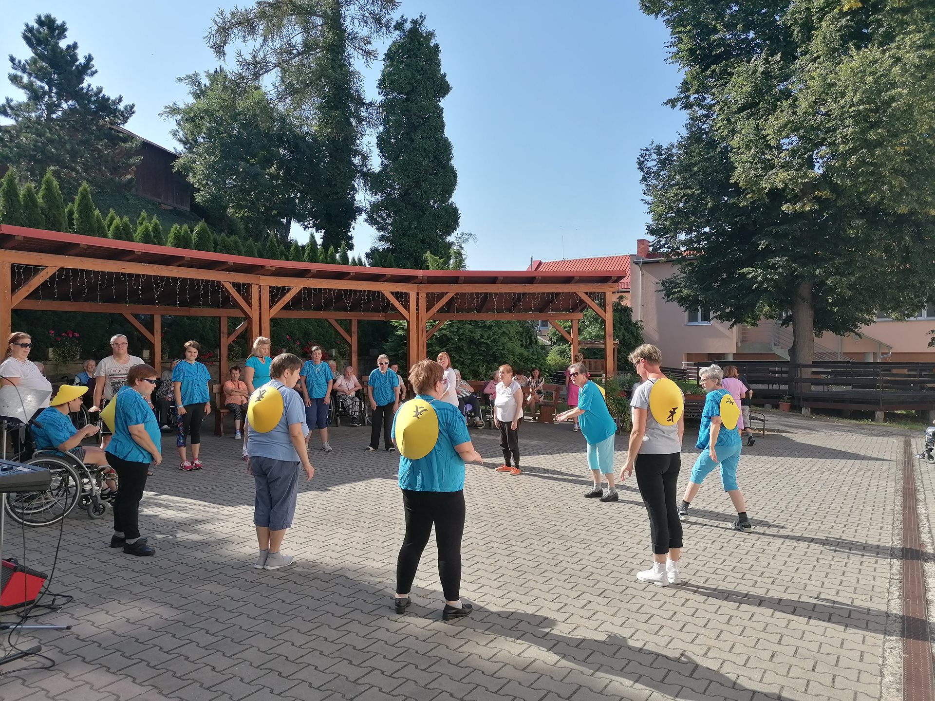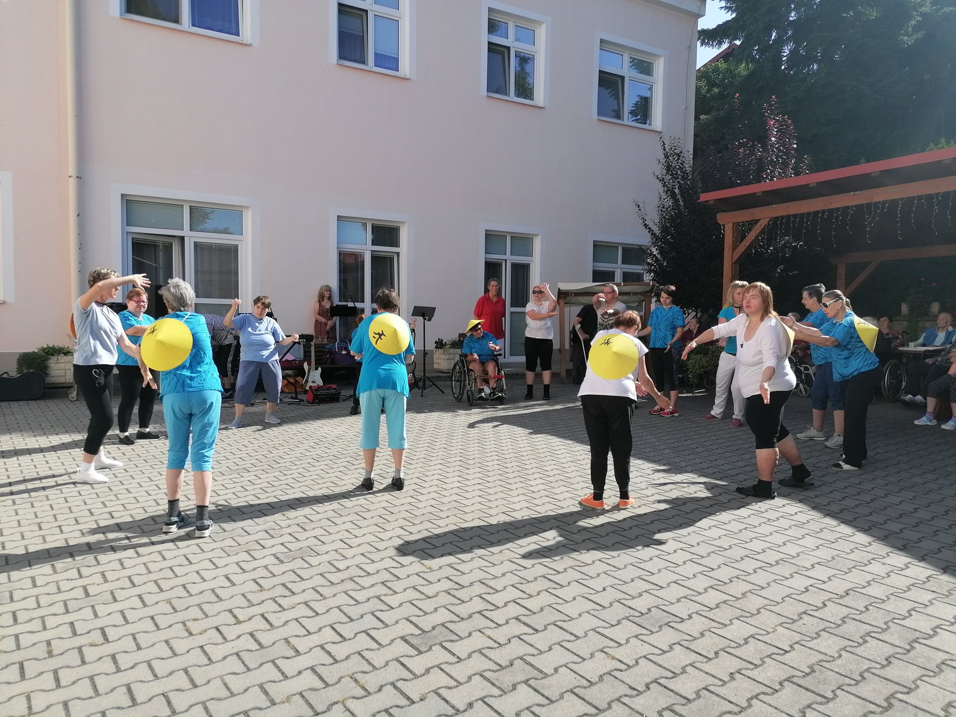 Pod vedením naší fyzioterapeutky předvedli klienti ze startovacích bytů ukázku cvičení Tai-chi. Následně své hudební nástroje a mikrofon vzali do rukou příbuzní jednoho z našich seniorů a zahráli několik oblíbených českých písní. Všem vystupujícím moc děkujeme za příjemné dopoledne.