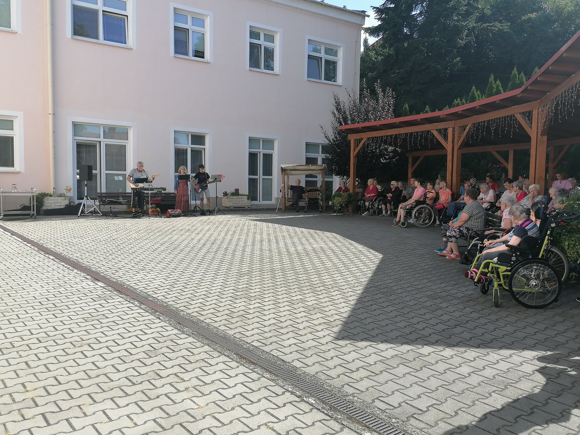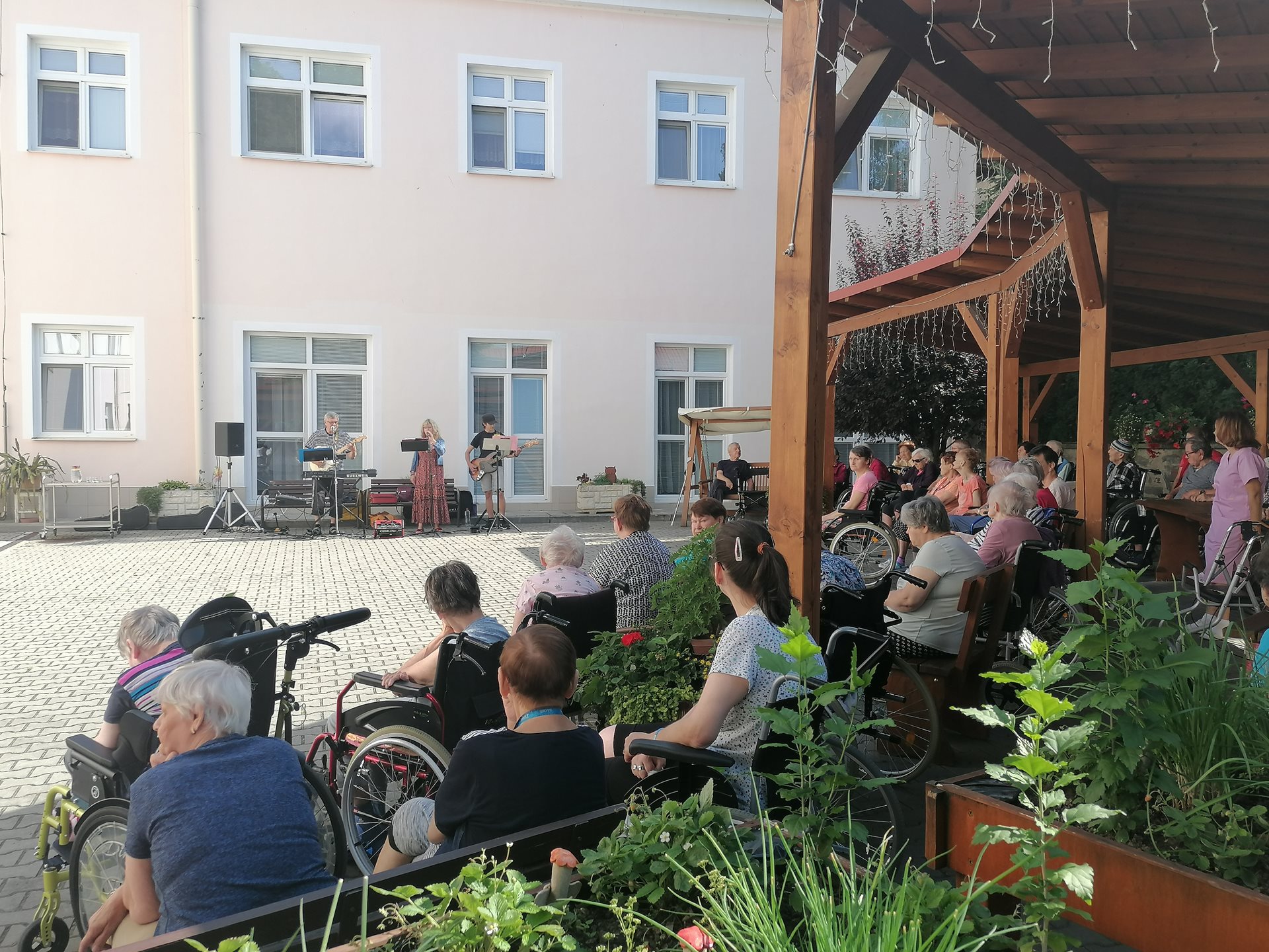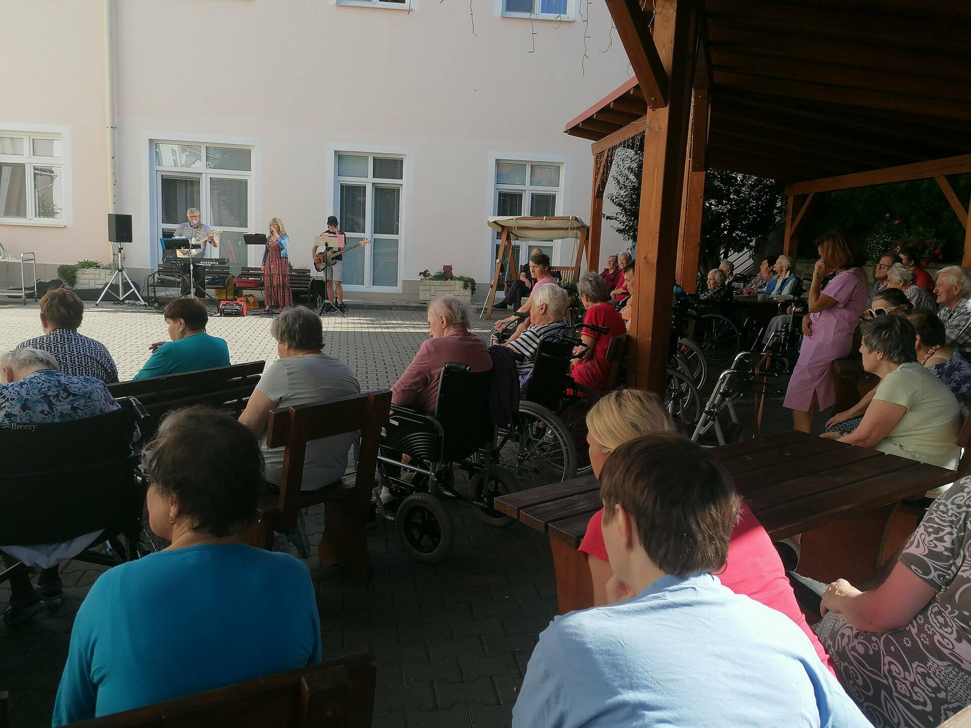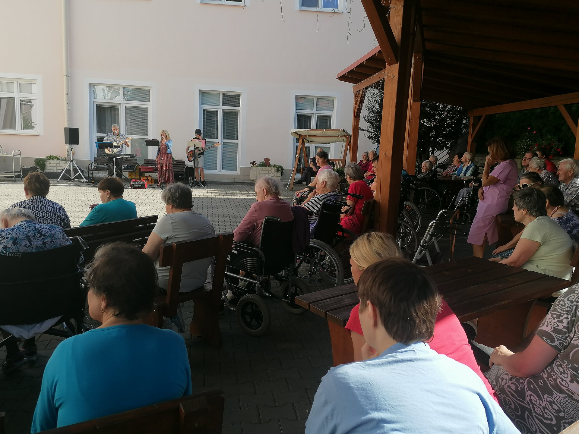 Pod vedením naší fyzioterapeutky předvedli klienti ze startovacích bytů ukázku cvičení Tai-chi. Následně své hudební nástroje a mikrofon vzali do rukou příbuzní jednoho z našich seniorů a zahráli několik oblíbených českých písní. Všem vystupujícím moc děkujeme za příjemné dopoledne.