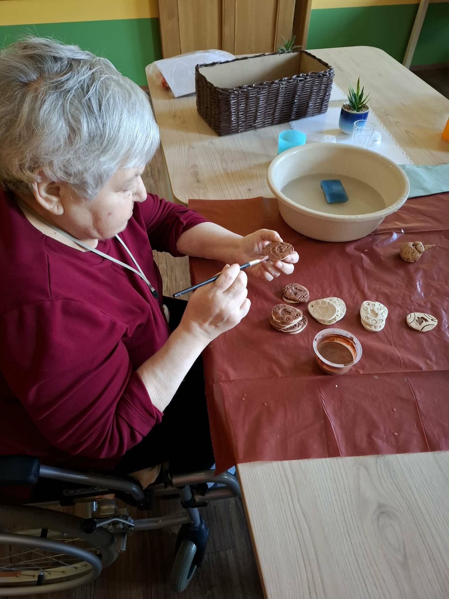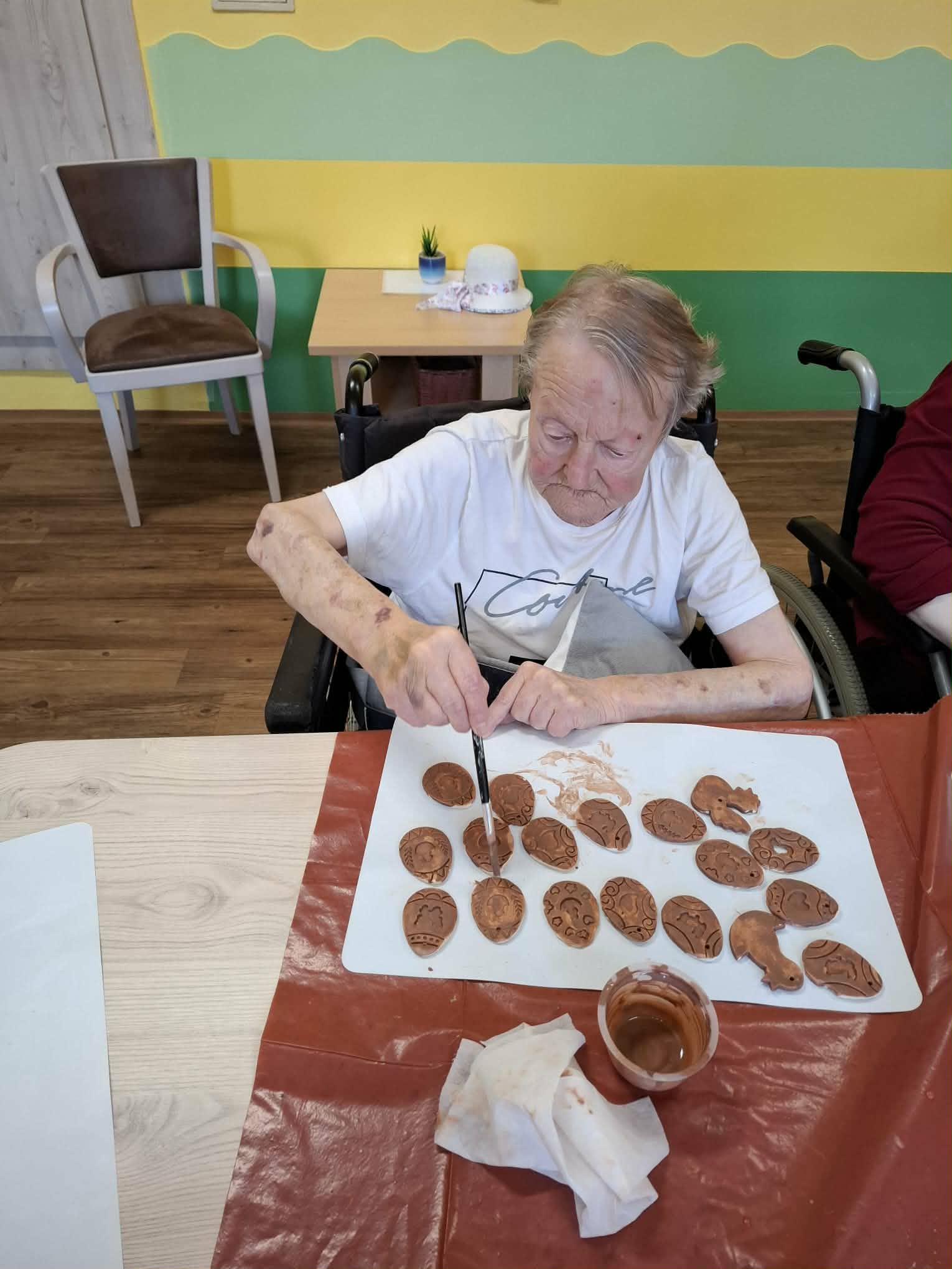 Klienti se aktivně podíleli na tvoření drobných ozdob a aranžování jarních motivů na stolech. Při práci jsme využili barevné papíry, květiny a další dekorativní prvky, které připomínají probouzející se přírodu. Aktivita byla nejen příležitostí k tvoření, ale také k příjemnému povídání a sdílení vzpomínek na jaro z minulých let.