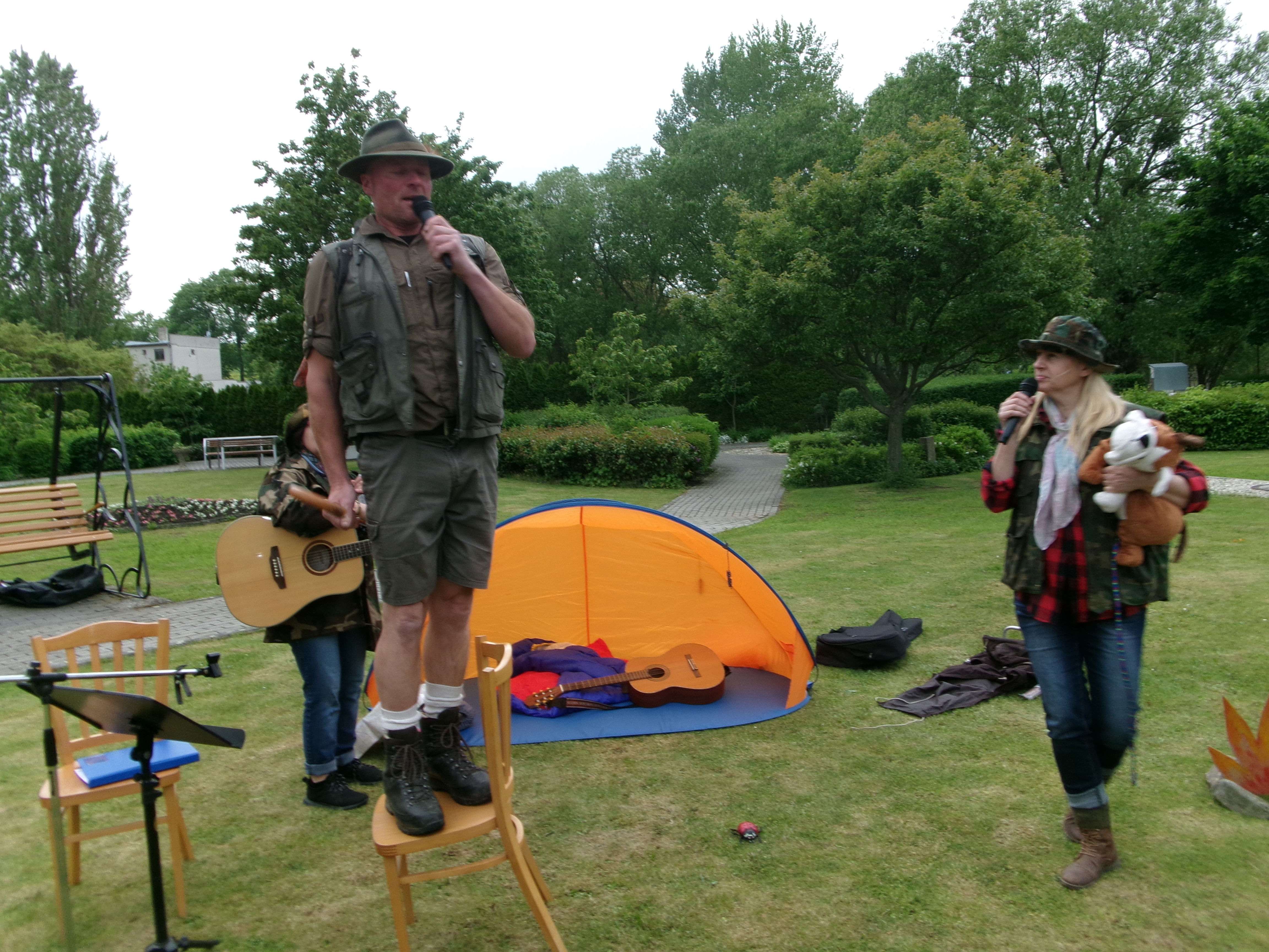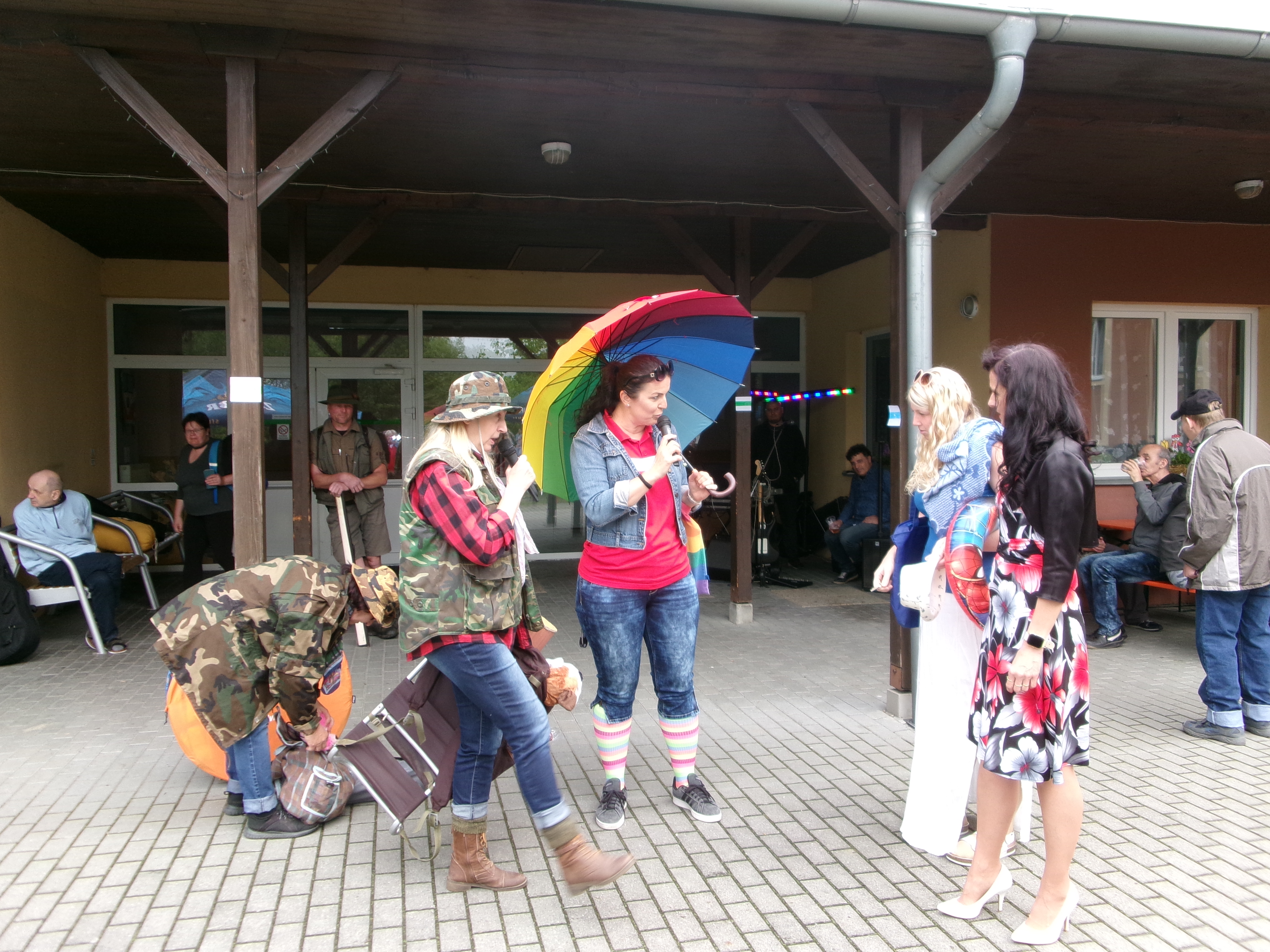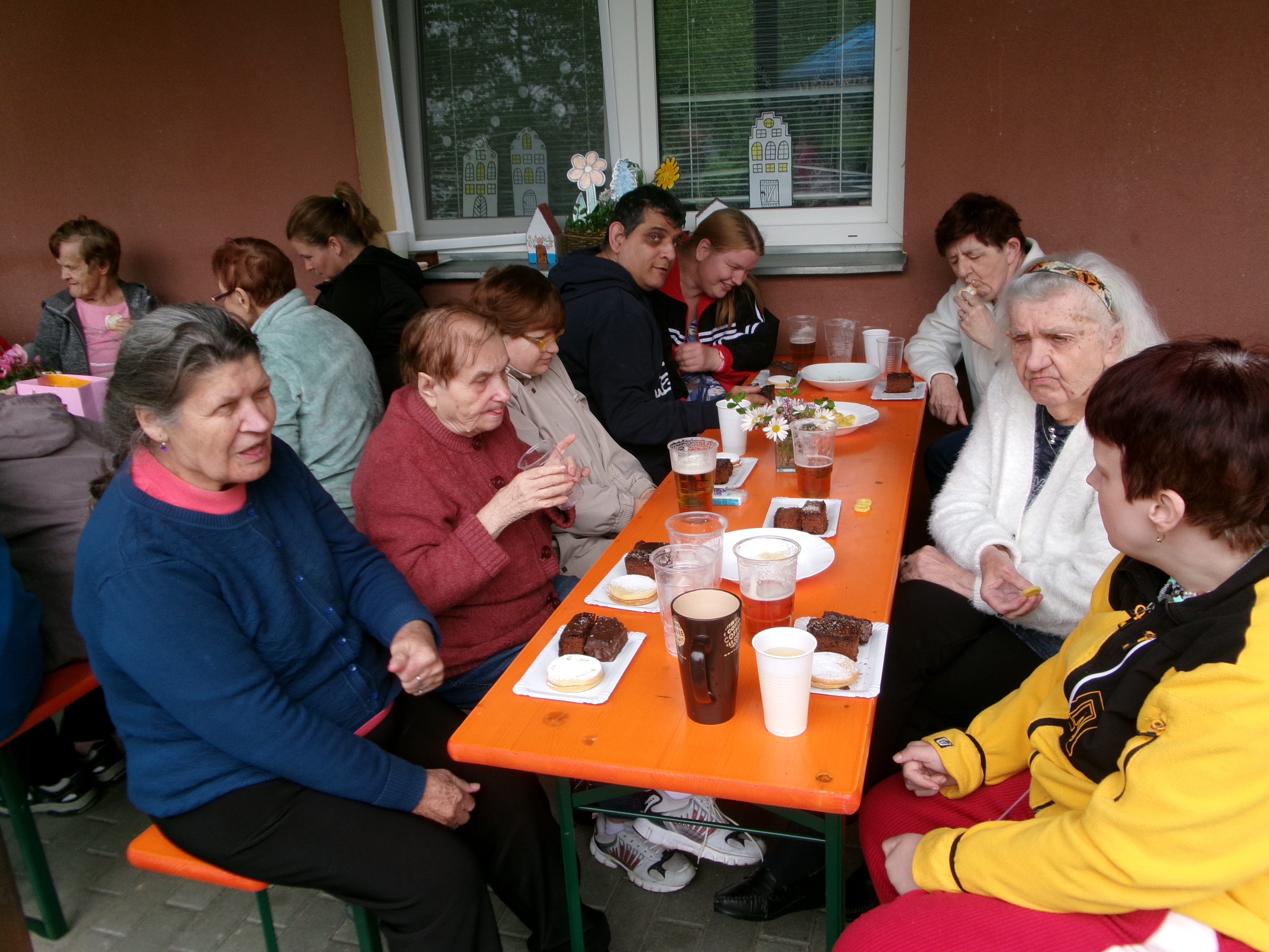 Stejně jako každoročně jsme i letos uspořádali slavnostní kácení májky, která se po dobu měsíce května tyčila na naší zahradě. Tentokrát akce probíhala v duchu "Máme rádi Česko", kdy jsme jako turisté putovali naší zemí. Měli jsme připraveny kulisy, jež napovídaly, které místo právě navštěvujeme a zajímavost z této oblasti. Na navštívených místech nás vždy provázela písnička, která o tomto místě pojednávala. Pozvali jsme si naše kamarády a známé z jiných sociálních služeb, kteří se díky známým písničkám o naší zemi mohli do programu aktivně zapojit. Nakonec jsme ve spolupráci s dřevohostickým kastelánem pokáceli májku. Po celou dobu nás provázelo duo Balin Band a bylo k dispozici občerstvení v podobě opékaného kabanosu, cukrovinek připravených v naší kuchyni a nápojů. Užili jsme si to a už se těšíme na příště.