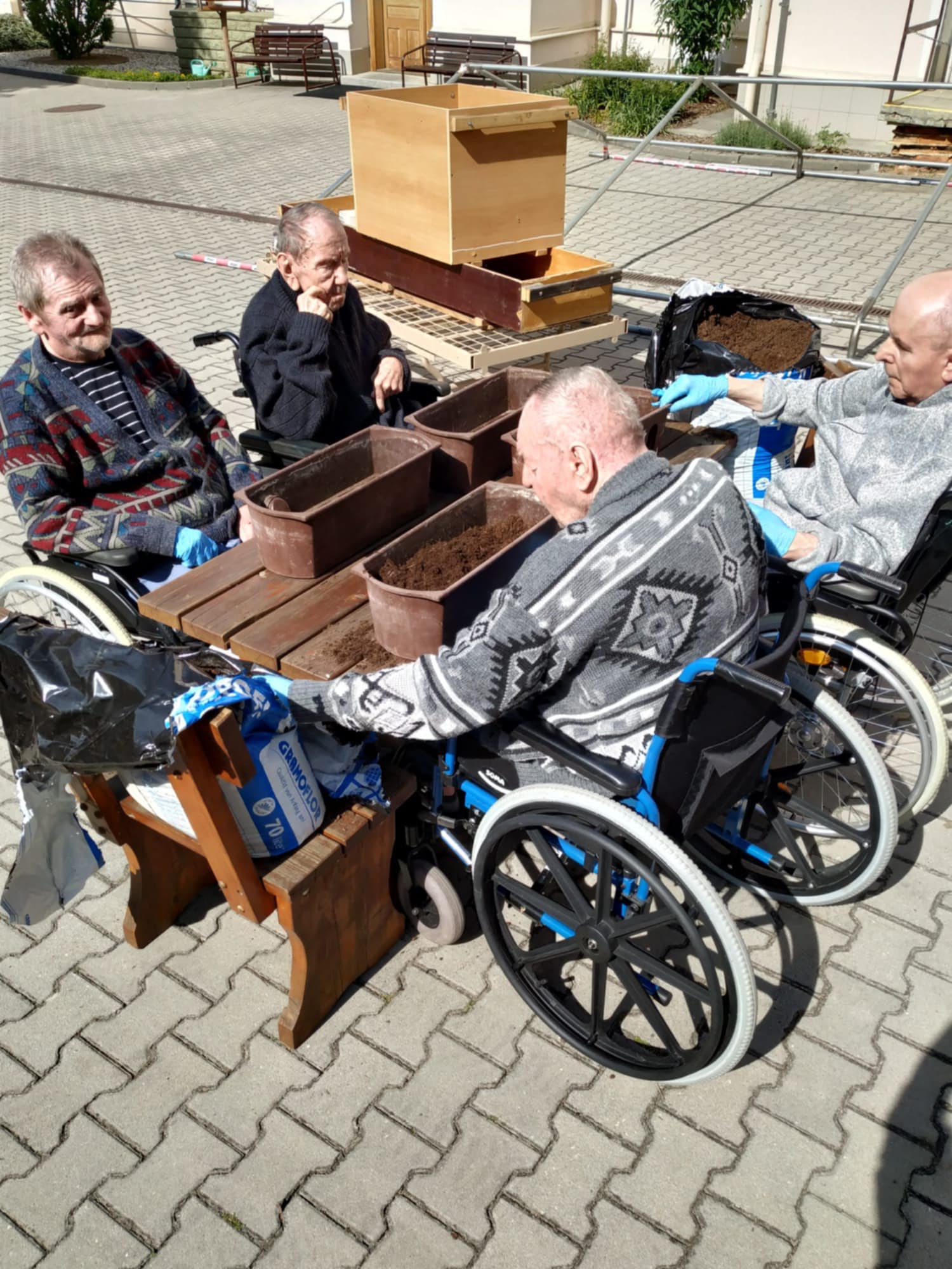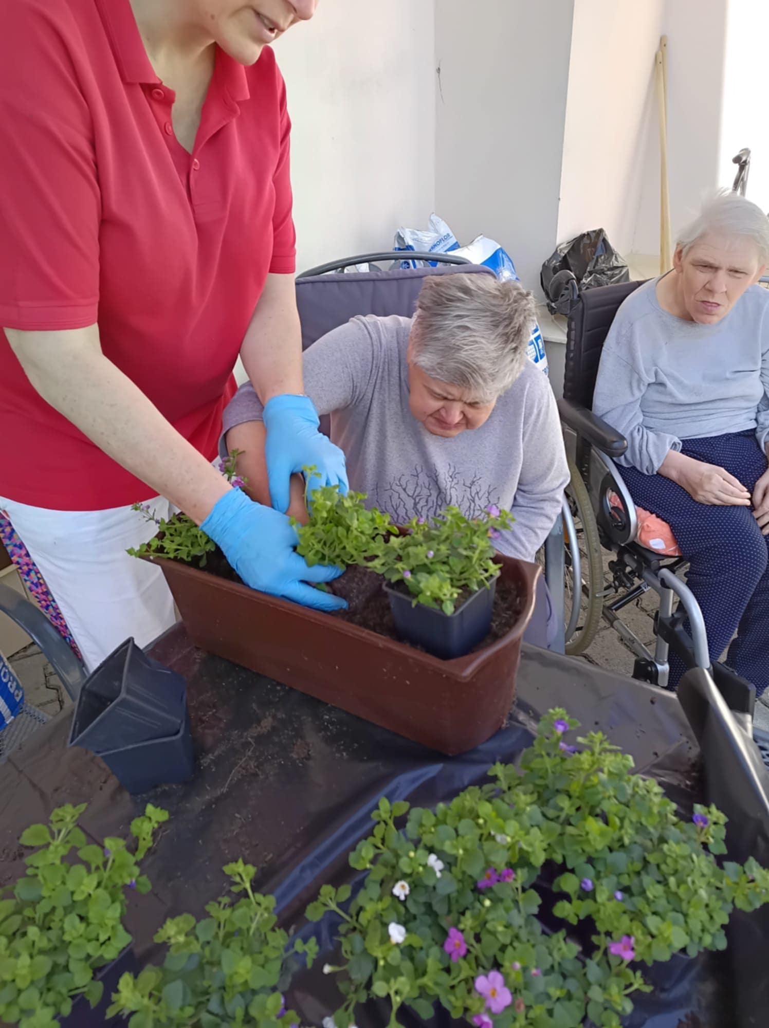 Klienti si užili slunečný den na čerstvém vzduchu a s nadšením se zapojili do sázení květin do truhlíků. Práce s hlínou a květinami podpořila nejen jemnou motoriku, ale také relaxaci a společné sdílení radosti z tvoření. Nově osázené truhlíky nyní zdobí náš venkovní prostor a připomínají příjemně strávené dopoledne.