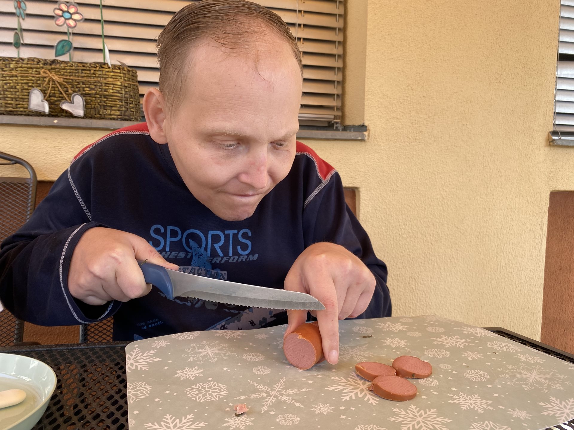 V mnoha rodinách je oblíbenou kratochvílí uzení. Napadlo nás, že bychom si mohli pochutnat na uzených produktech a jelikož udírnu nemáme k dispozici, tyto dobroty jsme si nakoupili. Zvollili jsme si nejrůznější klobásky. Některé jsme si společně uvařili, všechny jsme nakrájeli na kolečka a venku na sluníčku jsme si udělali ochutnávku. Povídali jsme si o jejich výrobě, snažili se uhodnout, jaké koření v které převažuje, hodnotili, která klobáska je nejchutnější. Také jsme shlédli instruktážní video o tom, jaké ingredience a jaký postup se při výrobě volí. Klobáskový den se nám hodně líbil a těšíme se na další takový.