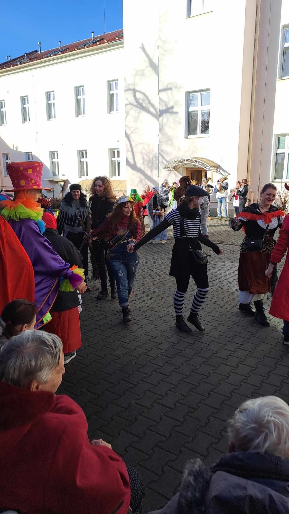 Na letošní masopust jsme se snažili připravit co nejlépe. Každé oddělení si vzalo na starost nějaké pohoštění. Vrcholem byla příprava moravských koláčů. Poctivá práce se vyplatila, koláče byly jak malované a všem chutnaly. Masopustní průvod z obce jsme přivítali jak se patří a přidali jsme se k všeobecnému veselí. Počasí nám neobyčejně přálo a dobrá nálada je vidět i na fotkách.