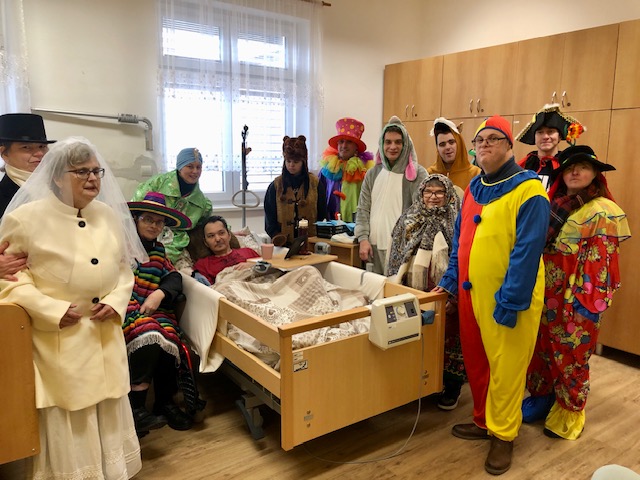 Letošní masopust připadl na 14. února. Jako každý rok se před obecním úřadem sešly maškary, aby s povolením starostky začaly svoji obchůzku po vesnici. Centrum Dominika bylo hned první zastávkou masopustního průvodu. Počasí nám přálo a bylo to znát i na velké účasti našich klientů, kteří se s nadšením přidali k masopustnímu veselí v nejrůznějším přestrojení. Svou radost pak předávali dál i uvnitř zařízení. Nechybělo ani masopustní pohoštění v podobě tradičních koblih a různých slaných dobrot.