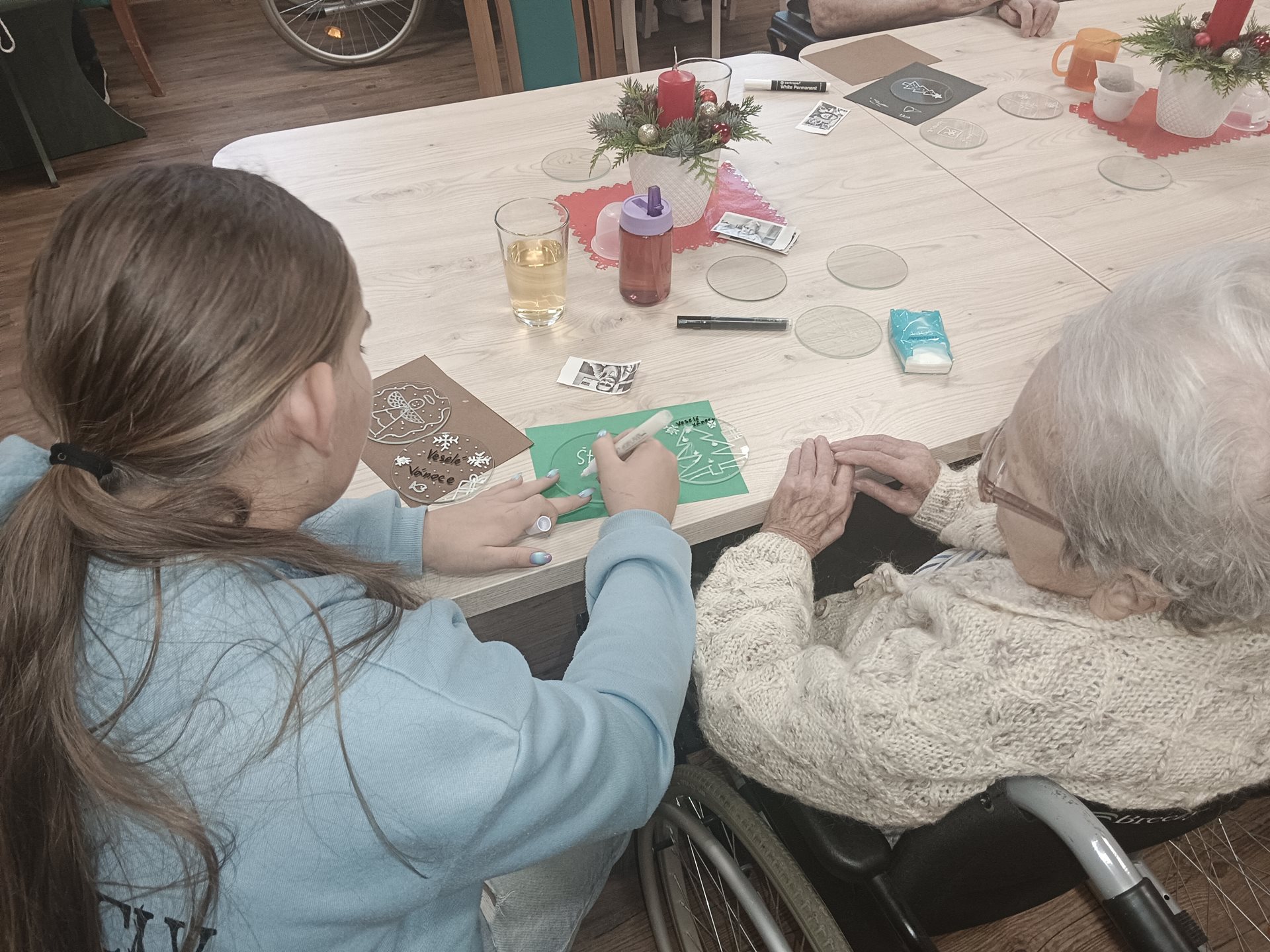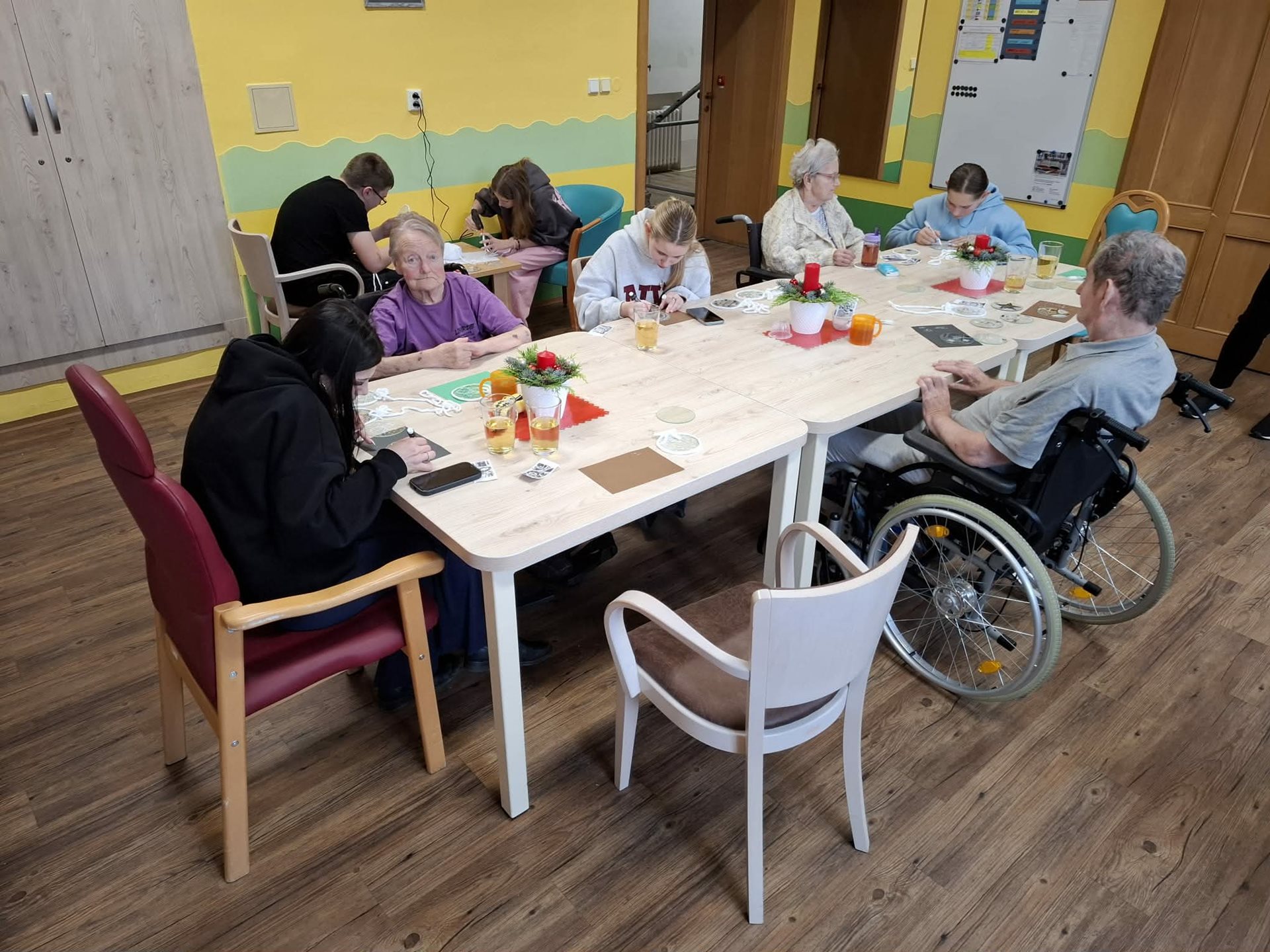 Setkání bylo plné sdílení, povídání i vzájemné pomoci – děti přinesly radost, energii a nápady, senioři zase trpělivost, zkušenosti a klid. Společná tvorba podpořila jemnou motoriku, kreativitu i sociální kontakt, a především vytvořila velmi příjemnou sváteční atmosféru.