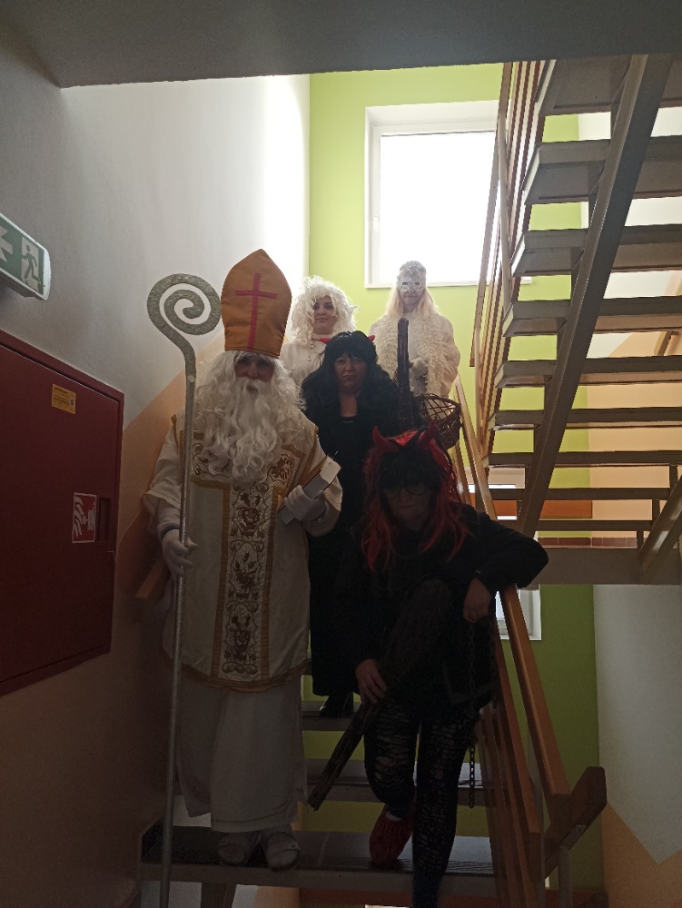 Svátek svatého Mikuláše se slaví 5. prosince, v předvečer jeho svátku v kalendáři. U nás Mikuláš se svojí družinou, čerty a anděly, začal procházet domovem už po obědě, aby všechny obešel s nadílkou. Když se pak setmělo, rozsvítil nám za zpěvů koled náš vánoční stromeček. Pochutnal si s námi na výborném horkém punči, popovídal s námi o našich přáních a poslechl si spoustu písniček a básniček. Rozloučil se s námi s přáním pevného zdraví a štěstí pro všechny do nového roku a my se na něj a jeho pomocníky těšíme zase přístí rok