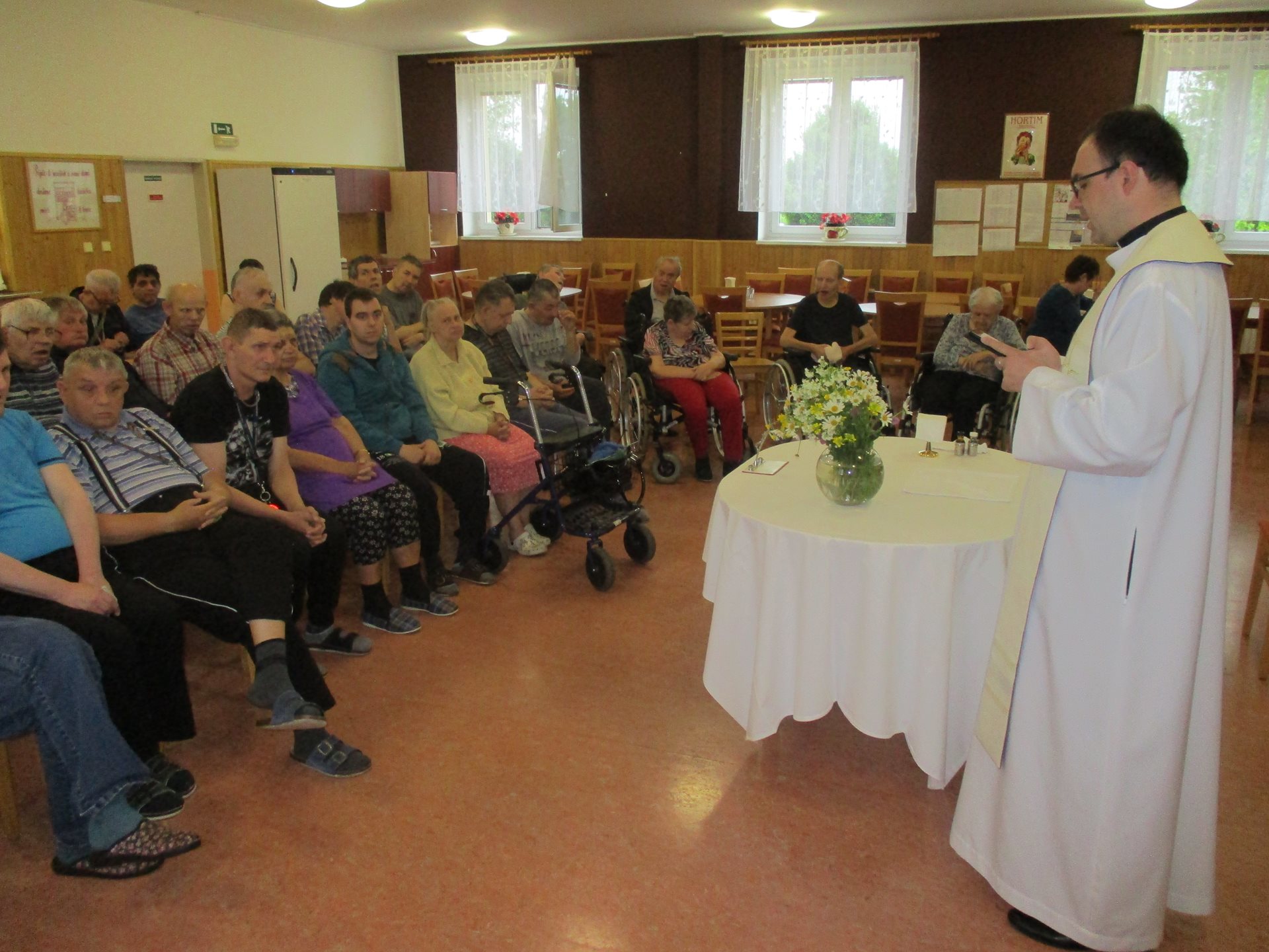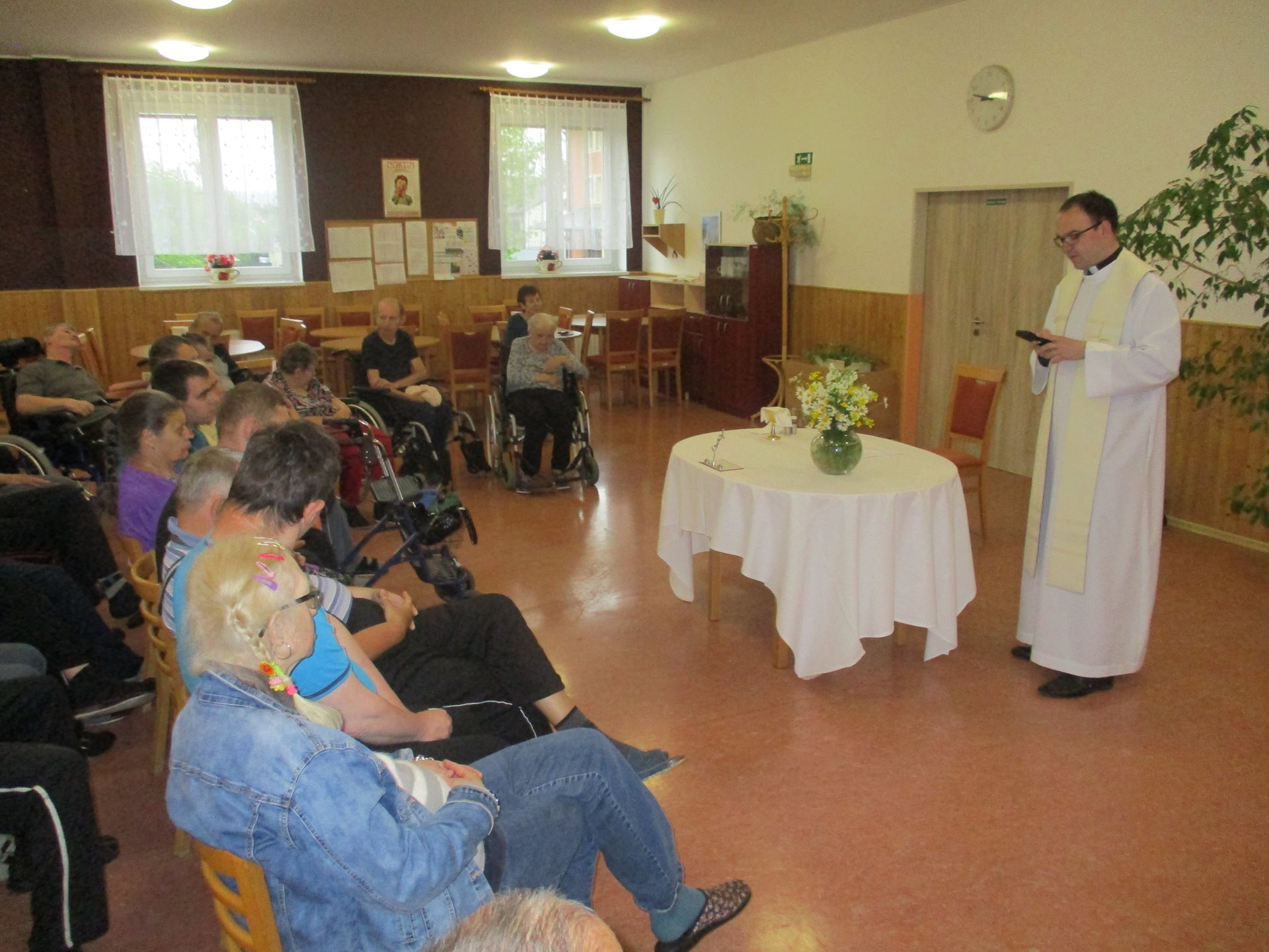 Dochází k nám pan farář a máme tak možnost zúčastnit se mše nejen v kostele, ale i v našem domově.