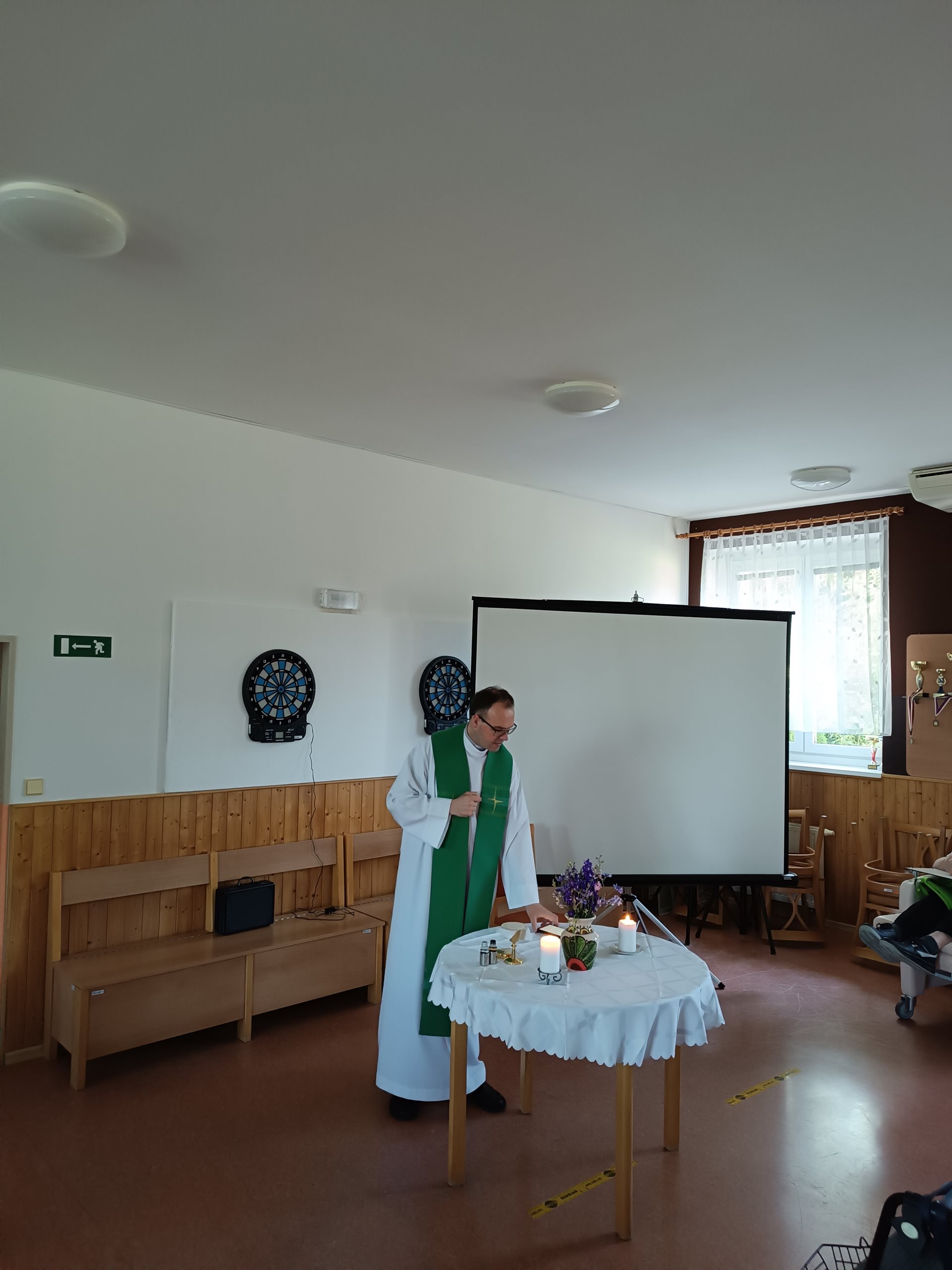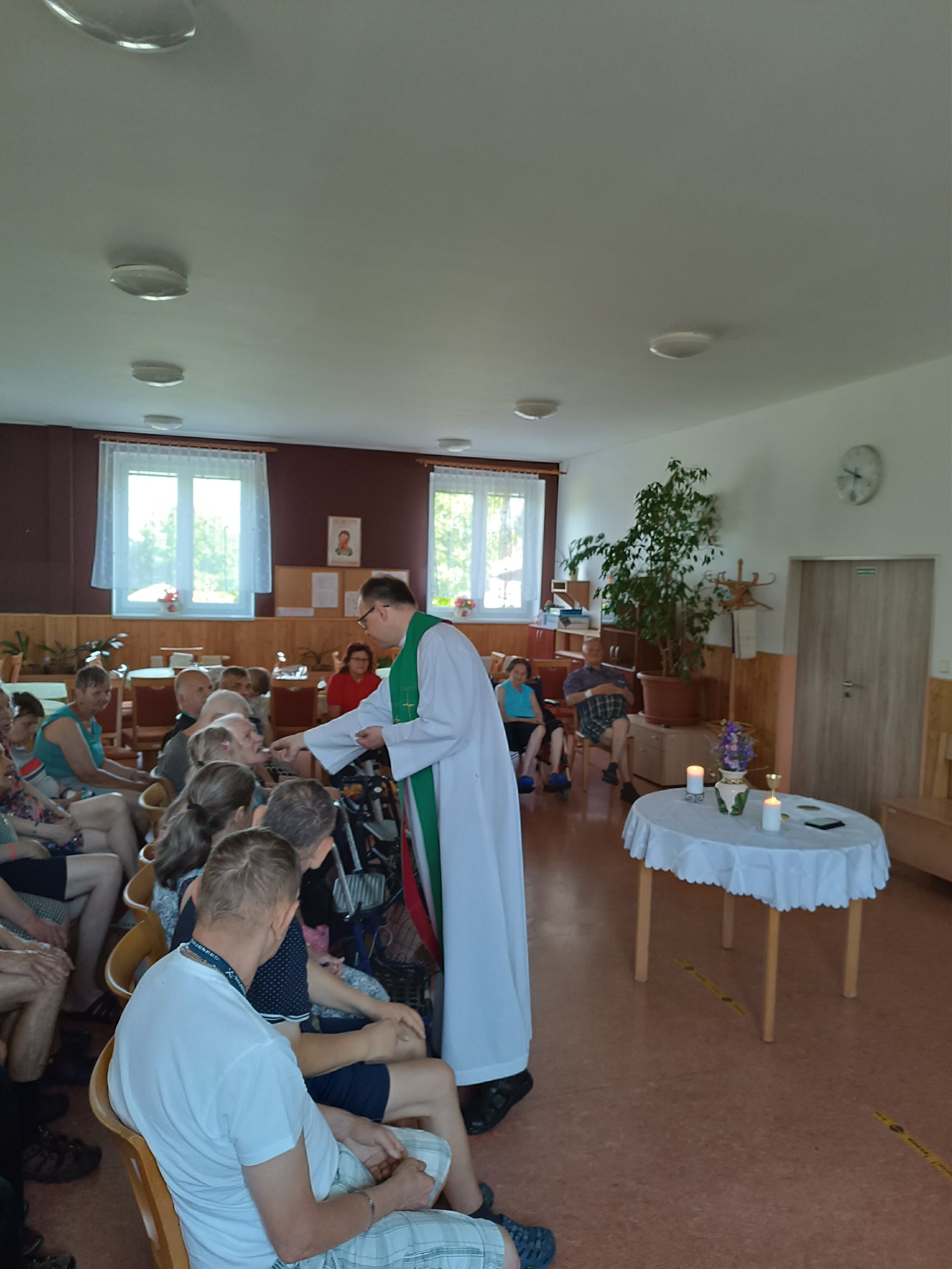 Jako každý měsíc nás navštívil místní pan farář, otec Zdeněk Mlčoch. Některým z nás udělil svátost smíření a poté jsme se účastnili mše svaté, která byla sloužena za všechny klienty a zaměstnance. Otec Zdeněk nám na závěr požehnal a rozloučil se s námi, protože jeho další cesta vede do Vsetína. Děkujeme za vše a snad se ještě setkáme.