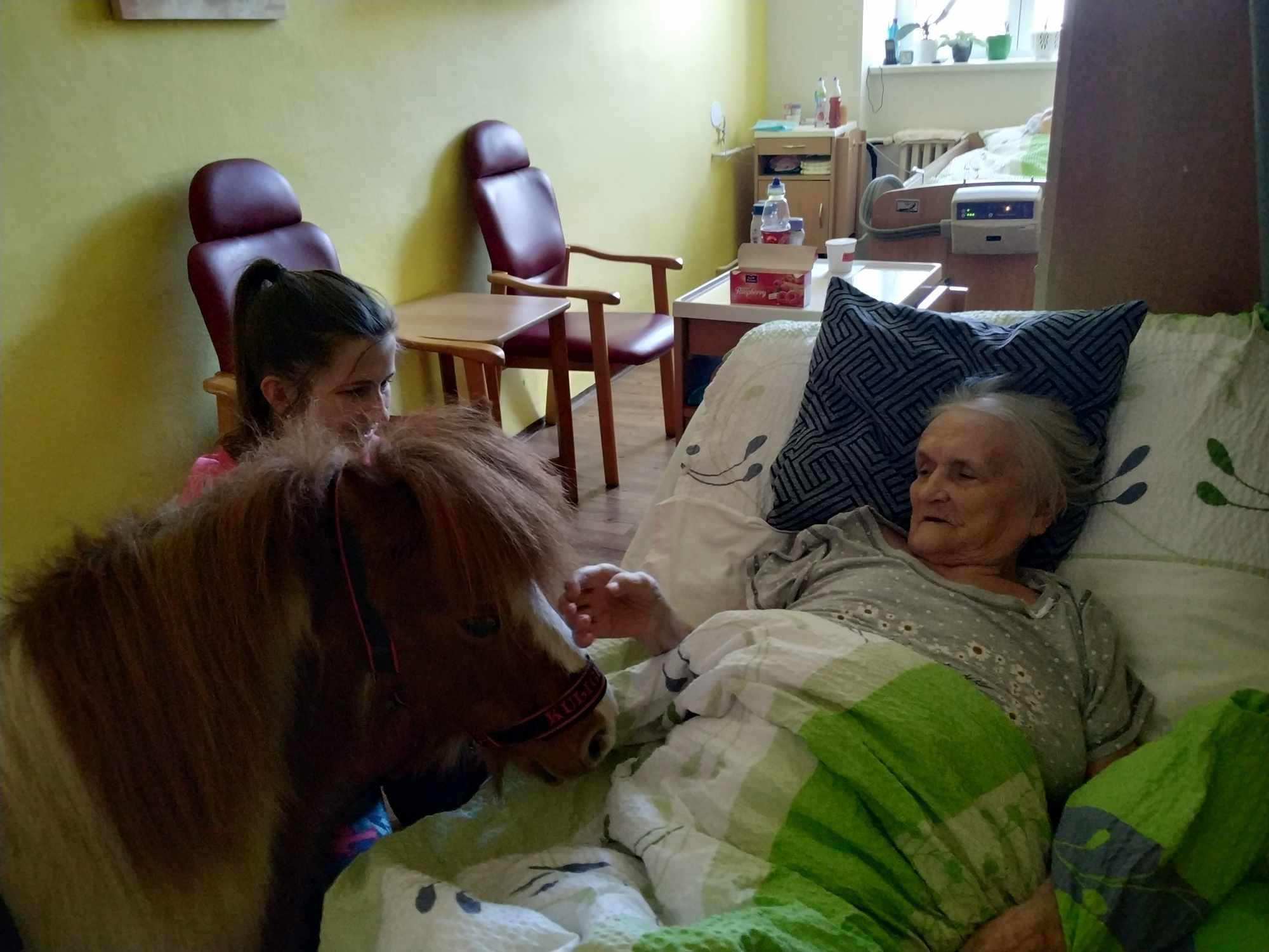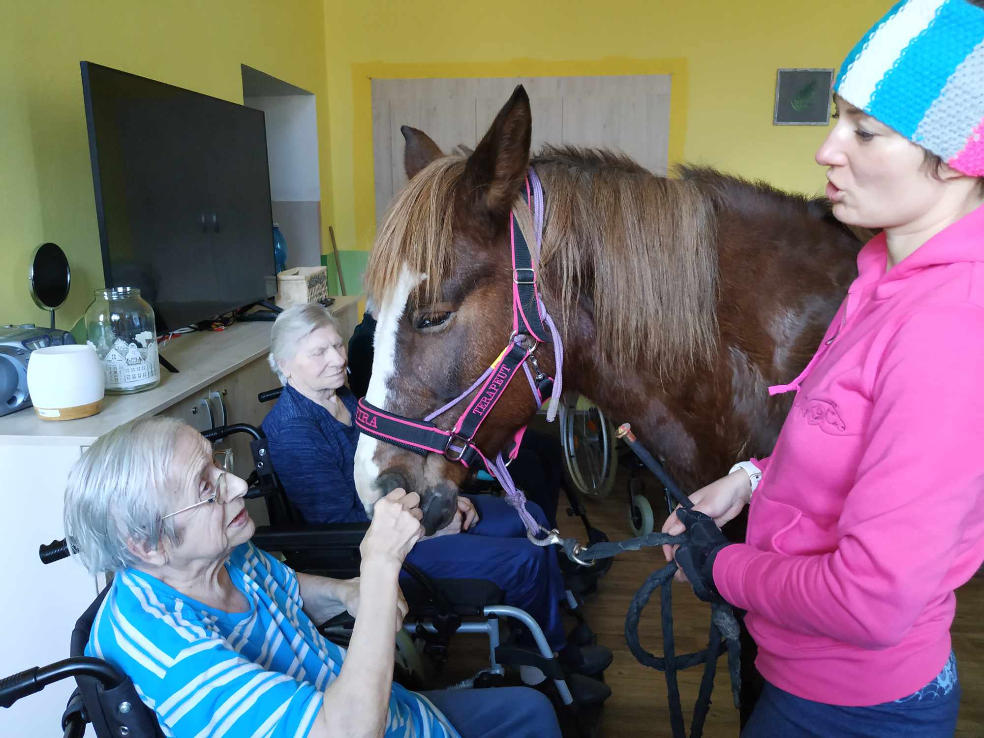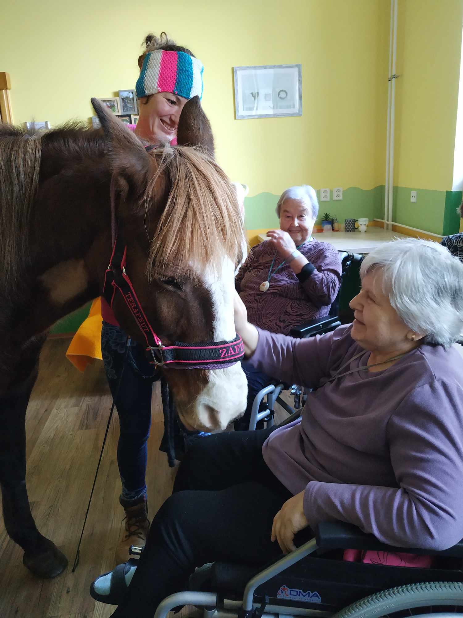 Naši čtyřnozí přátelé kobylka Zafira a poník Kulička opět zavítali do Centra Dominika Kokory a vnesli radost do srdcí našich klientů.