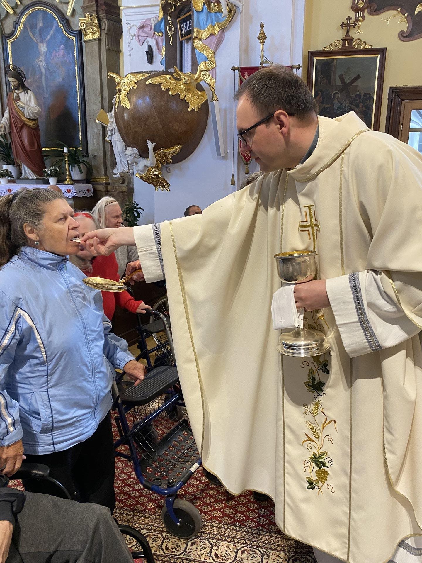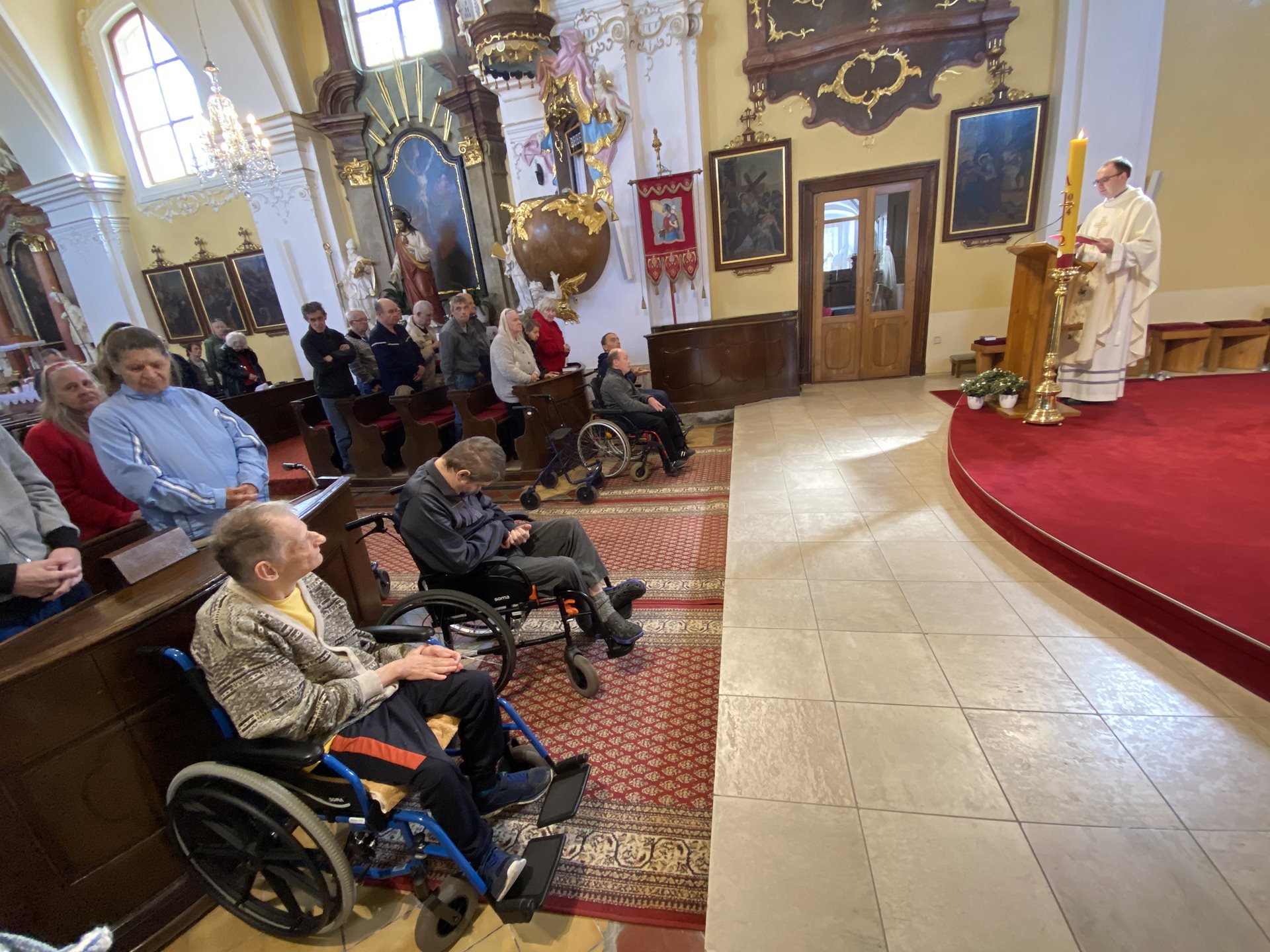 Dnes jsme v doprovodu personálu zavítali do místního kostela sv. Havla, kde nám pan farář odsloužil mši svatou. Po mši nám pak pověděl spoustu zajímavostí z historie o místním kostele, zvonici, o sochách, obrazech a bočních oltářích.