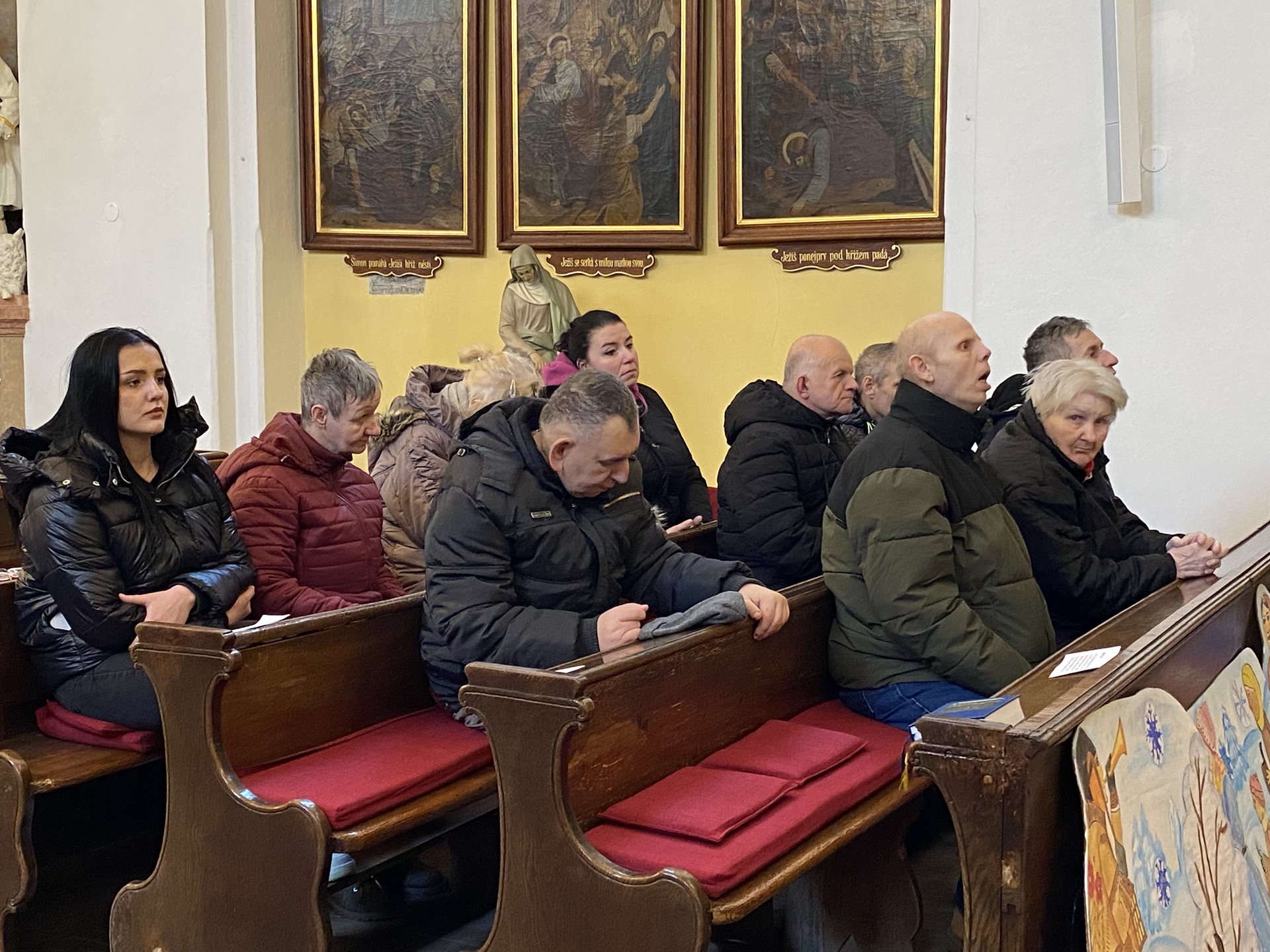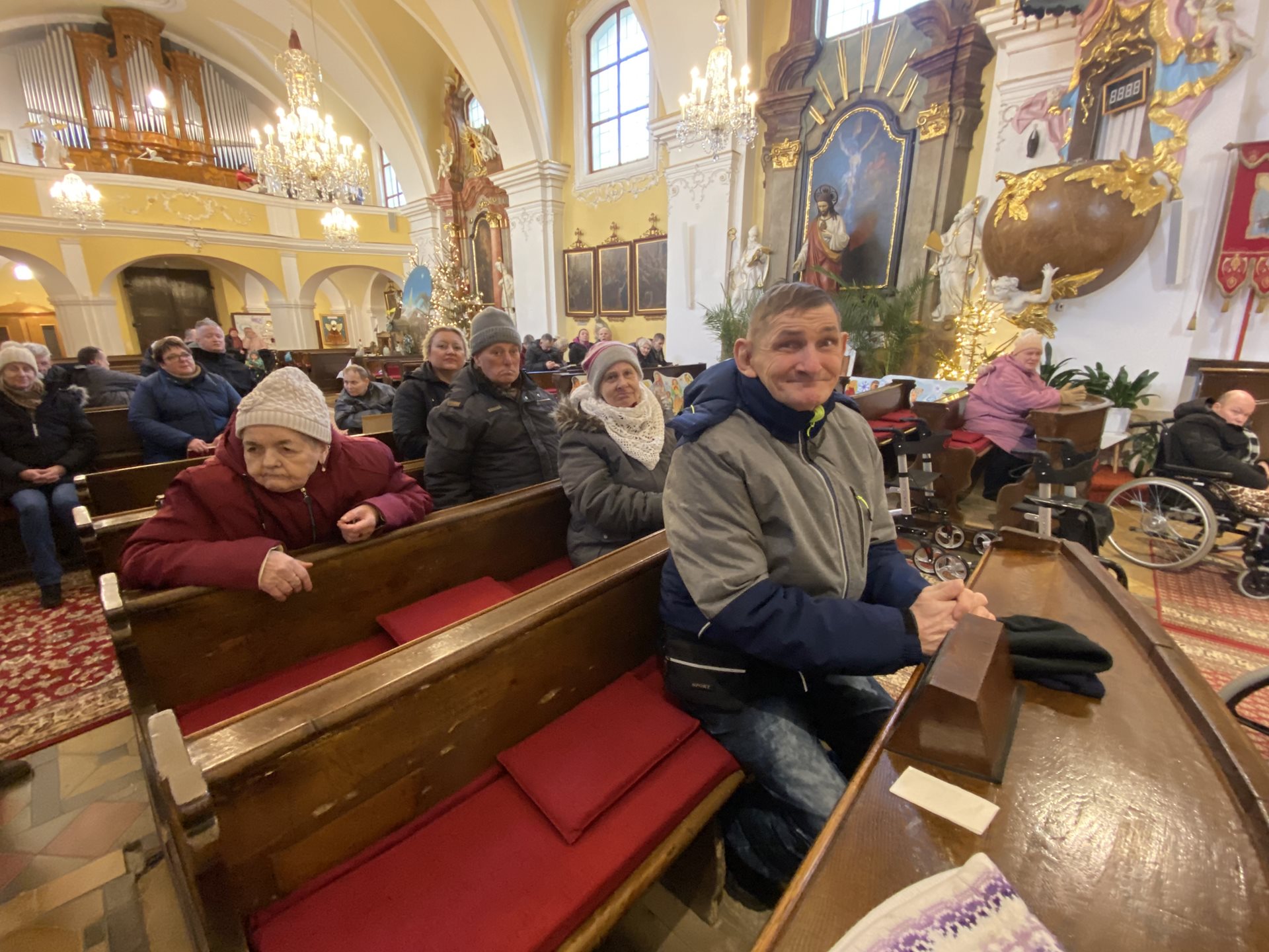 Ještě před skončením roku jsme navštívili dřevohostický kostel. Kdo nemohl jít pěšky, mohl se přepravit autem a zúčastnili jsme se v opravdu hojném počtu. Pan farář odsloužil mši svatou, kterou svým zpěvem obohatila dřevohostická schola za doprovodu kytary a příčné flétny. Na závěr jsme si všichni společně zazpívali vánoční koledy při zvuku kostelních varhan. Bylo to krásné setkání a moc jsme si ho užili. Vraceli jsme se do domova plni dojmů a pokoje v našich nitrech.