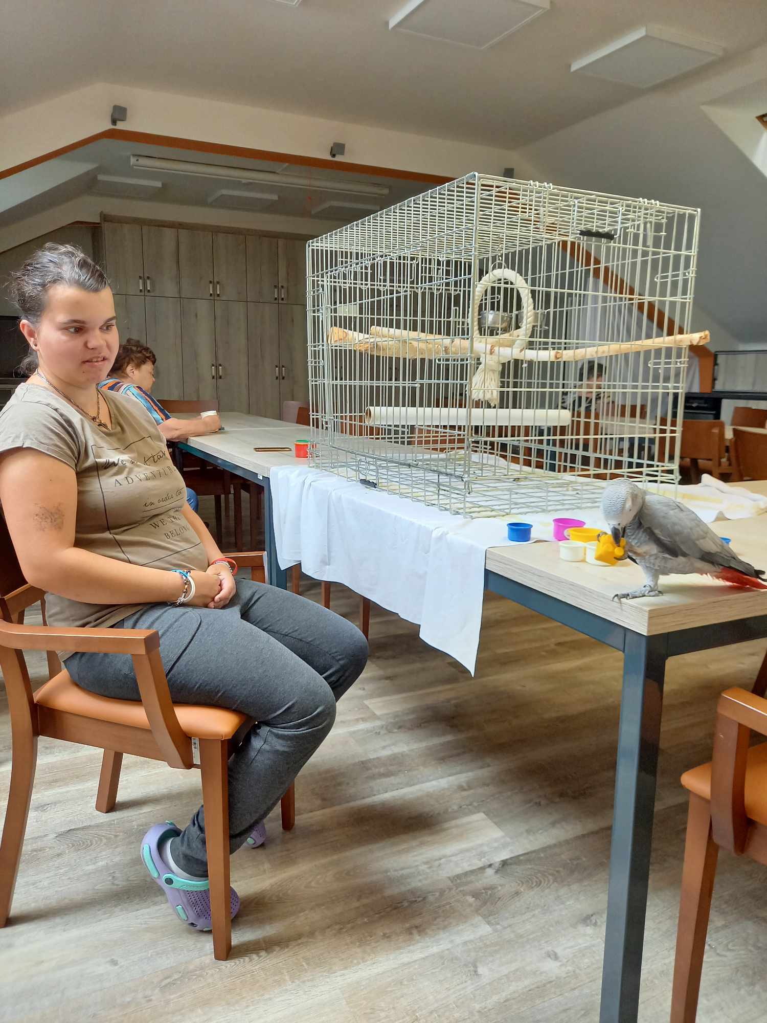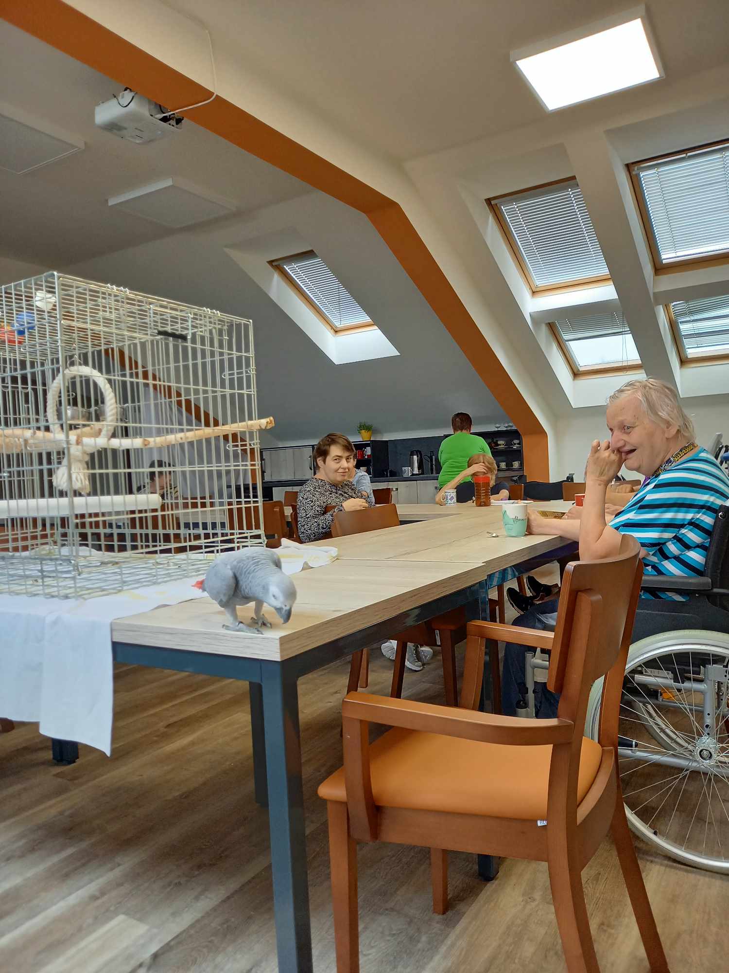 Dnes dělal našim klientům společnost papoušek Adélka. Už jen pozorování tohoto zvídavého ptáka vyvolalo mnoho úsměvů na jejich tvářích.