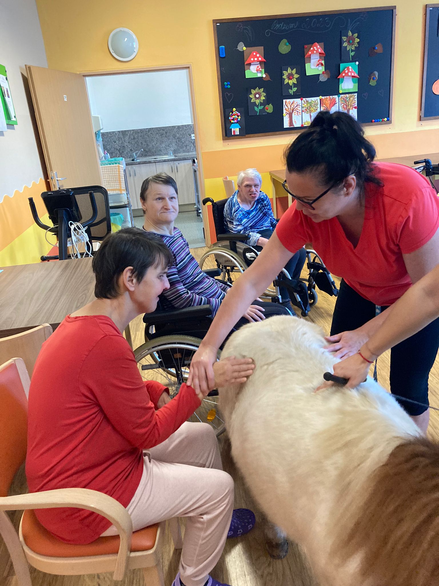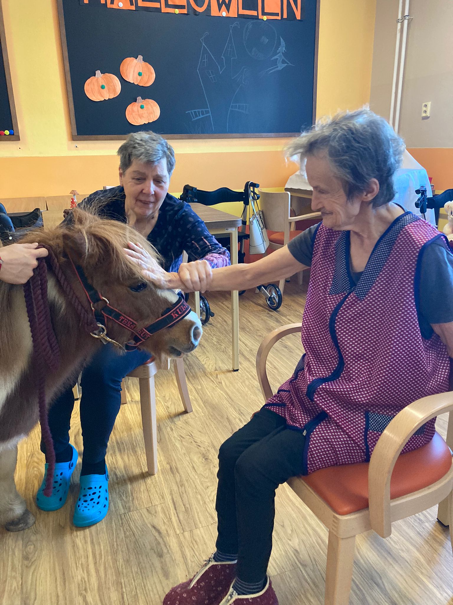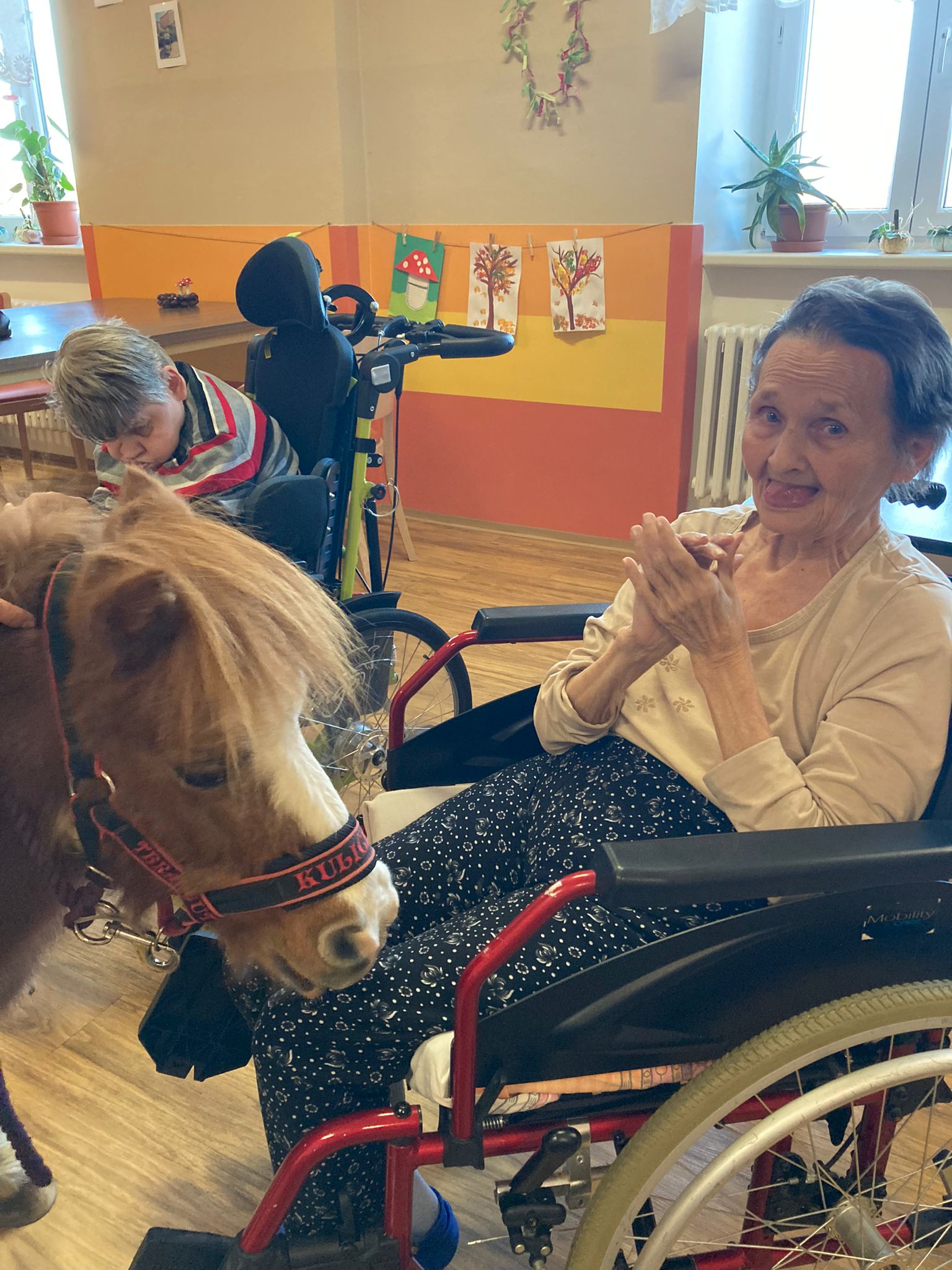 Dnes naše klienty domova se zdravotním postižením potěšila návštěva poníka Kuličky. Už jen pouhé pohlazení po hřbetu vyvolalo u všech úsměv na rtech a radost v očích.