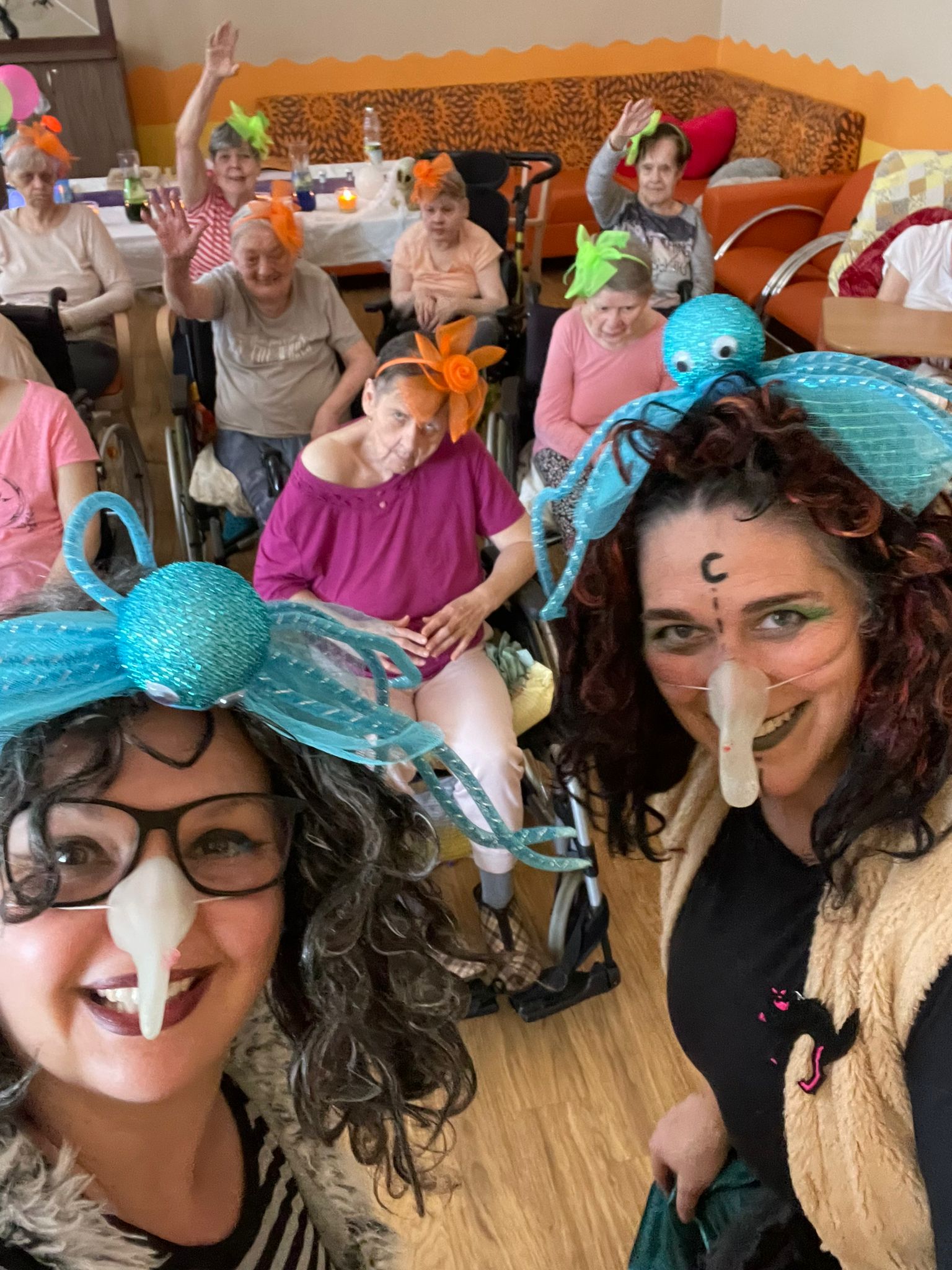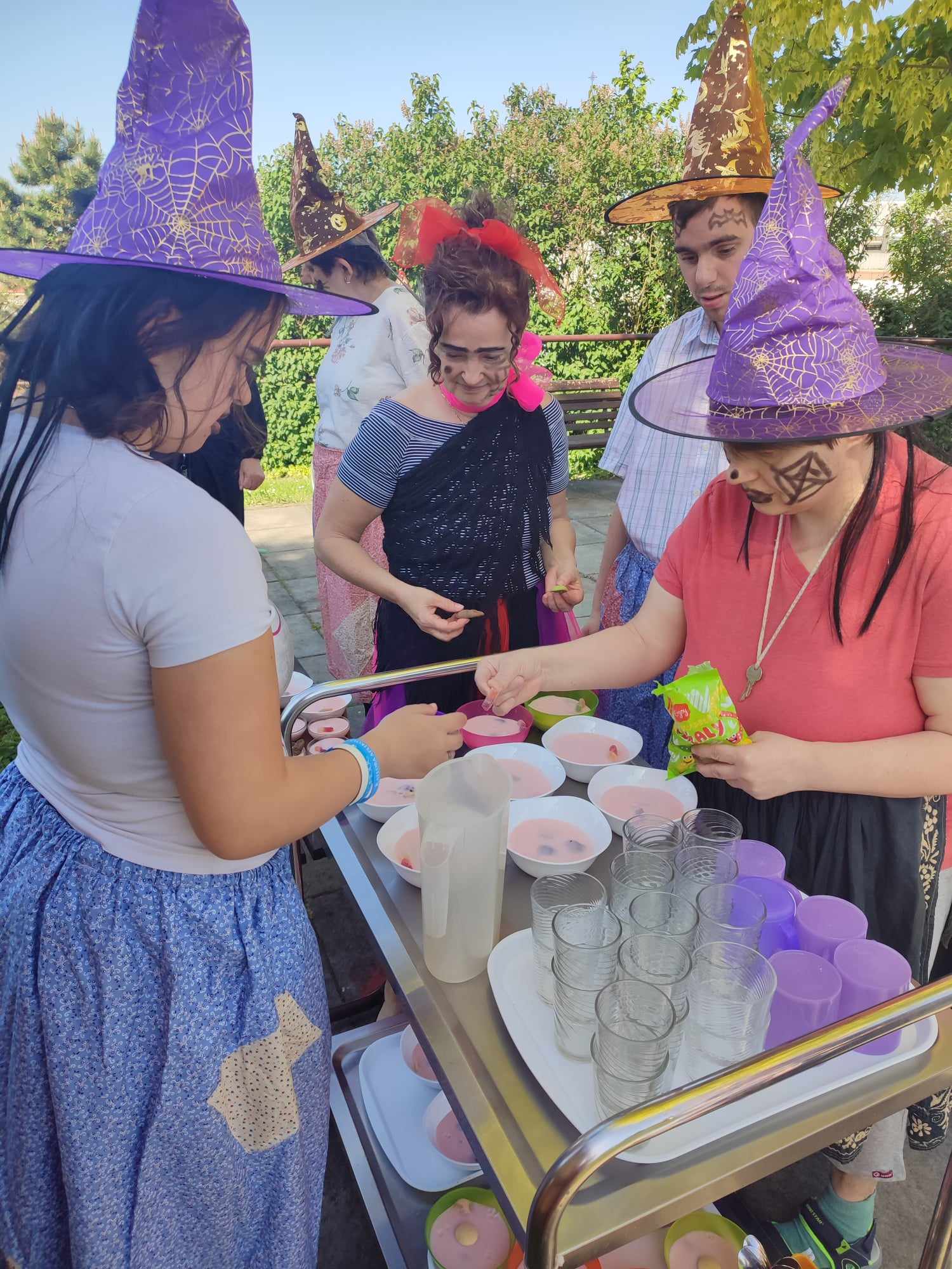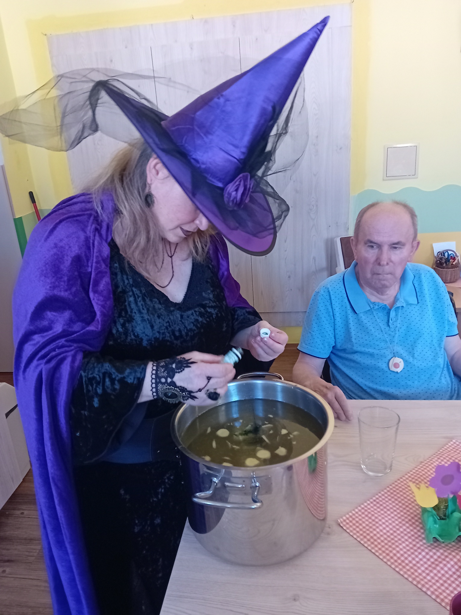V Centru Dominika Kokory se stalo již dlouholetou tradicí čarodějnické rejdění inspirované svátkem pálení čarodějnic, které v našem zařízení vypuklo dne 30. dubna a zpříjemnilo tak našim klientům úterní dopoledne. V tuto dobu si zde daly dostaveníčko čarodějnice z širokého okolí a nepřišly s prázdnou. Se snaživostí sobě vlastní upekly „Jeníčka a Mařenky palečky“ a uvařily ty nejpozoruhodnější lektvary z různých bylin, kdy některé byly dokonce i nevábných vůní z hadích ocásků, netopýřích křídel a nesměl chybět ani seniory žádaný „Elixír mládí“. Ingredience použité na lektvar po celou dobu tajily a ani slůvko neprozradily. Pouze jedna uvedla kouzelné zaříkávadlo, které však může použít jen pravá čarodějnice: