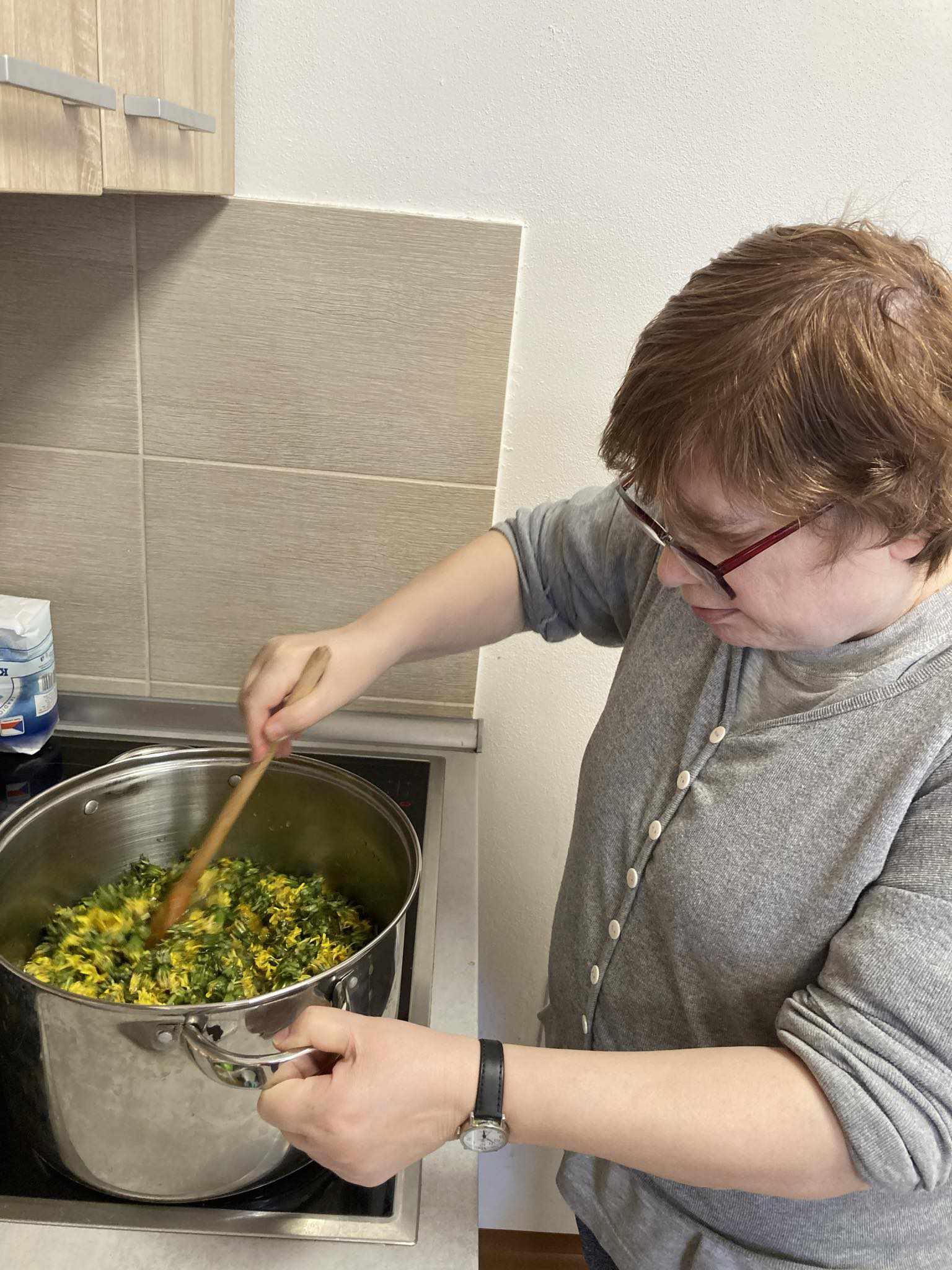 Na zahradě jsme nasbírali květy pampelišek a pustili se do přípravy medu. Výsledek byl dokonalý.