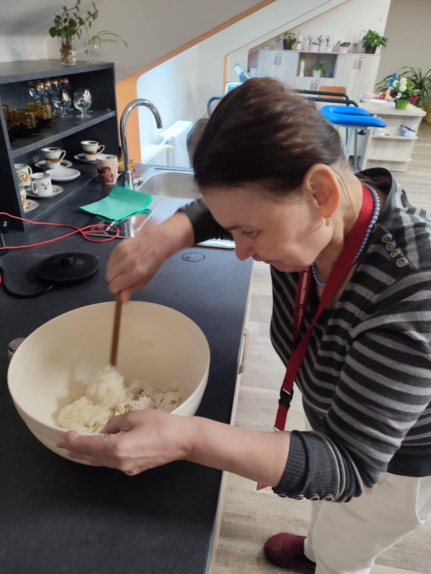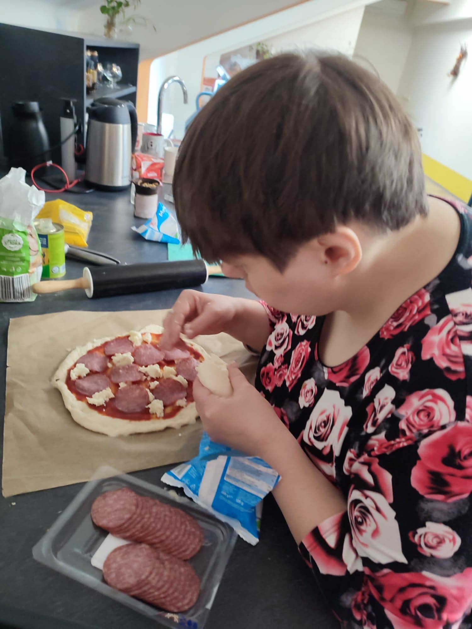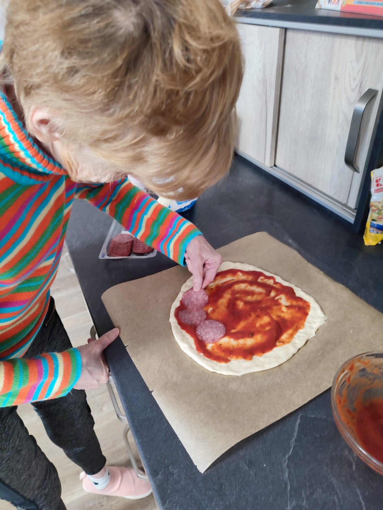 Klienti si při skupinové přípravě pizzy vyzkoušeli celý proces – od výroby těsta, přes výběr a krájení ingrediencí až po samotné pečení. Aktivita rozvíjela nejen jemnou motoriku a spolupráci, ale přinesla také okamžitou odměnu v podobě chutného oběda.