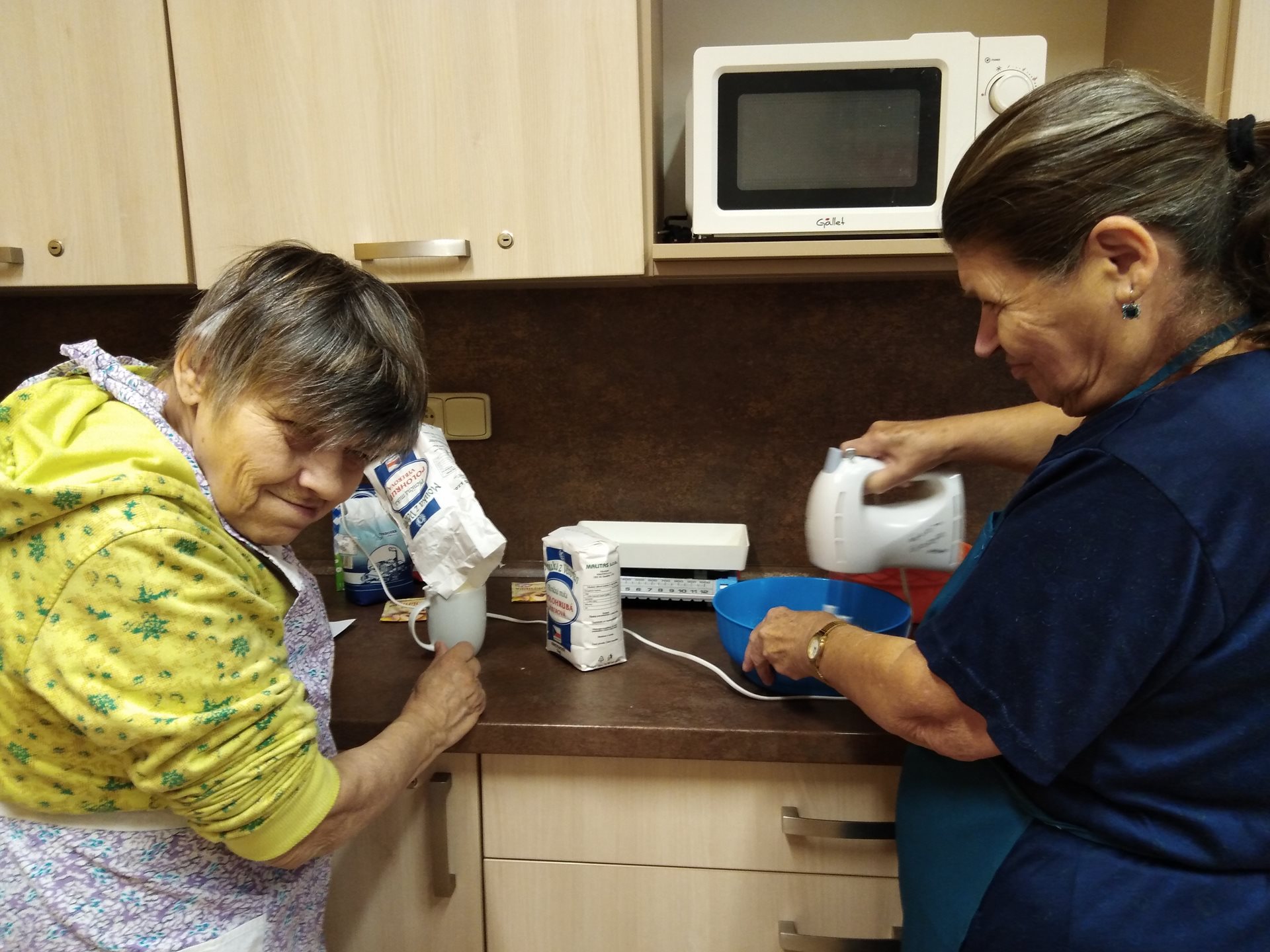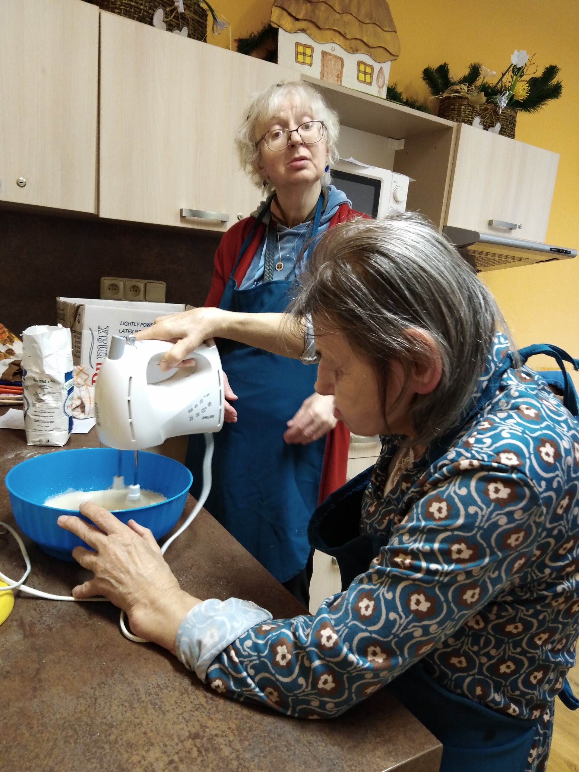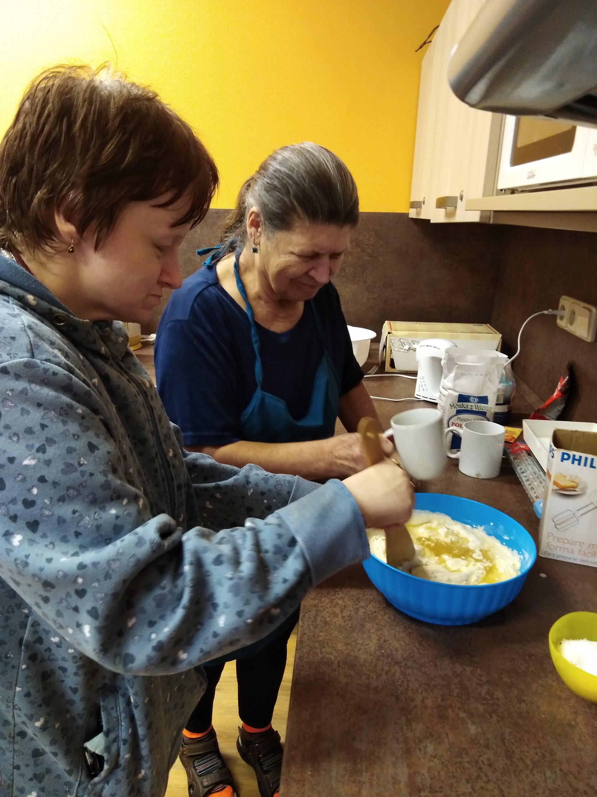 Klínek bábovky je vděčným doplňkem odpolední kávy a chutná snad každému. Příprava těsta není nijak složitá, tak jsme si tento moučník s dopomocí personálu upekly. Dílo se nám podařilo, pozvaly jsme tedy své kamarádky, poseděly s nimi u písniček z rádia, popovídaly si a pochutnaly na této dobrotě.