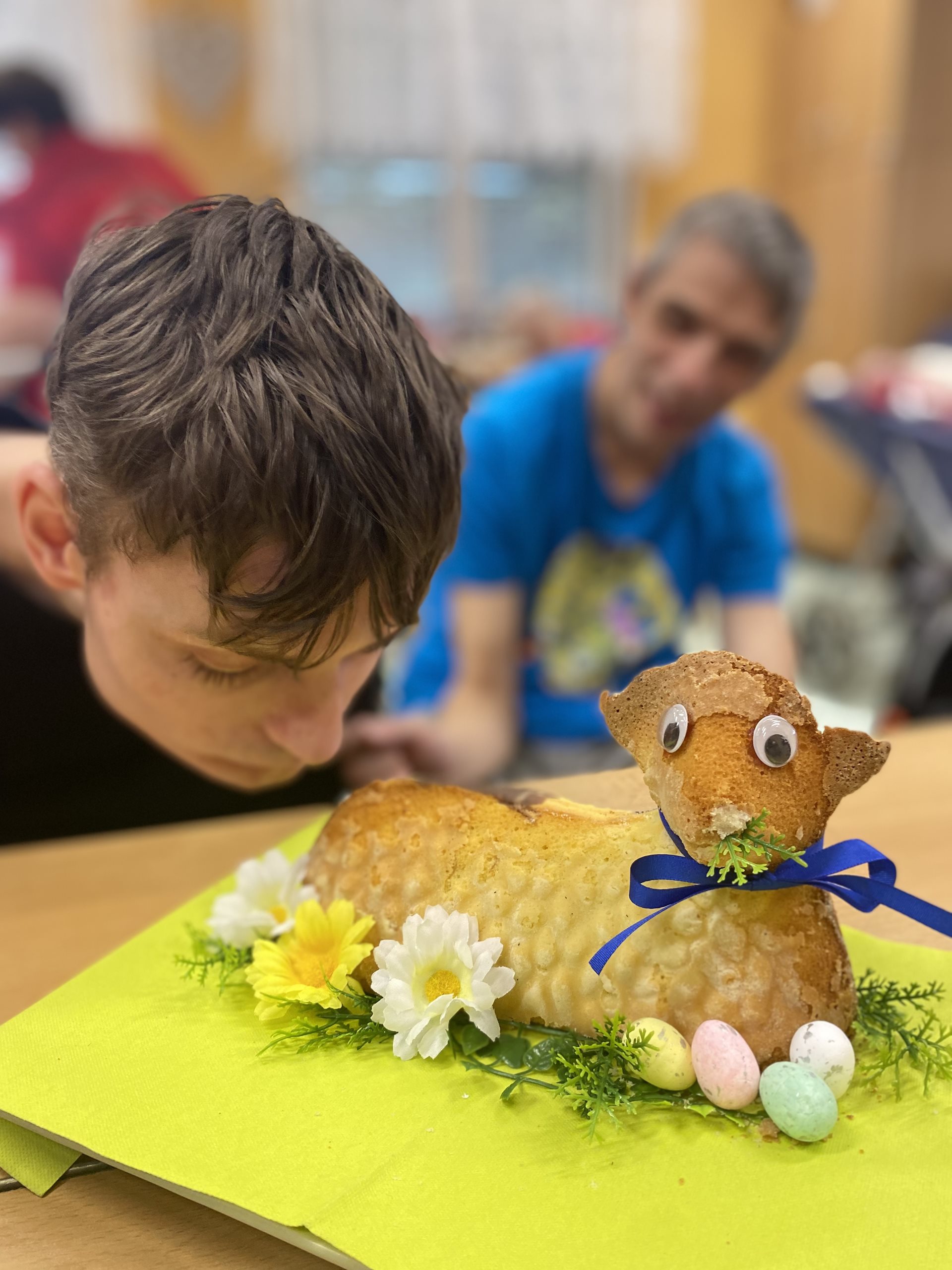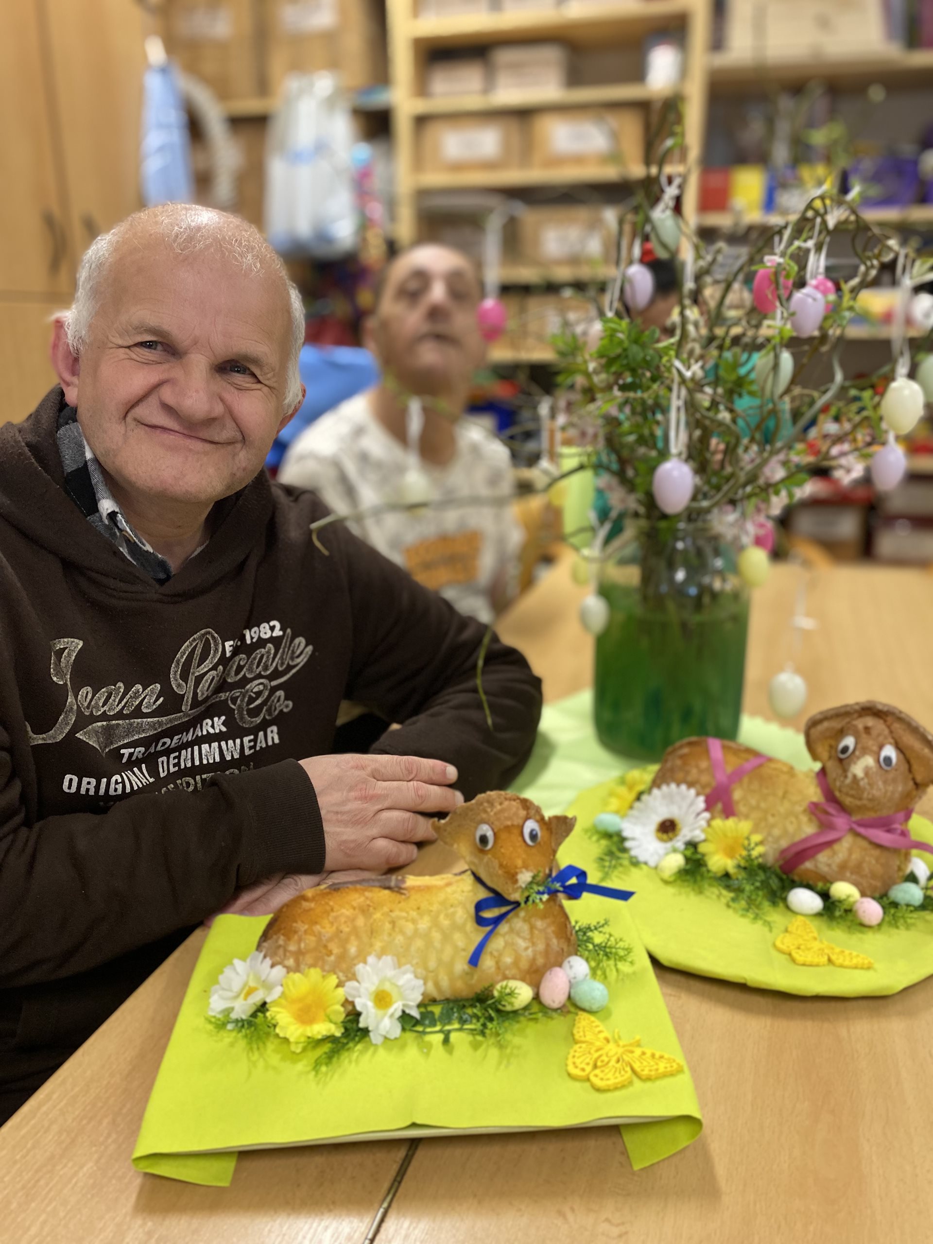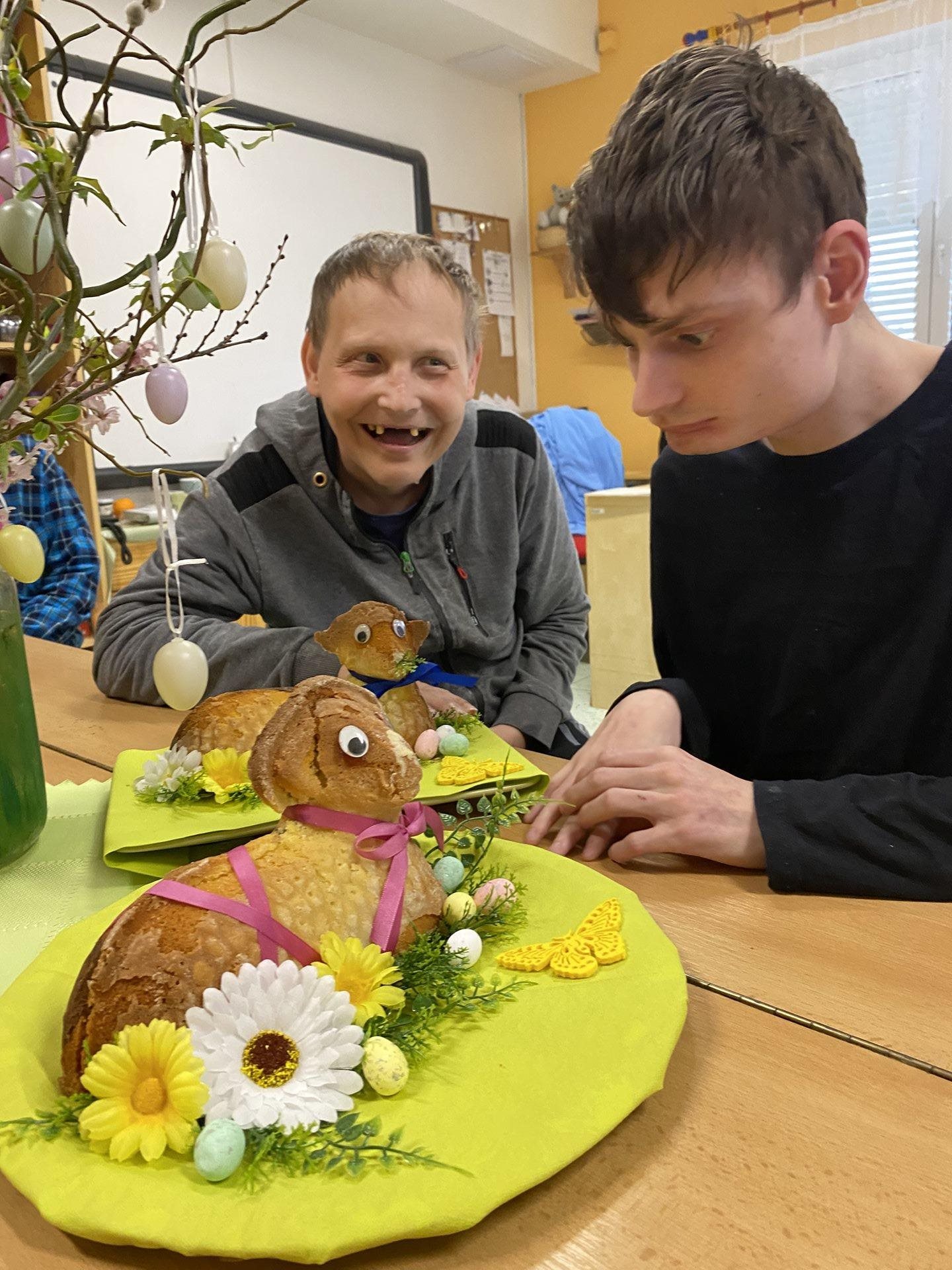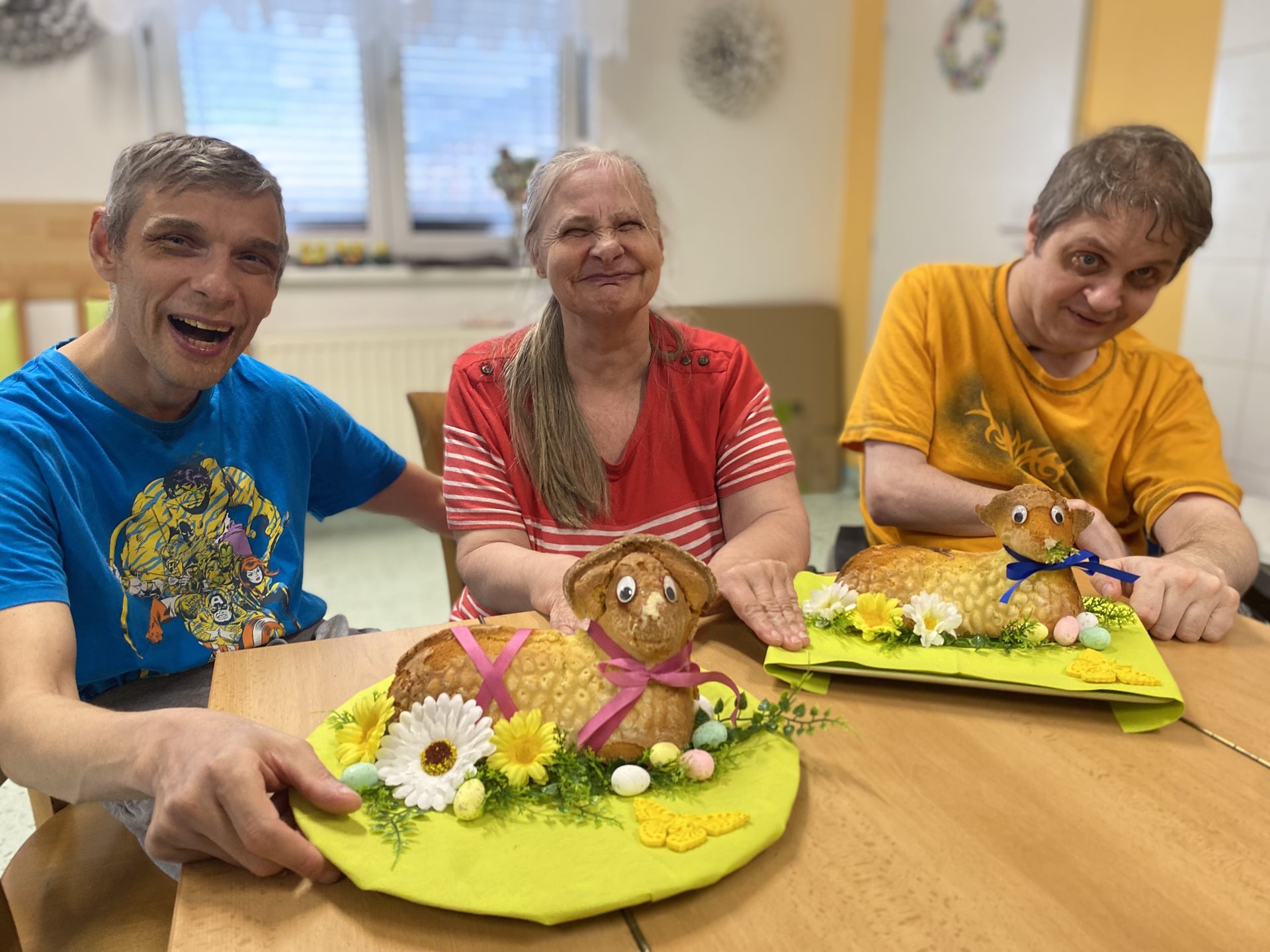 My jsme tentokrát měli možnost péct v prastaré keramické formě, kterou jsme si vymazali tukem a vysypali moukou. Těsto jsme zvolili klasické na olejovou bábovku. Krásně se nám povedlo vyklepnout beránka z této formy a jarně jsme jej nazdobili. Velmi se těšíme, až jej nakrájíme a pochutnáme si na něm. Teď nám ale ještě chvilku bude zdobit náš stůl.