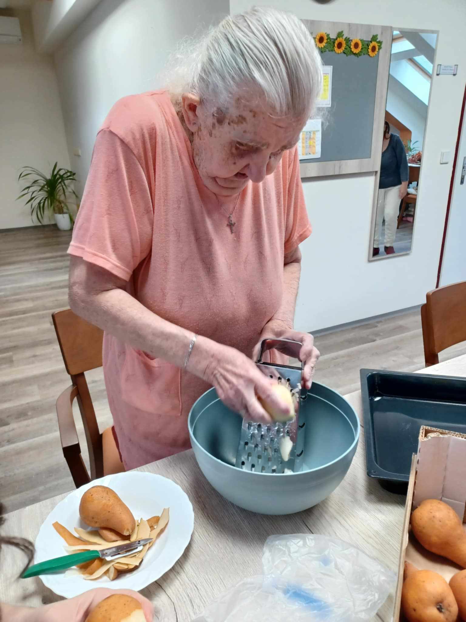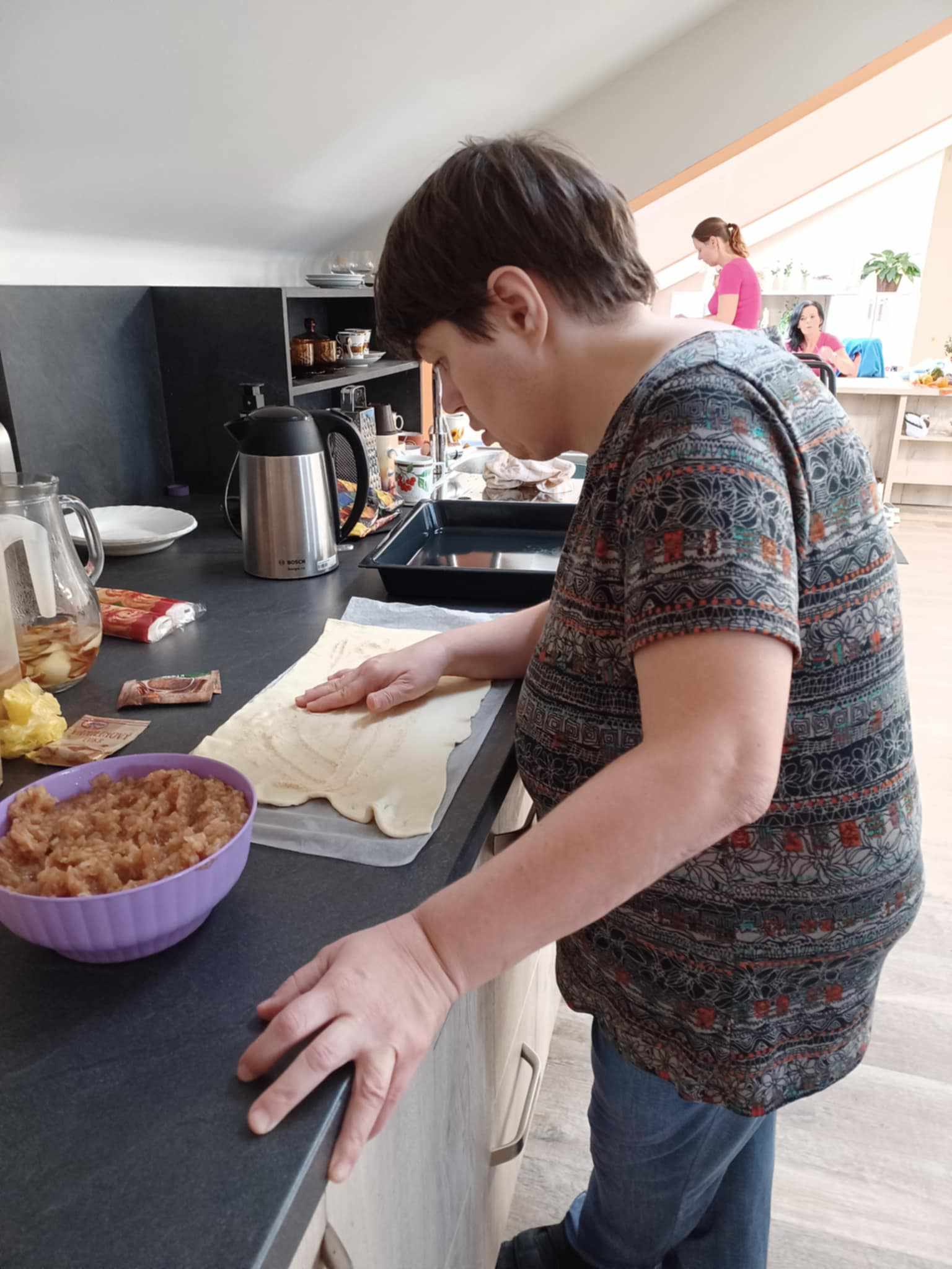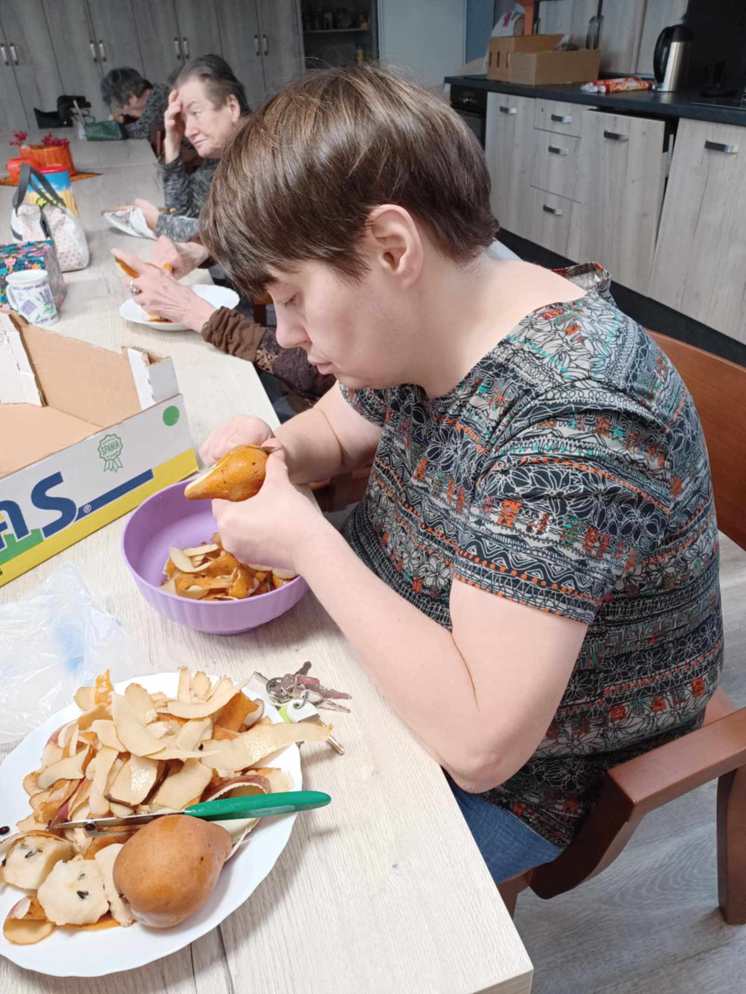 Dnes jsme se pustili do pečení hruškového závinu. Při této aktivitě si klienti měli možnost procvičit přípravu pokrmu od zpracování surovin až po finální pečení. Klienti společně strouhali hrušky, připravovali těsto a s nadšením tvořili chutné záviny. Tato společná práce nejen posílila jejich schopnosti v oblasti sebeobsluhy, ale také vytvořila prostor pro navázání a upevnění sociálních vztahů.