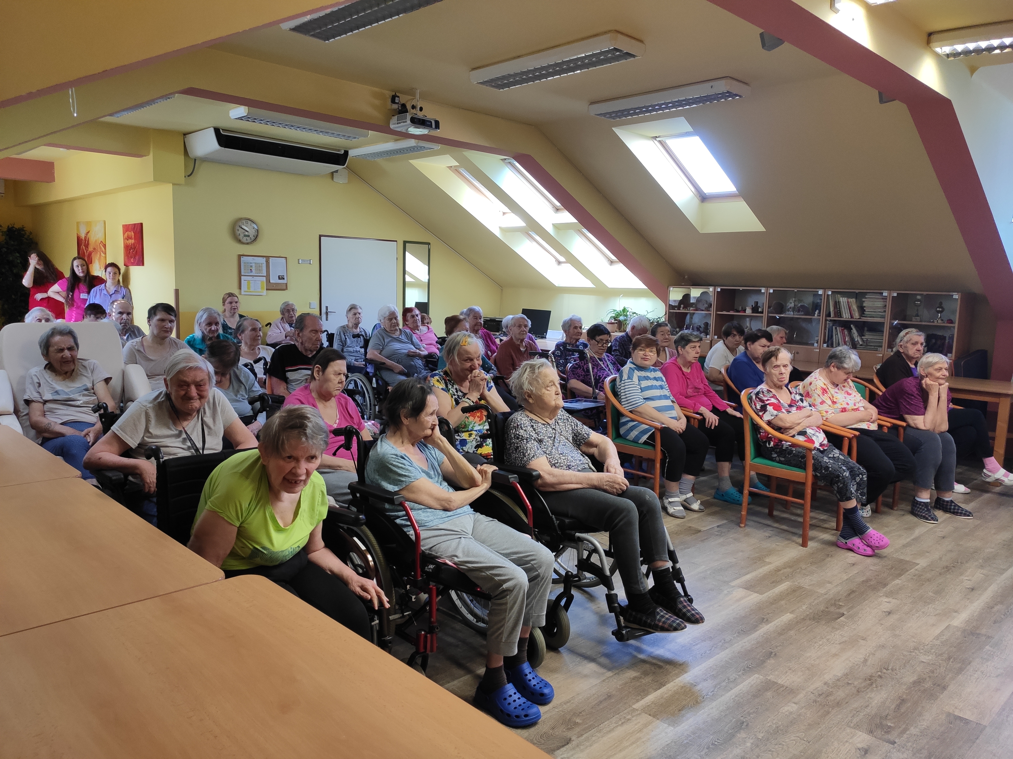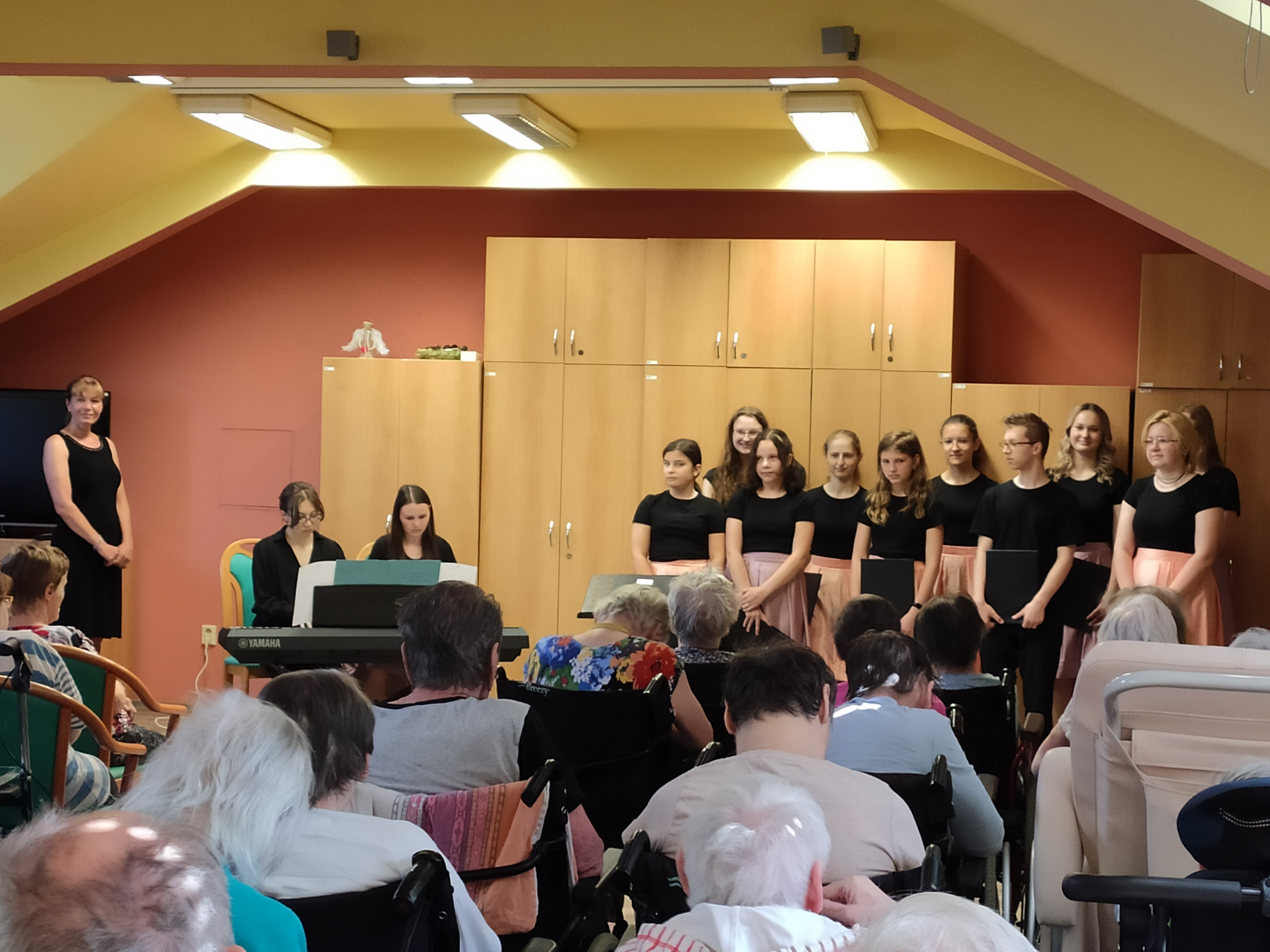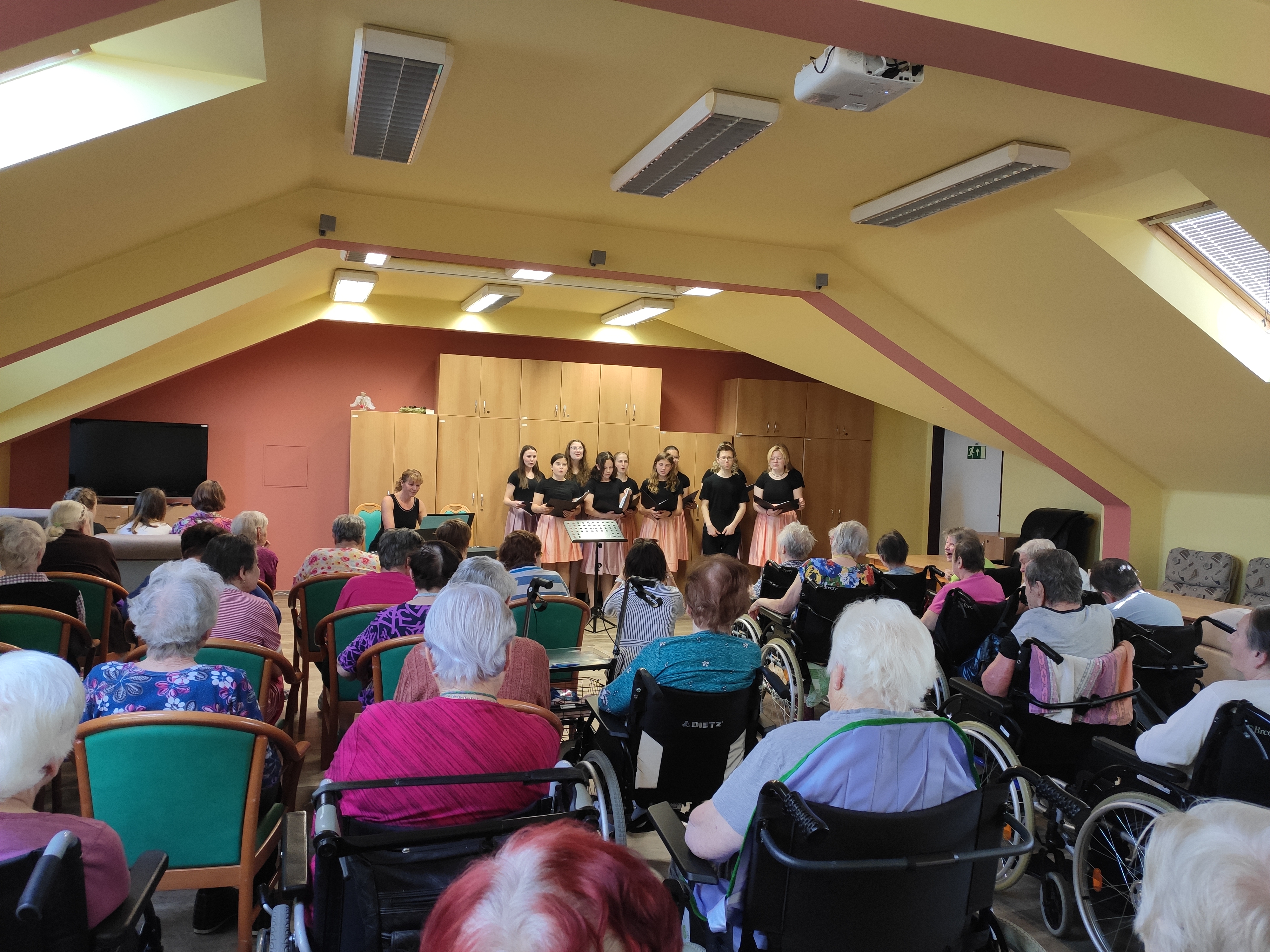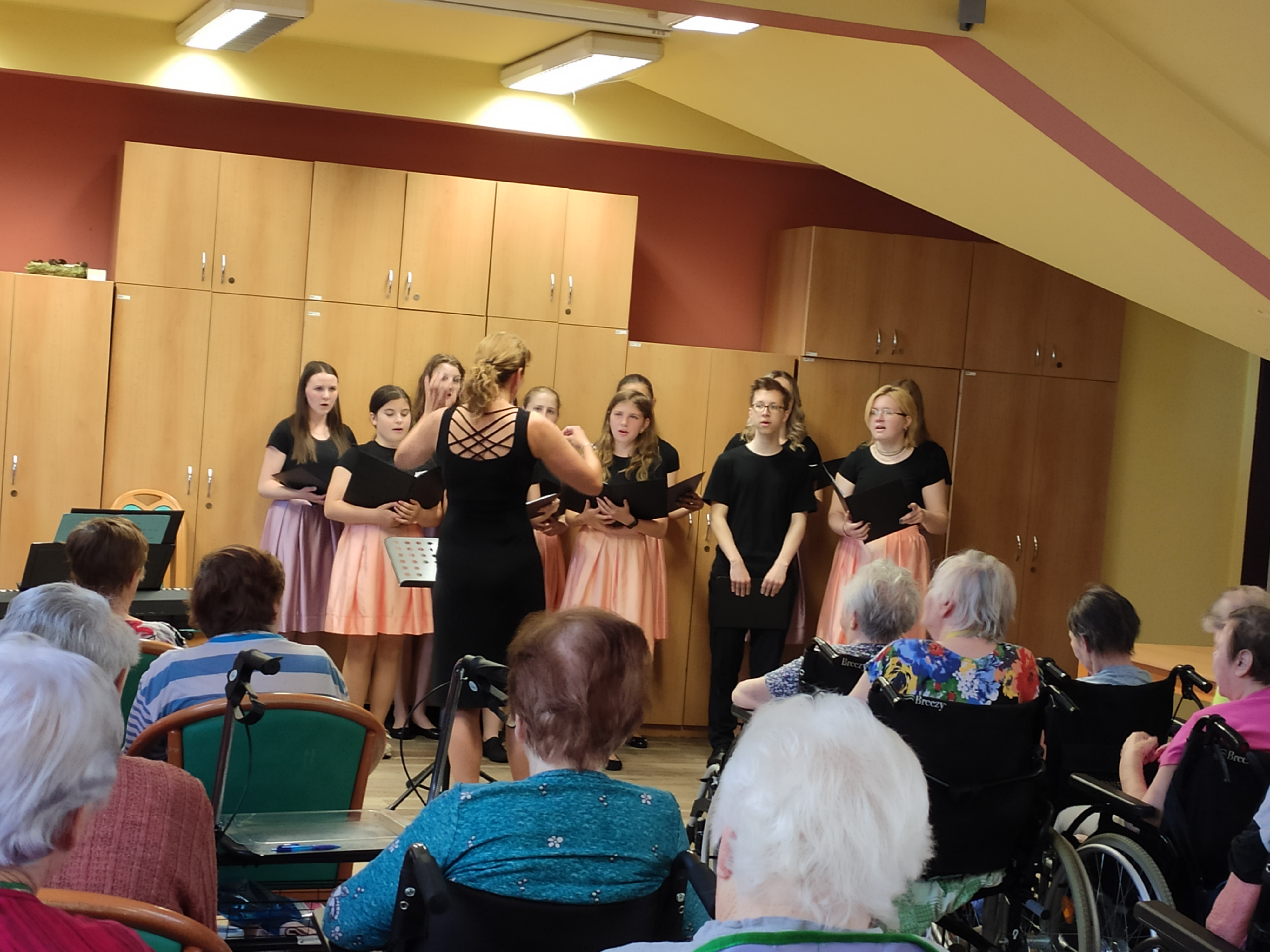 Pěvecký sbor studentů z Gymnázia Jakuba Škody v Přerově nás znovu potěšil svou návštěvou. Klientům krásně zazpívali, společně si zahráli stolní hry nebo si popovídali.