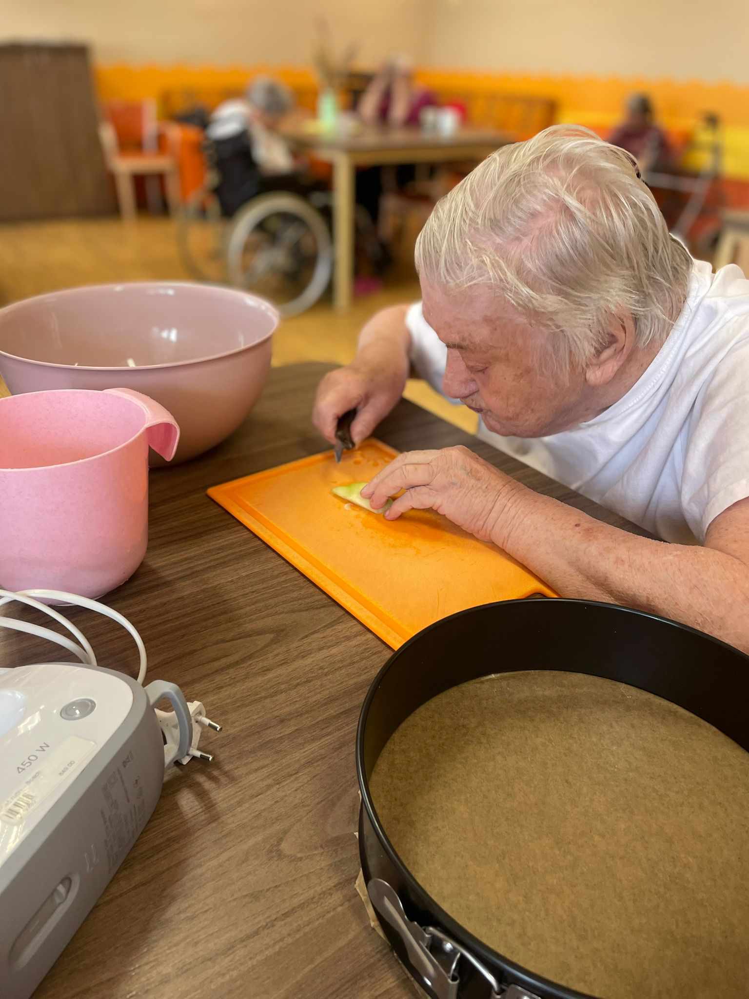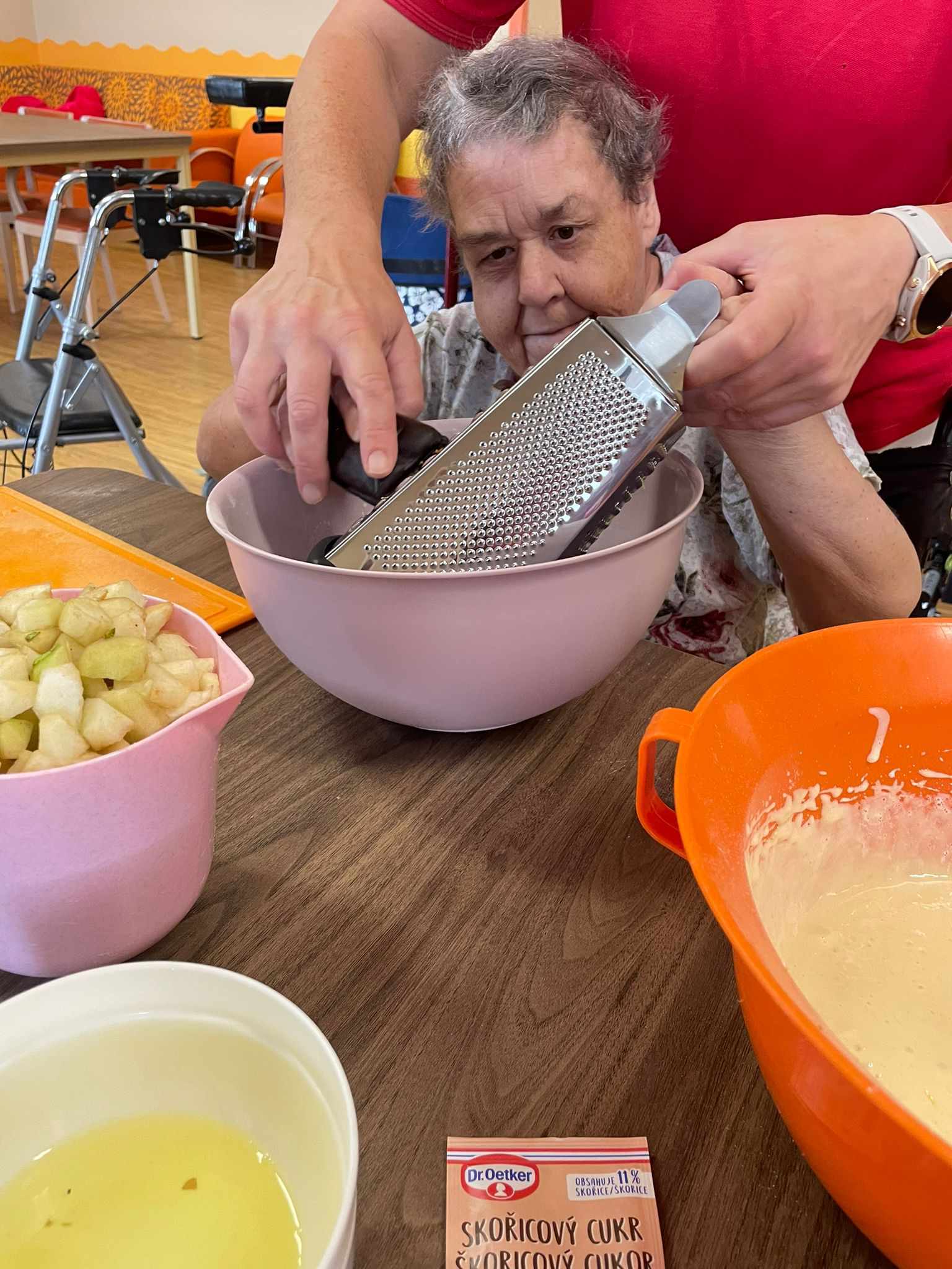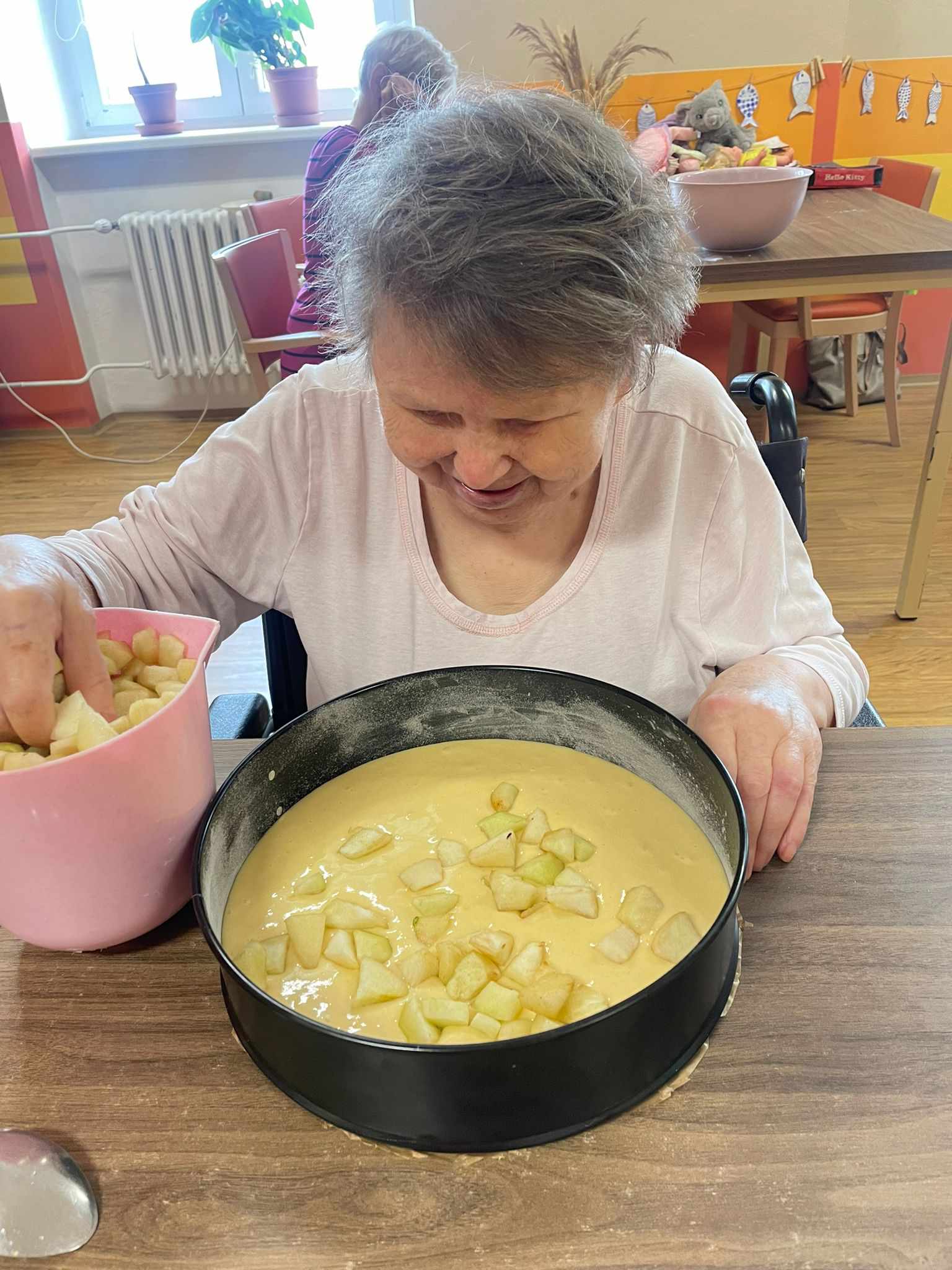 Tento týden jsme se v Domově pro osoby se zdravotním postižením pustili do podzimního pečení italského koláče s hruškami, které jsme si nasbírali na zahradě. Aktivita měla za cíl nejen zapojit klientky do přípravy, ale také podpořit jemnou motoriku, smyslové vnímání a posílit společné vazby.