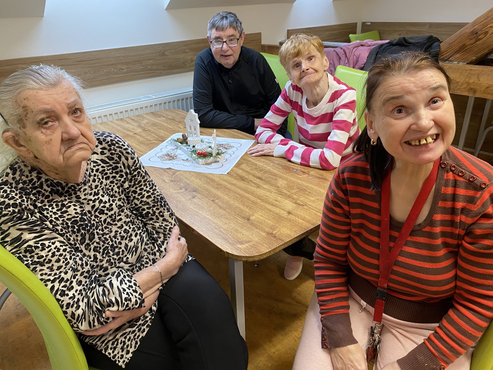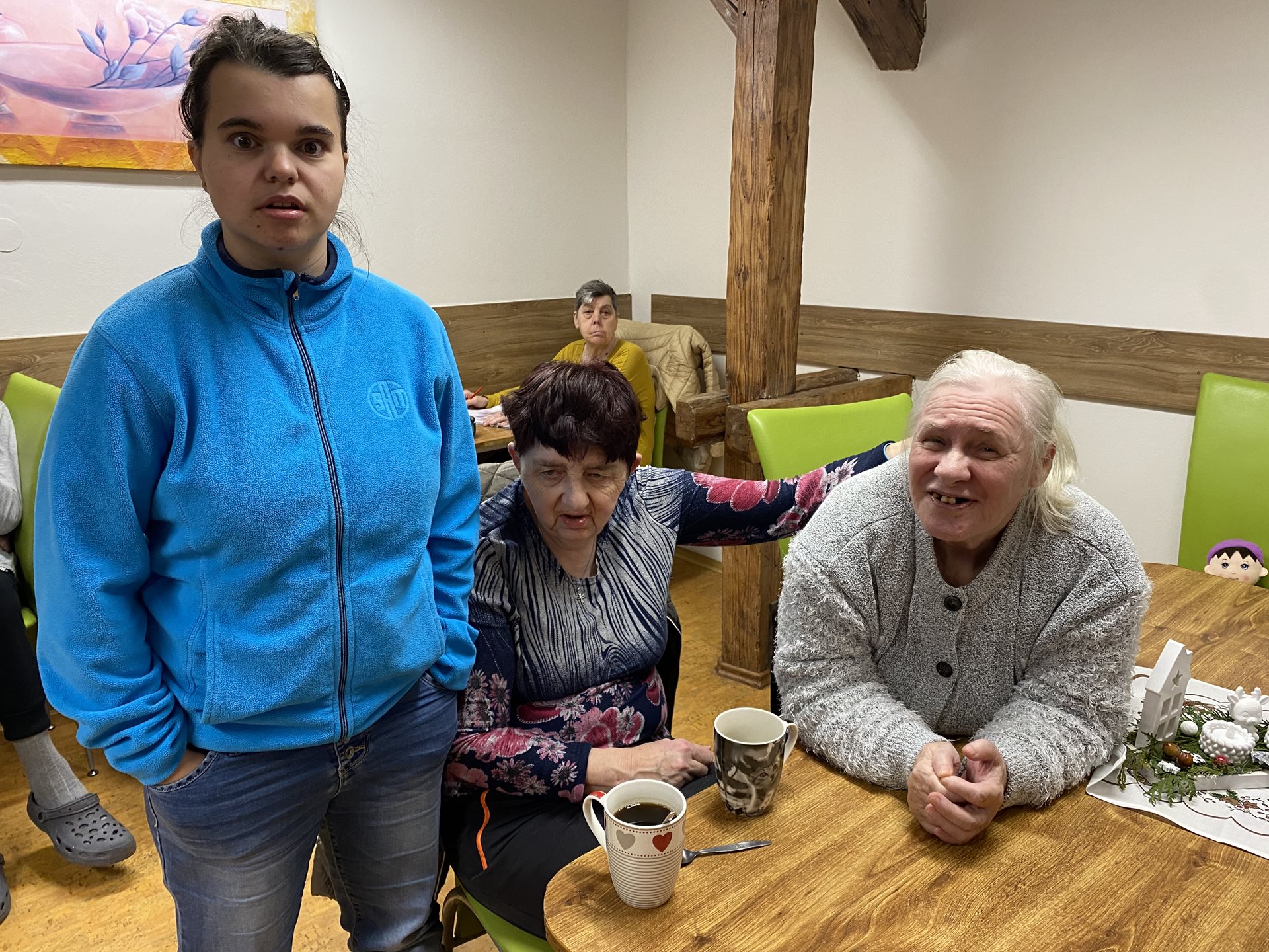 Dostalo se nám pozvání od kamarádek a kamarádů z Kokor na odpolední posezení. Neváhali jsme ani pět sekund a s radostí jsme pozvání na návštěvu přijalii. Naši přátelé nám upekli výbornou bábovku a uvařili kafíčko. pochlubili se svými novými výrobky, popovídali jsme si o Vánocích, o vánočních zvycích a o tom, jak se na Vánoce a Štědrý den těšíme. Byl to velmi příjemně strávený čas.