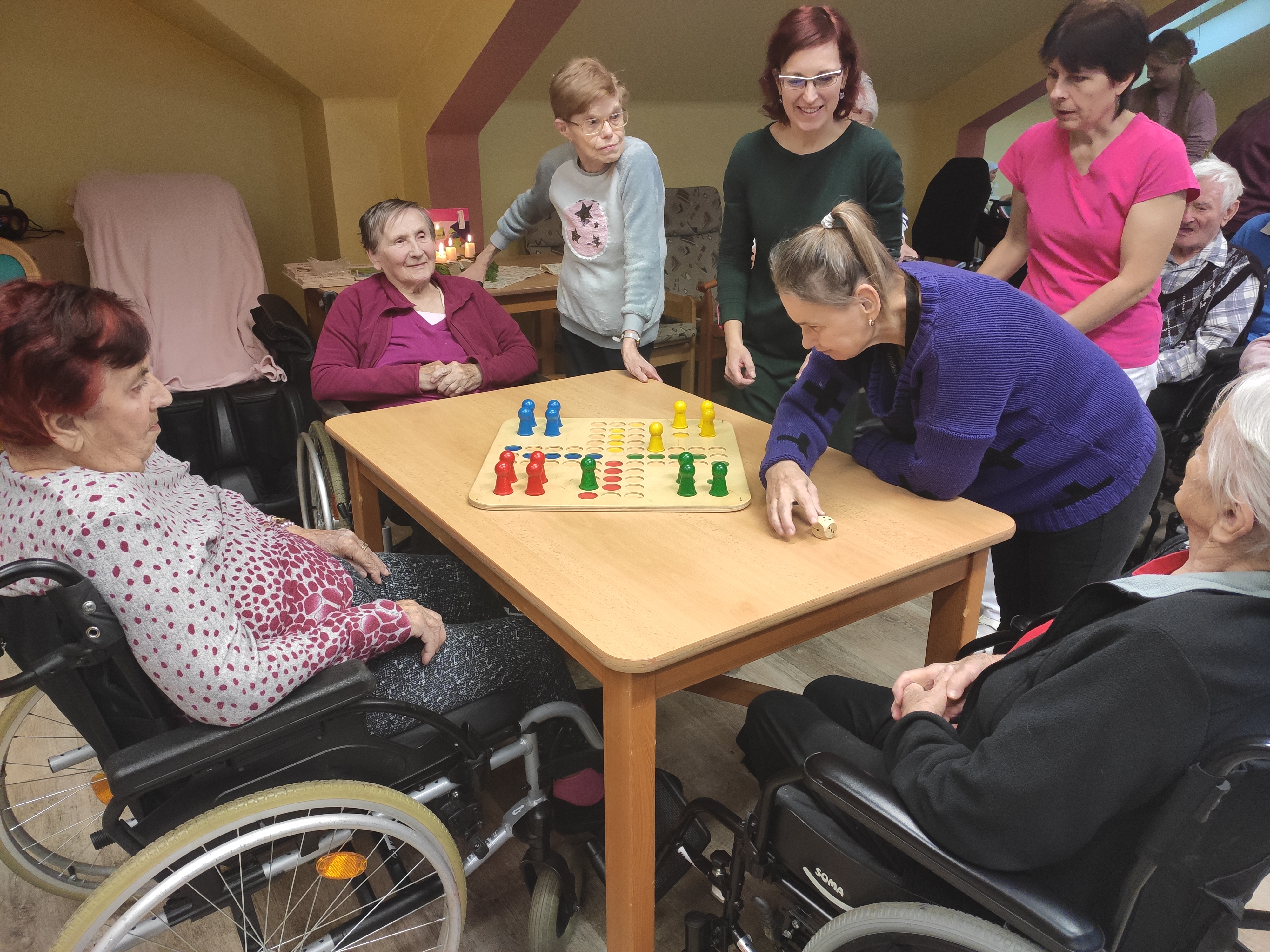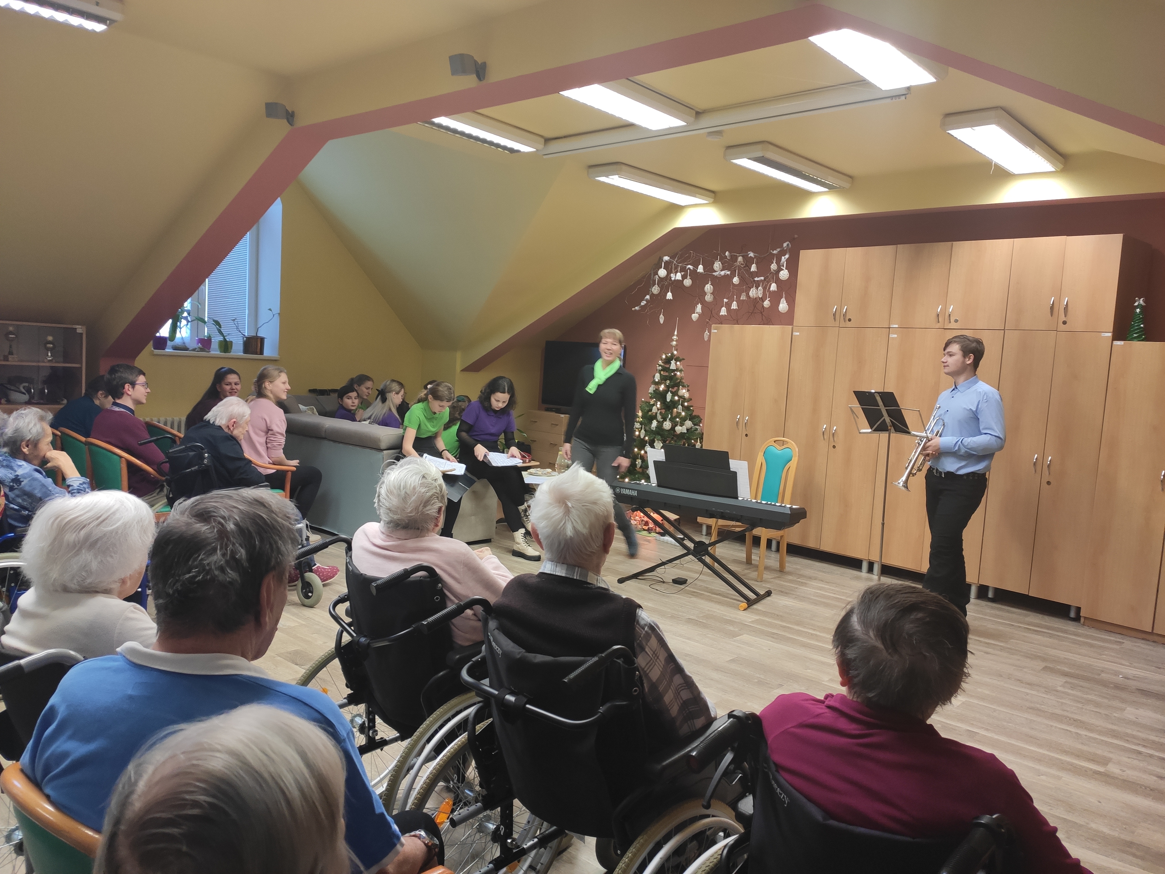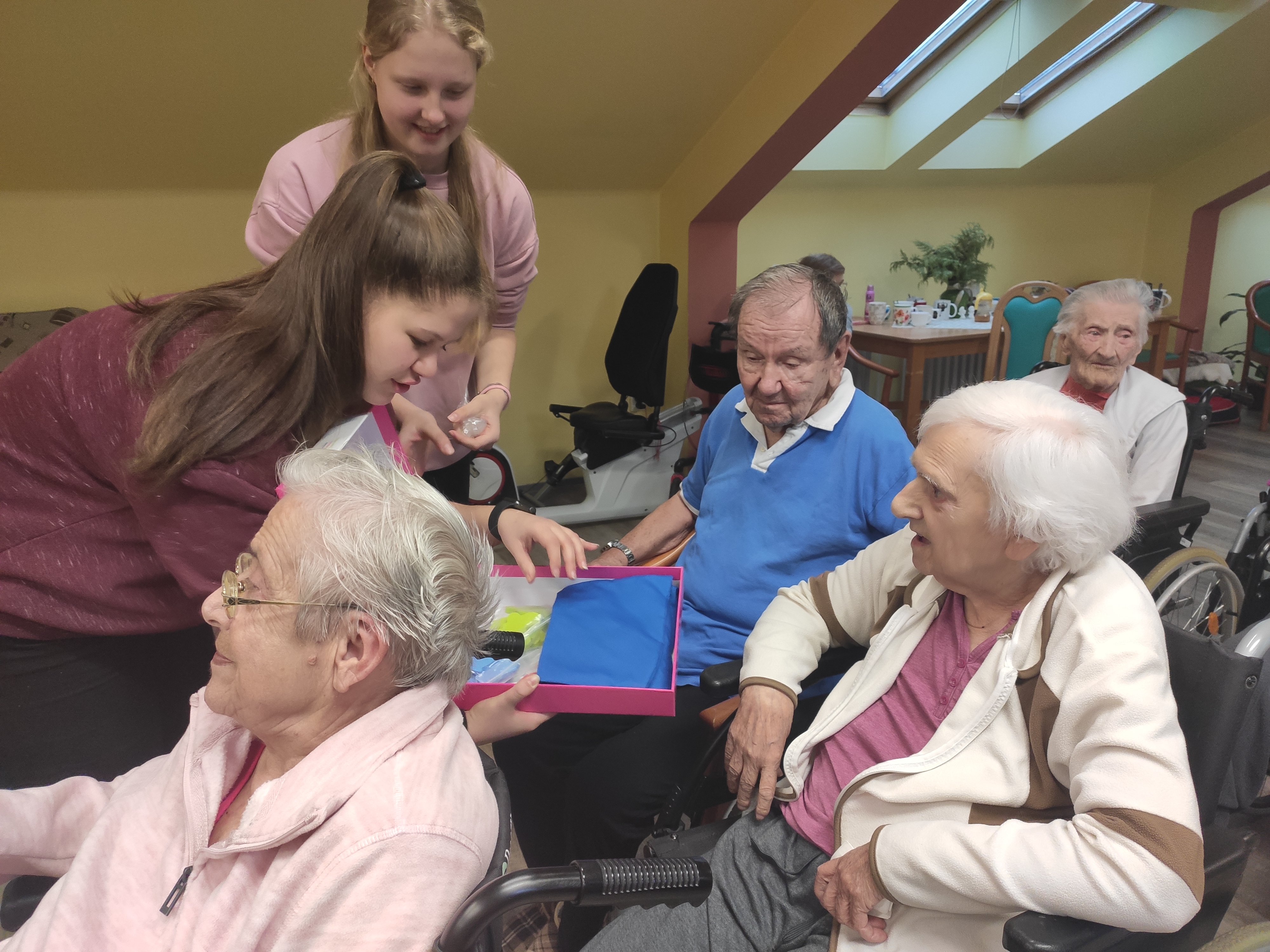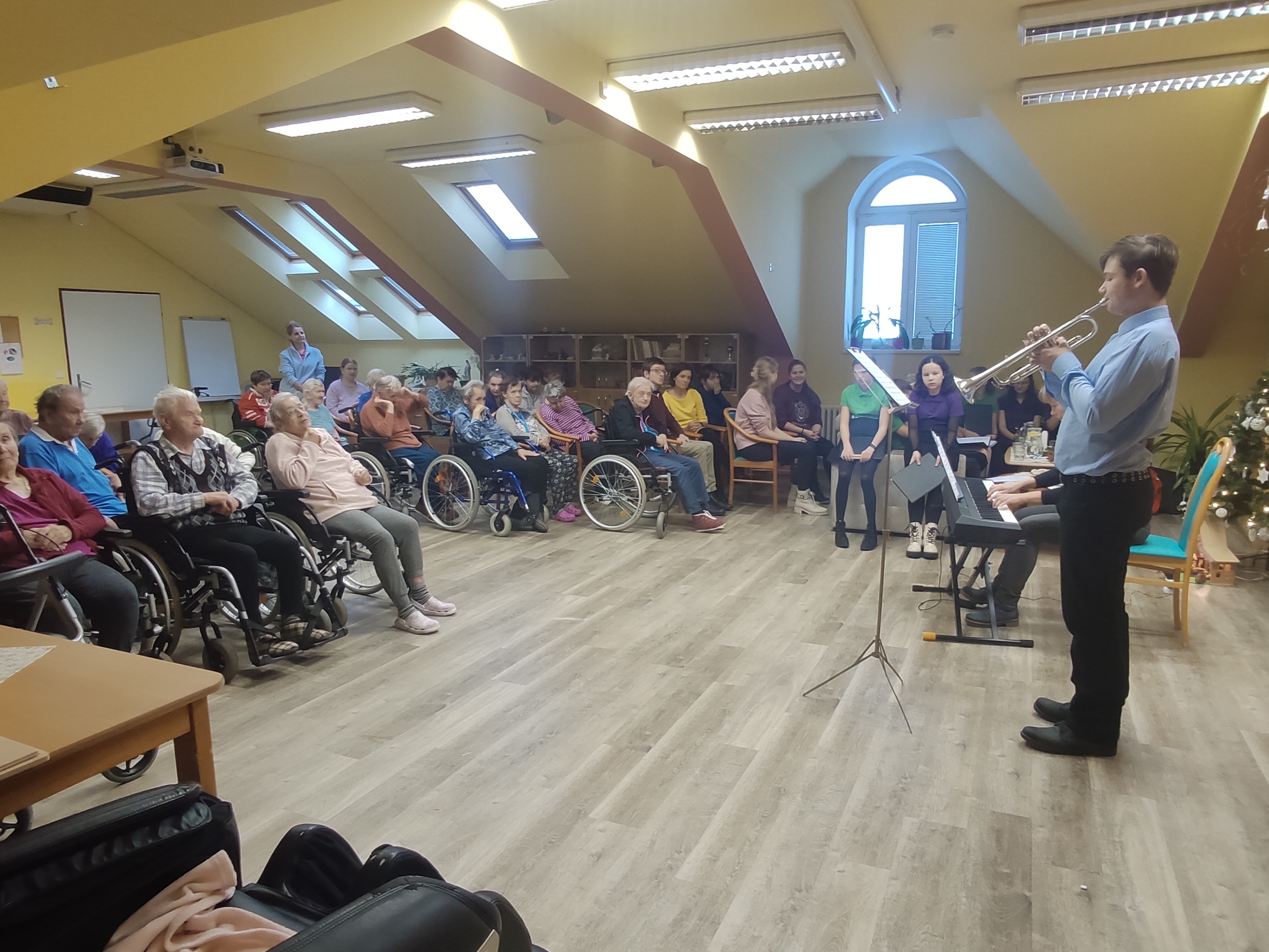 Studentský senát Gymnázia Jakuba Škody vyhlásil v adventním čase dobrovolnou veřejnou sbírku na zlepšení života seniorů v jejich domovech s názvem "Úsměvy seniorům". V letošním roce se studenti rozhodli obdarovat seniory v našem zařízení a za vybrané peníze pro ně nakoupili společenské hry. Zástupci Studentského senátu tento krásný dar našim seniorům slavnostně předali dne 22. 12. 2022 přímo v našem zařízení. Úžasnou atmosféru umocnilo vystoupení sboru GJŠ, jehož členové našim seniorům zahráli a zazpívali tradiční vánoční koledy.